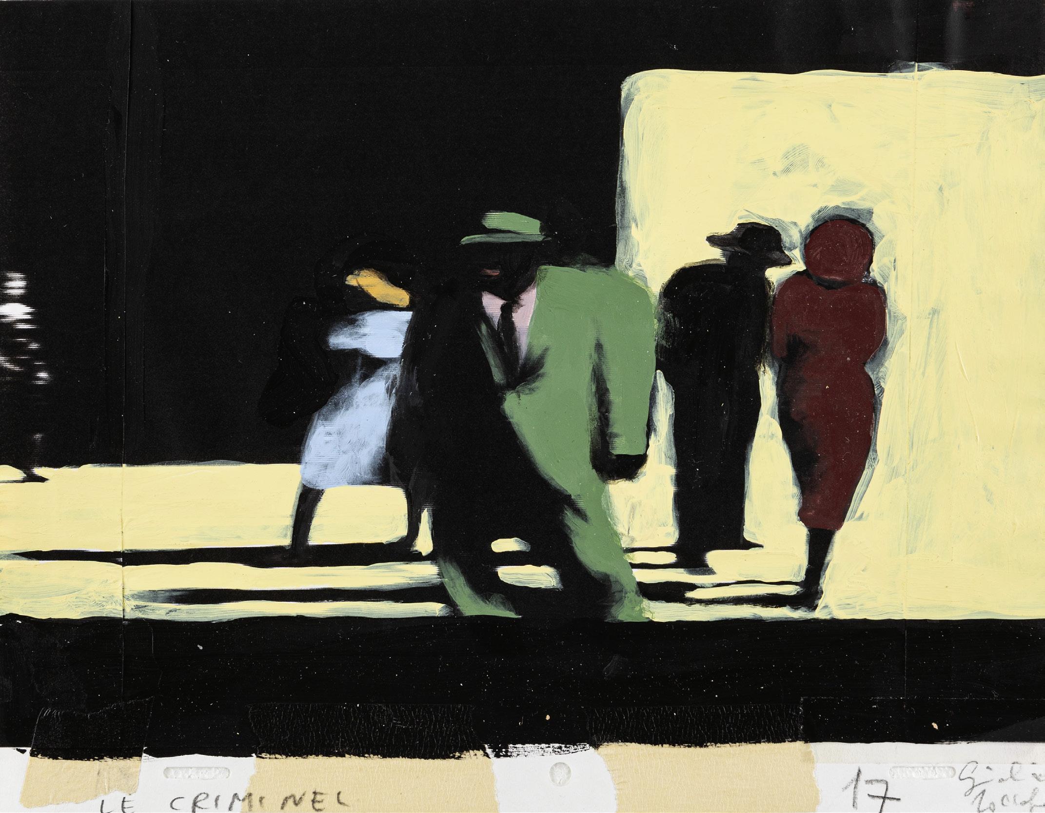 Ink and tempera on thin cardboard. Original illustration made by Costantini for the volume “Le città del ferro”, published by Italsider in 1967. An internationally renowned painter and illustrator, Costantini has a completely personal and autonomous path: self-taught, the artist has never hidden his intolerance for the world of art and the impossibility of recognizing oneself in a defined artistic movement. From the beginning, the very adherence to figuration is belied by the always unsettling perspectives and irregular proportions. The black line that outlines people and architecturesometimes thick, sometimes just a thin grid that outlines the shadows - accompanies all of his production and has become one of the unmistakable characteristics of his artworks.