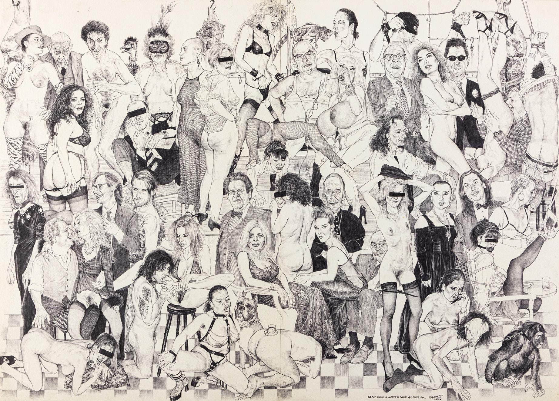 Pencil and ink on thin cardboard. Original illustration created by Albertarelli during the 1940s, on the back: << The Count invited me to his house to see his collection of ancient coins, what dress should I wear? What you have! >> Signed.