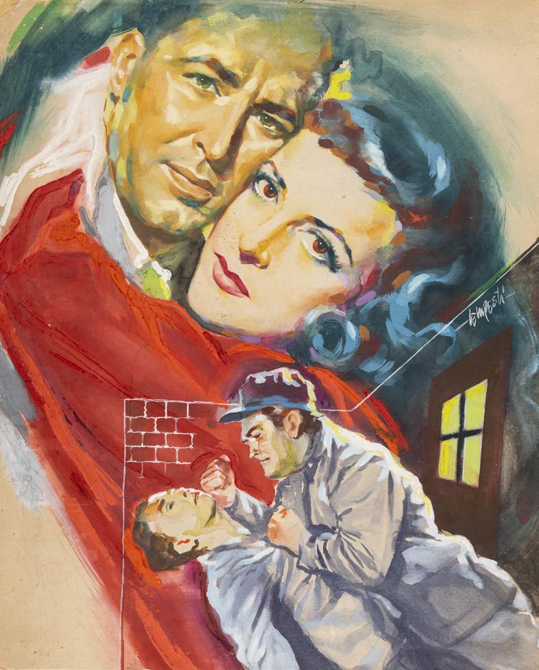 Tempera on cardboard. Original illustration created by Albertarelli during the 1960s. Small tear and slight creases on the upper edge and lower right corner. Signed.