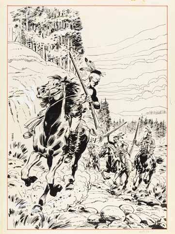 Illustrazione originale realizzata da Albertarelli alla fine degli anni ‘40 per il Vittorioso. Un’immagine di grande impatto ad opera del padre italiano del fumetto western. Firmata.