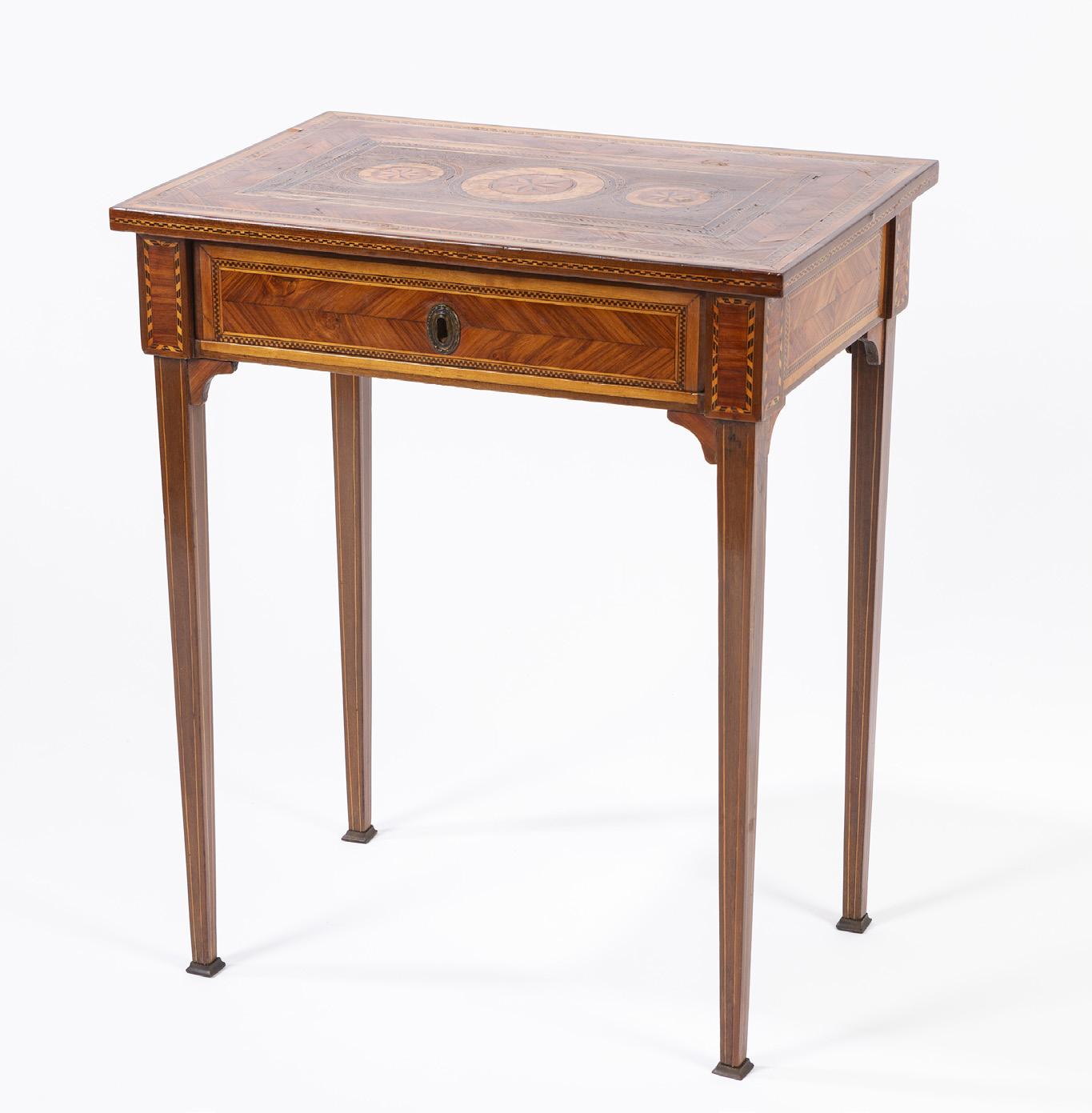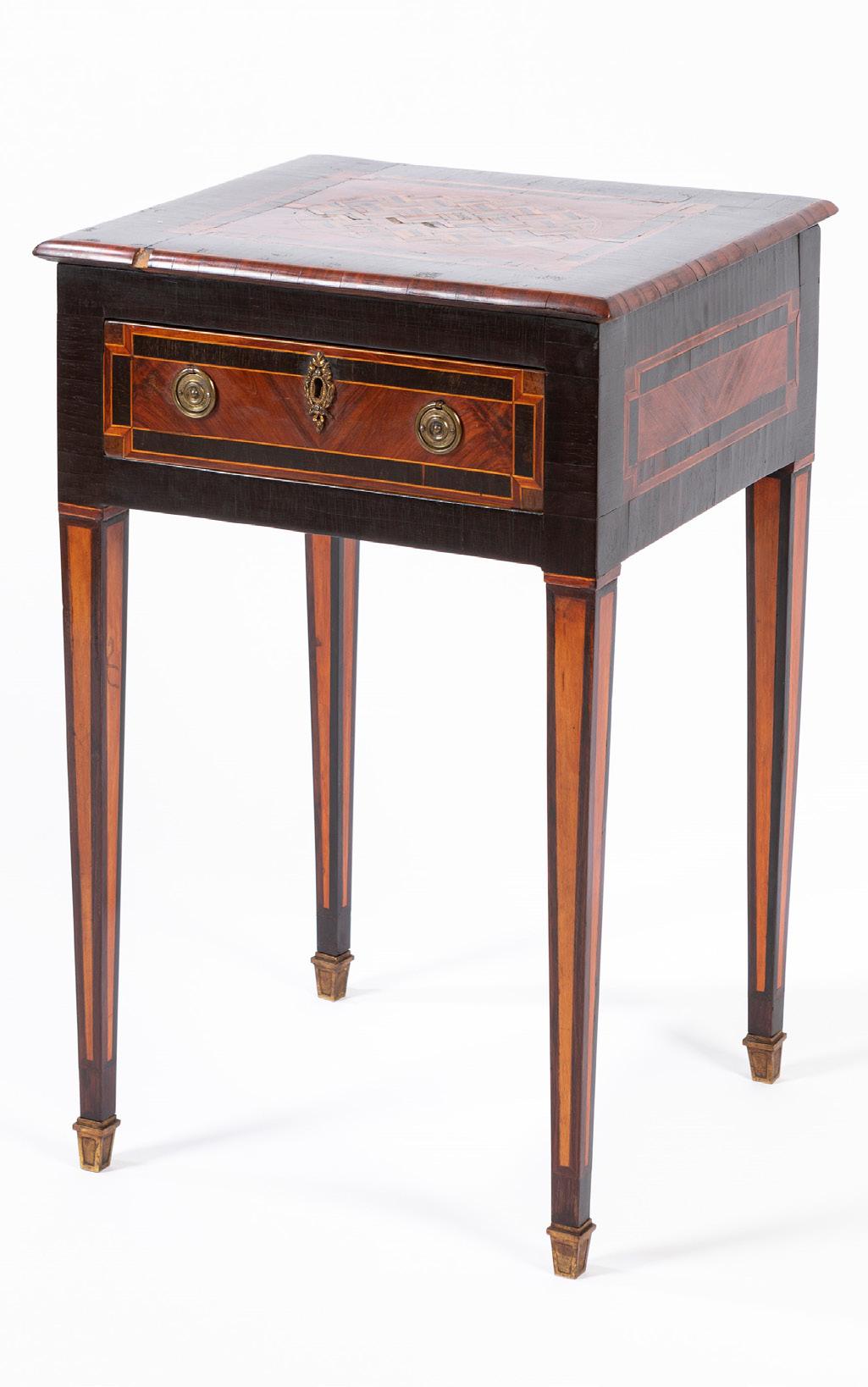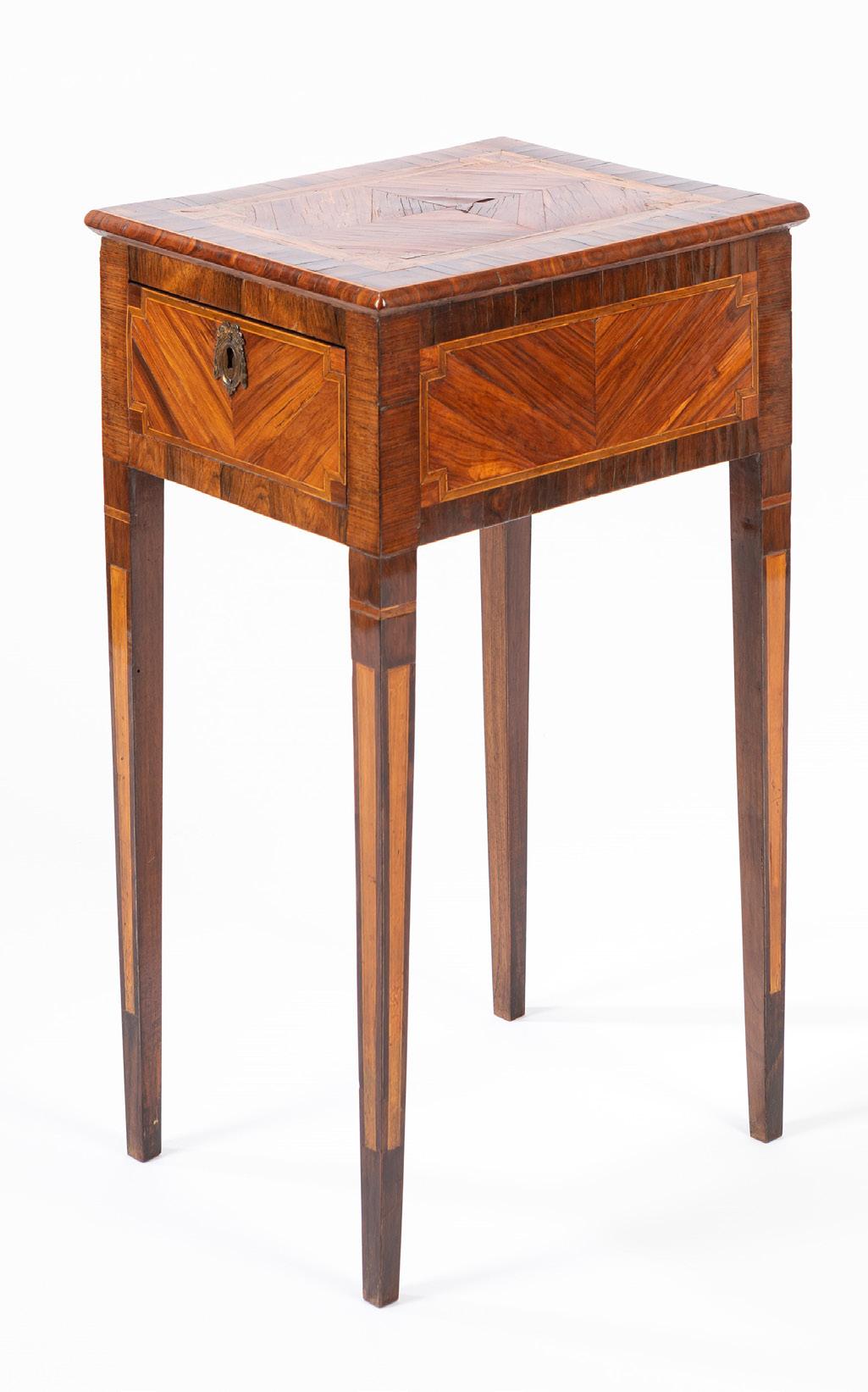Tavolino lastronato in bois de rose e bois de violette, Piemonte, Luigi XVI, circa 1780