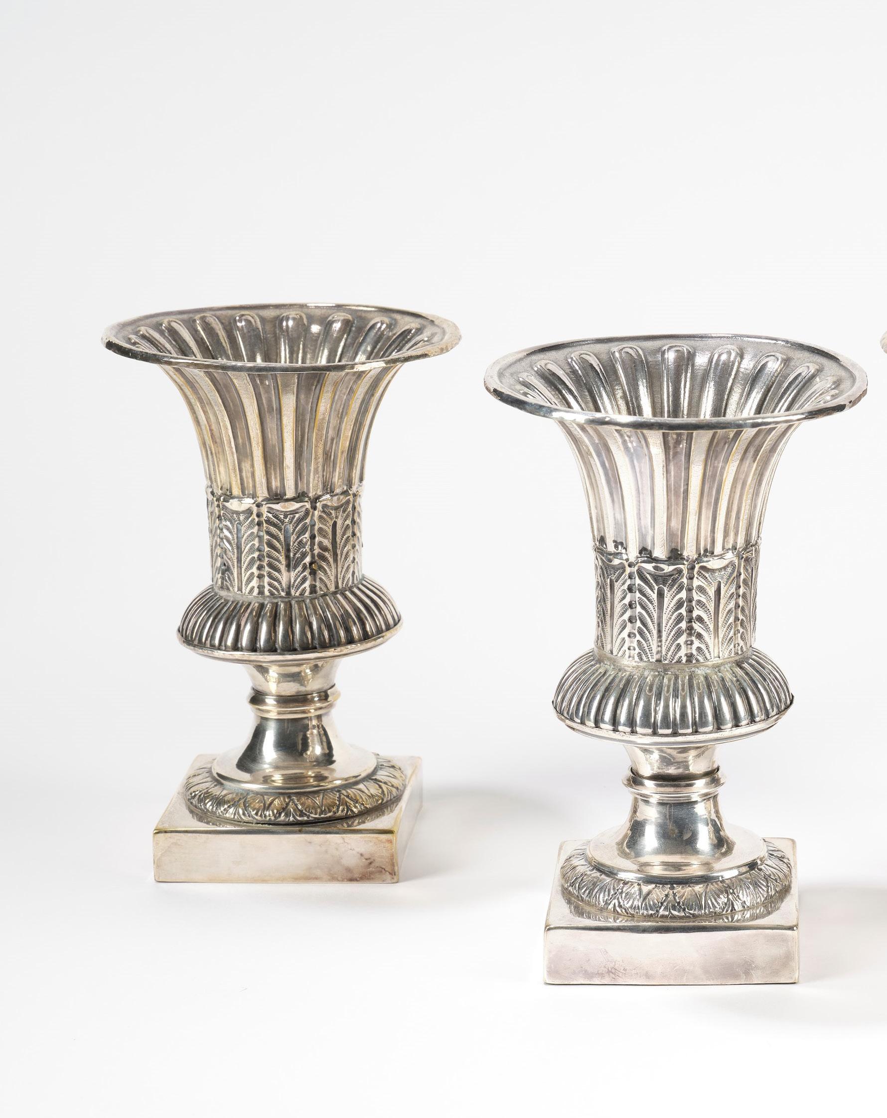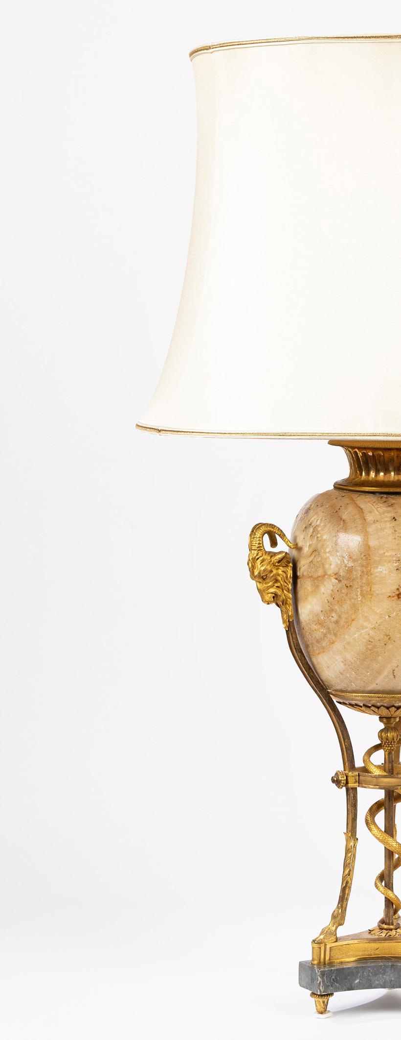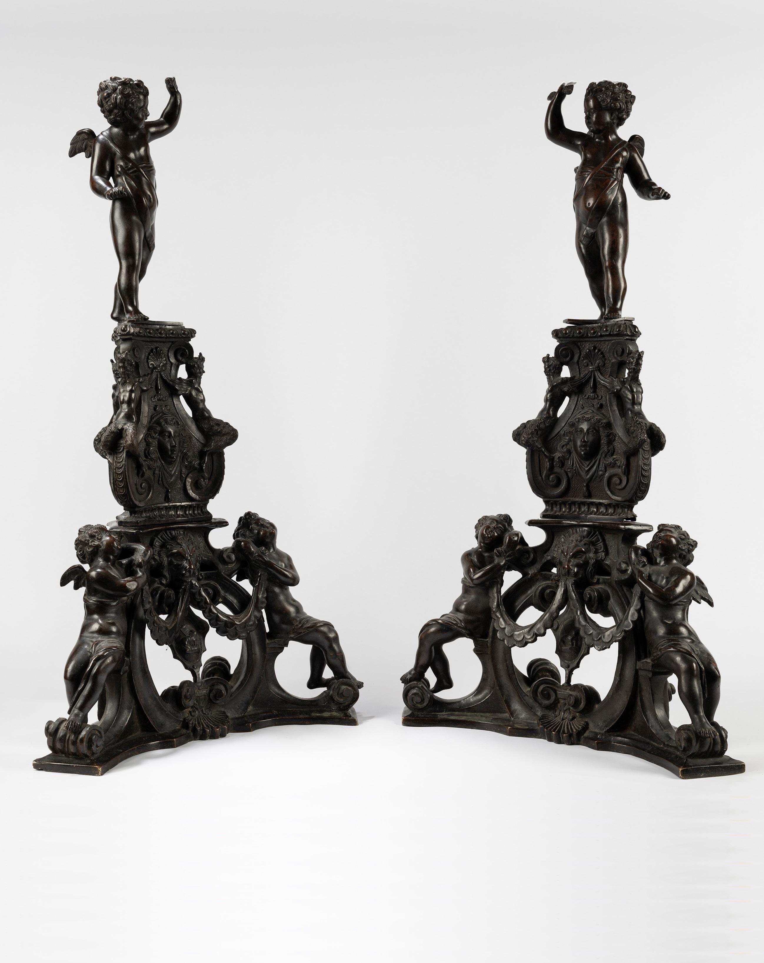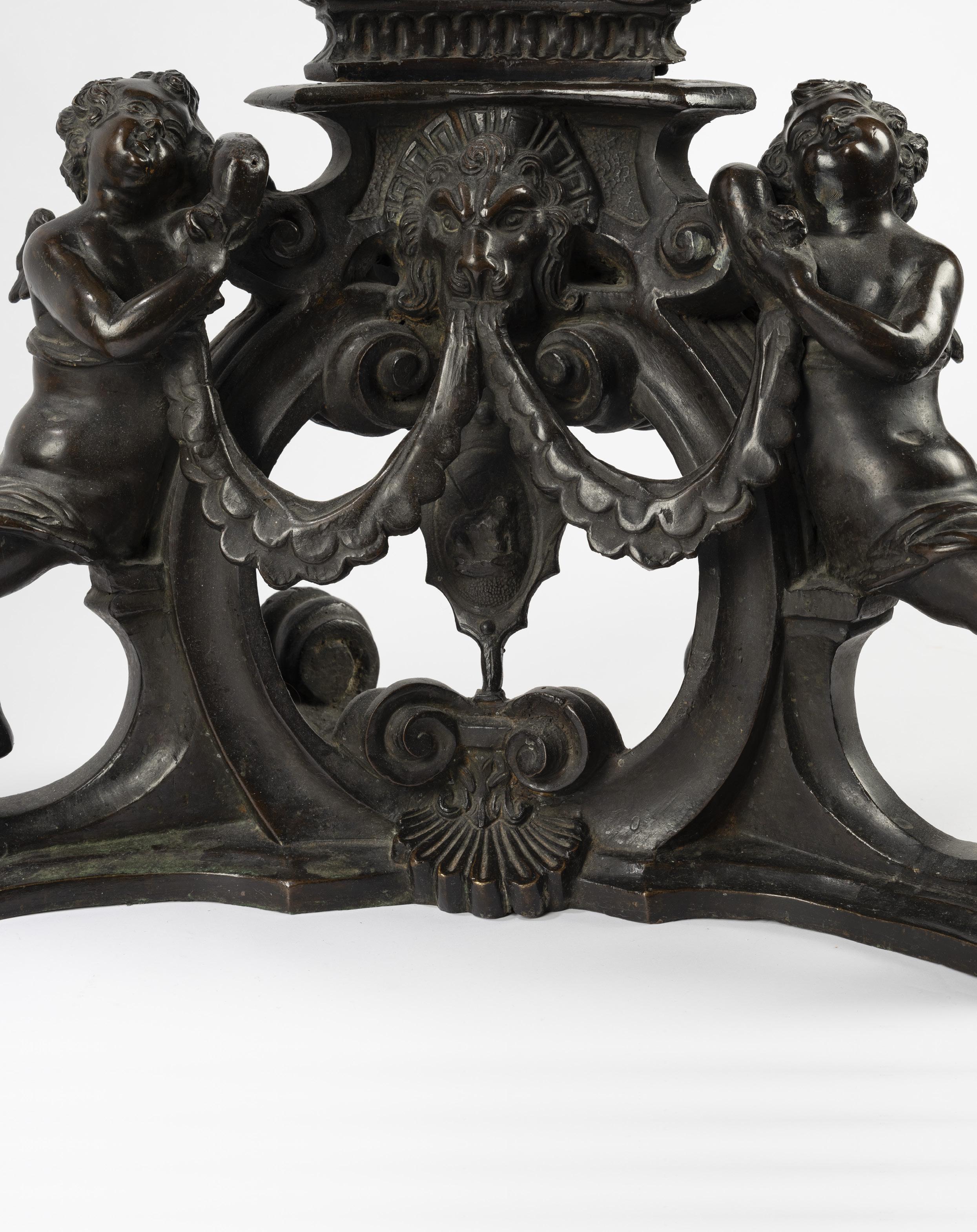 h max cm 42 i candelieri con fusti torniti, il finale in forma di vaso fiorito con anse scolpite a teste di aquile