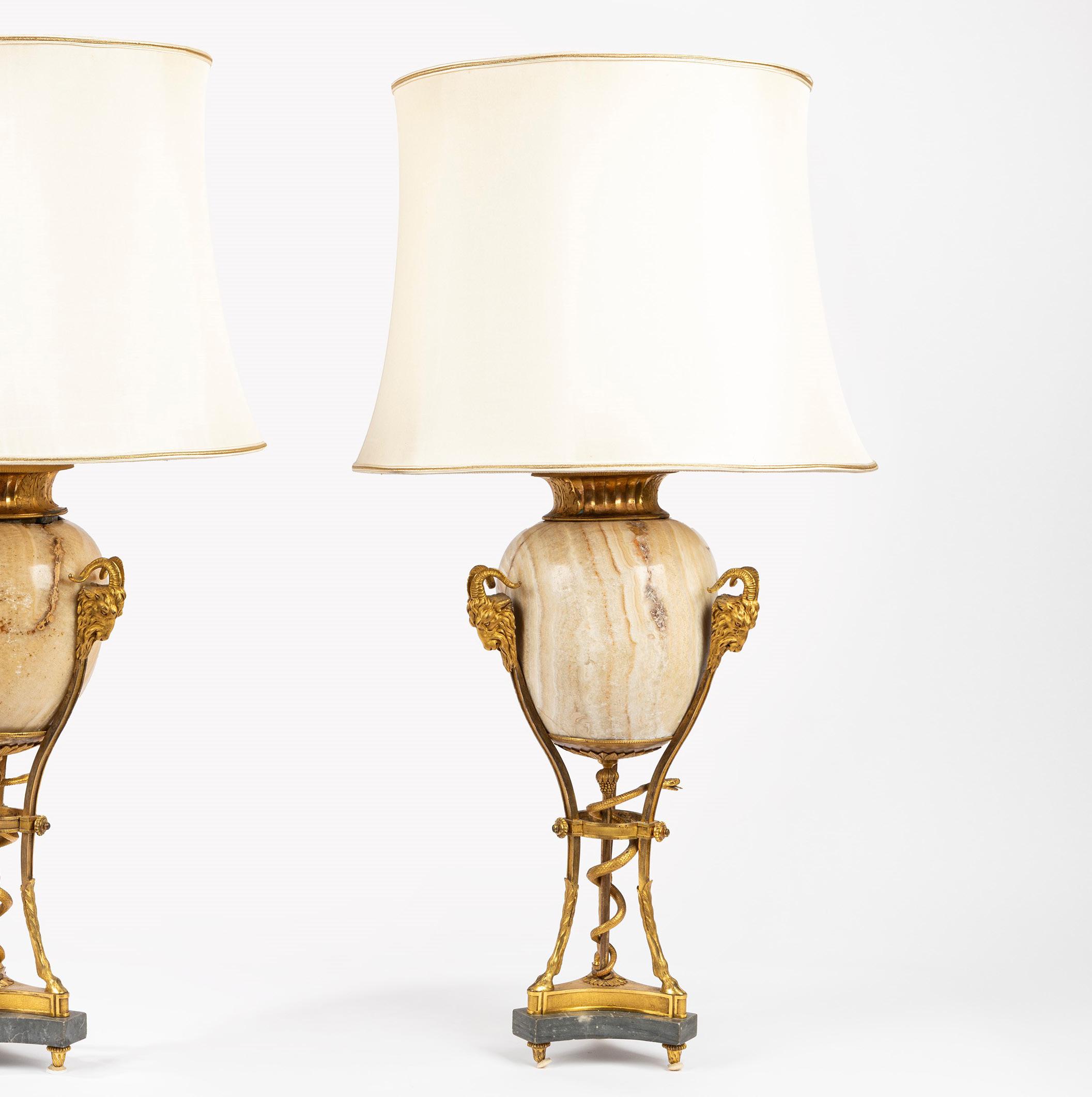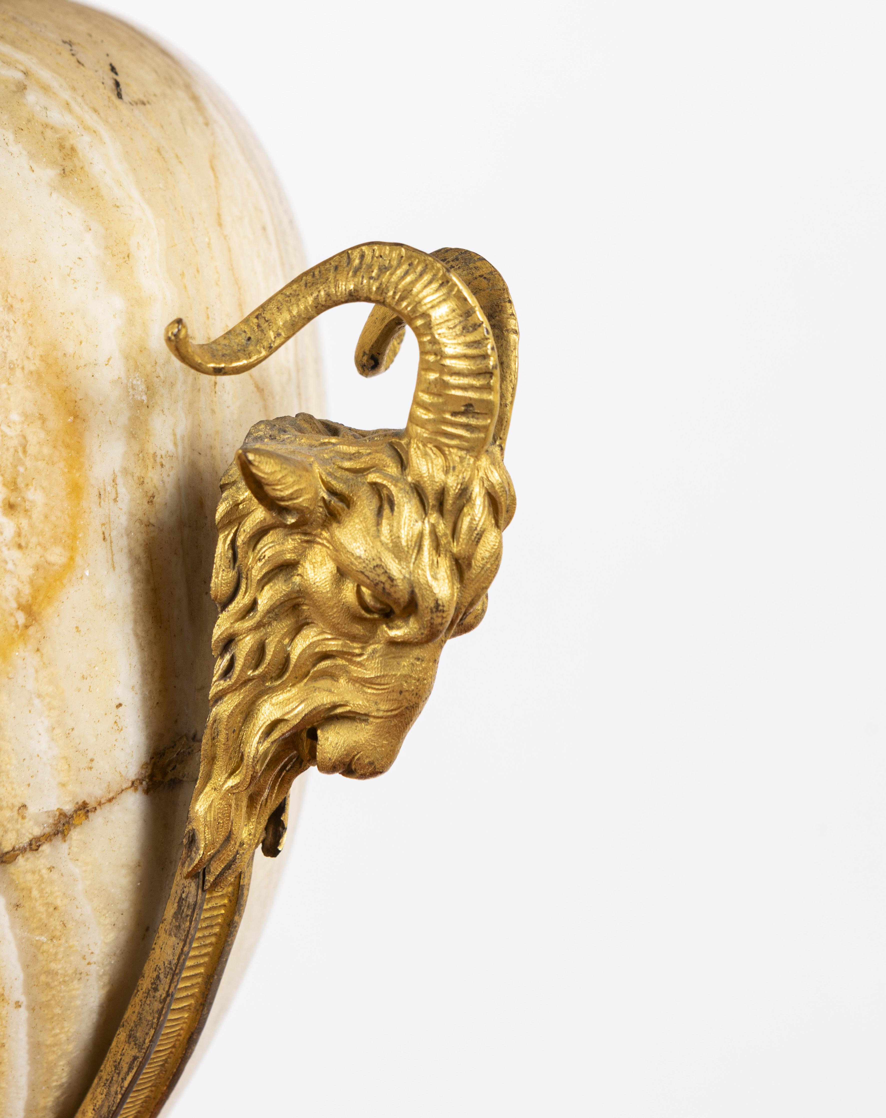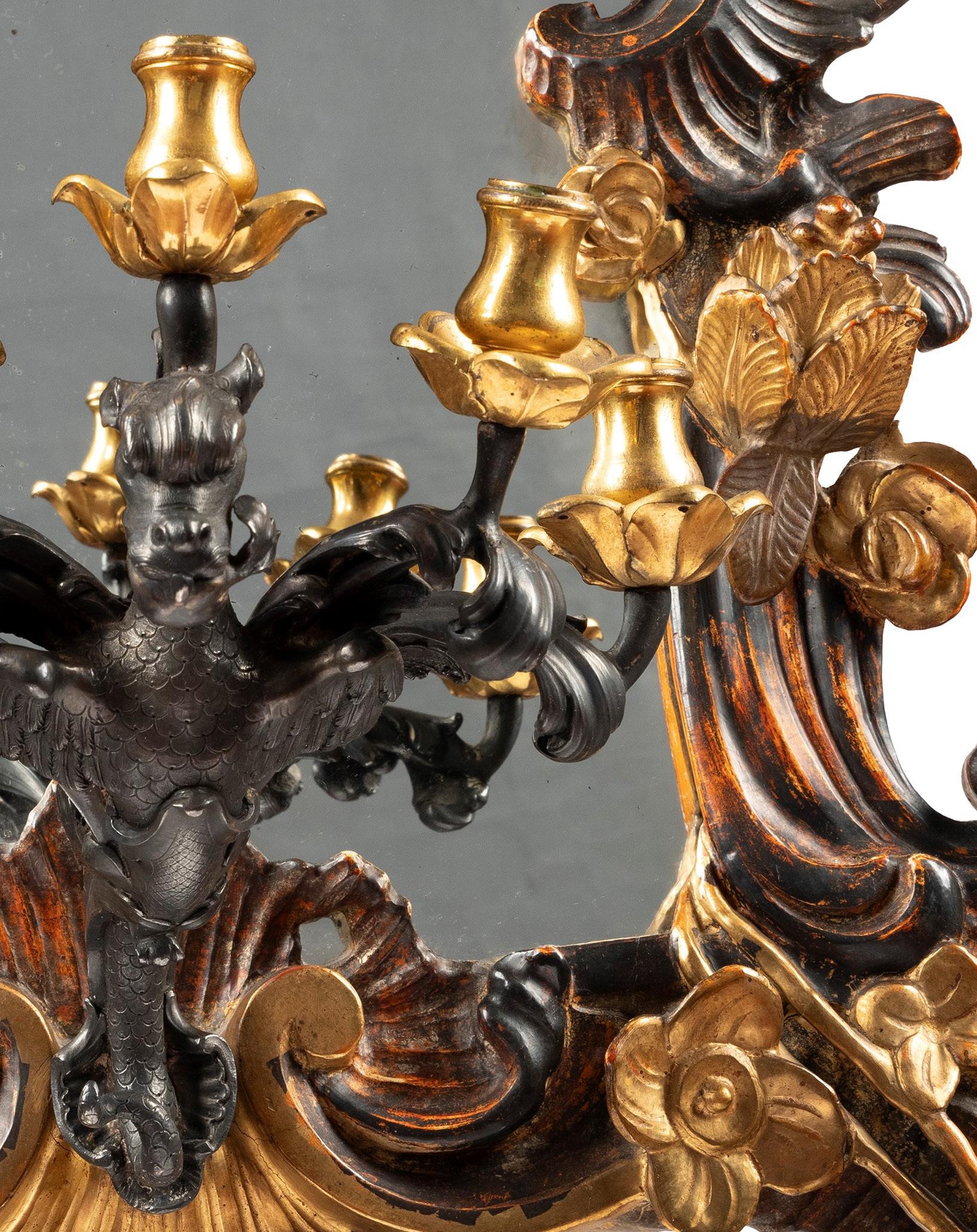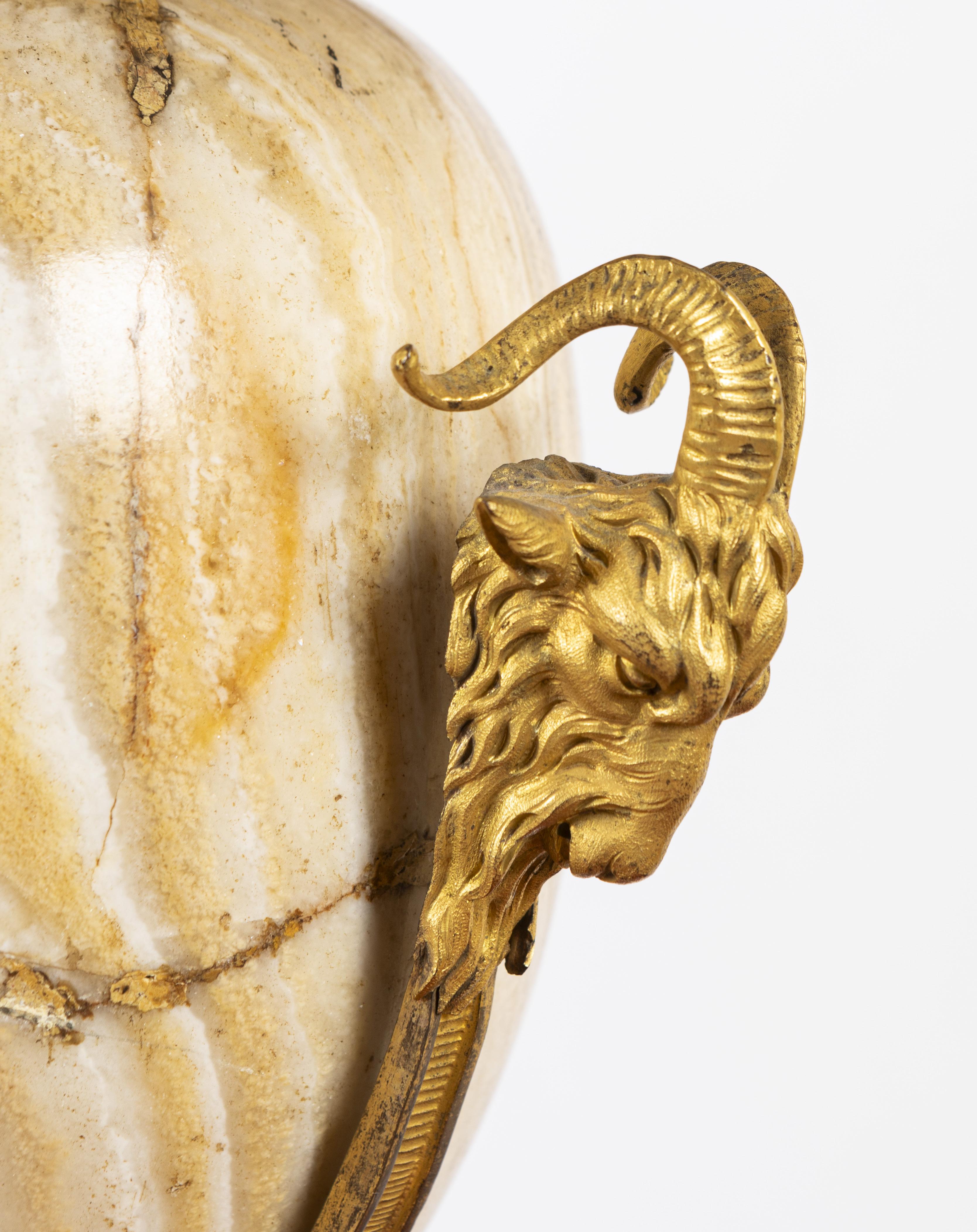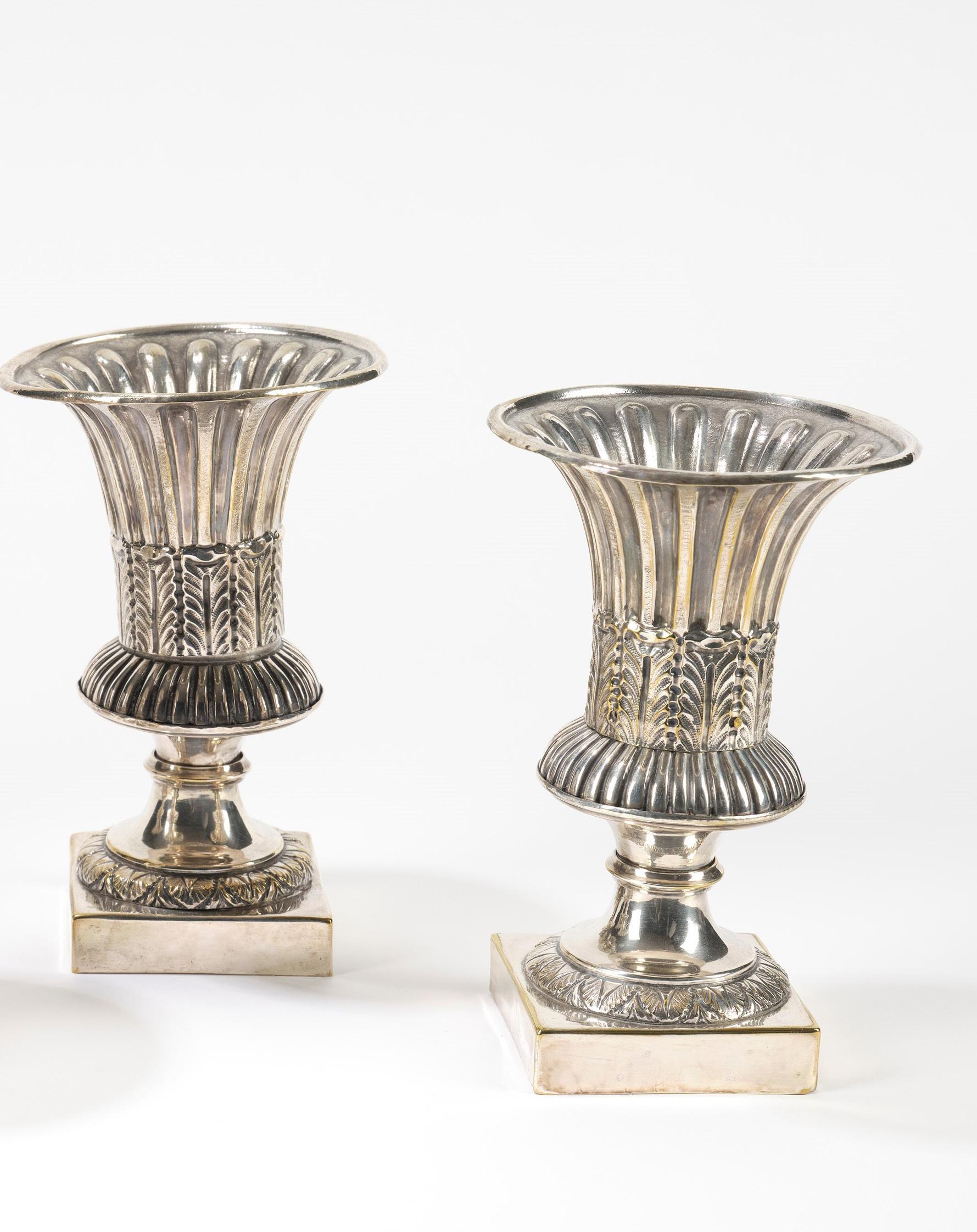 h max cm 42 i candelieri con fusti torniti, il finale in forma di vaso fiorito con anse scolpite a teste di aquile