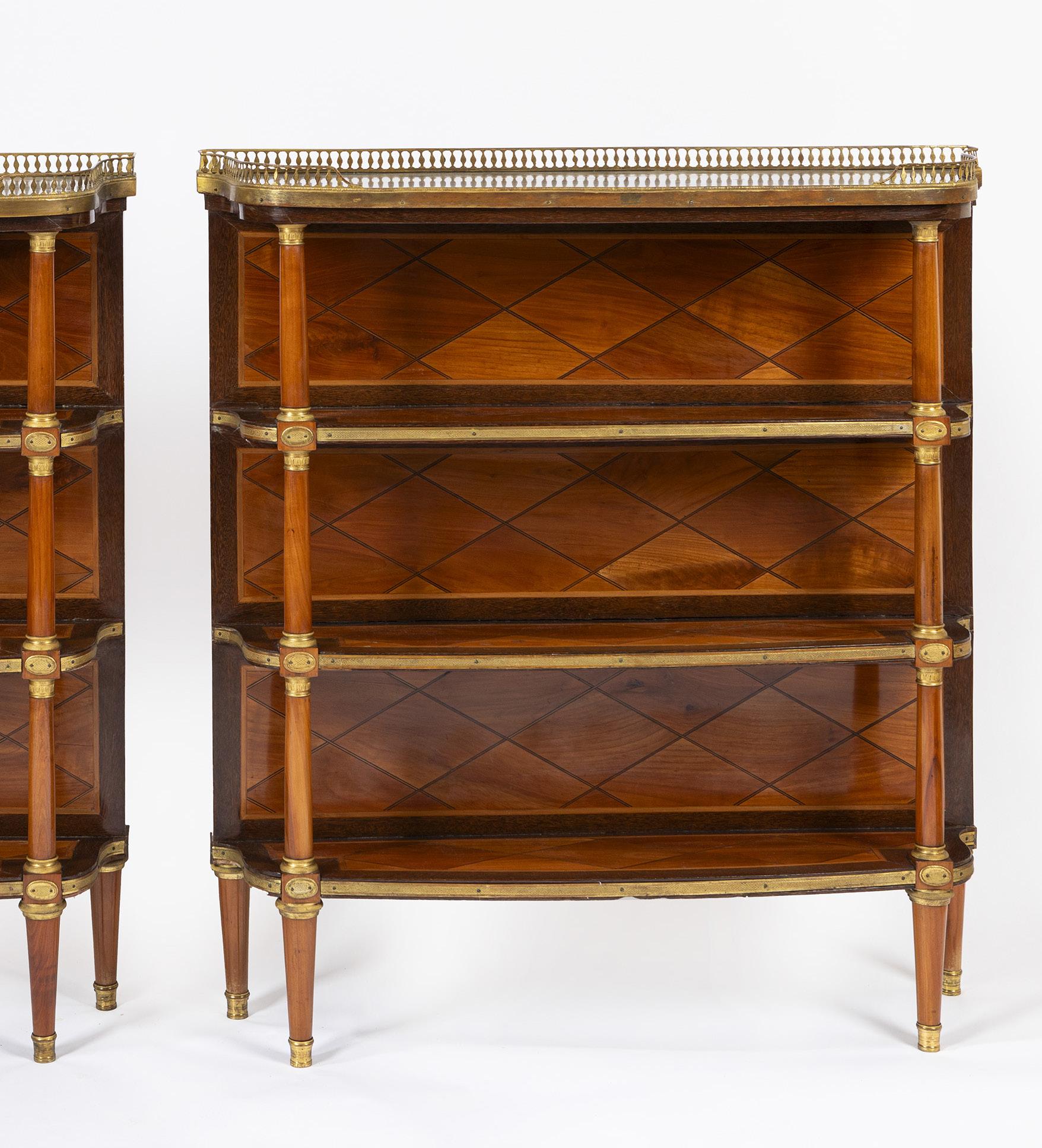 Coppia di etagère in bois de rose e bois de violette, Francia, Luigi XVI h cm 101x91x24