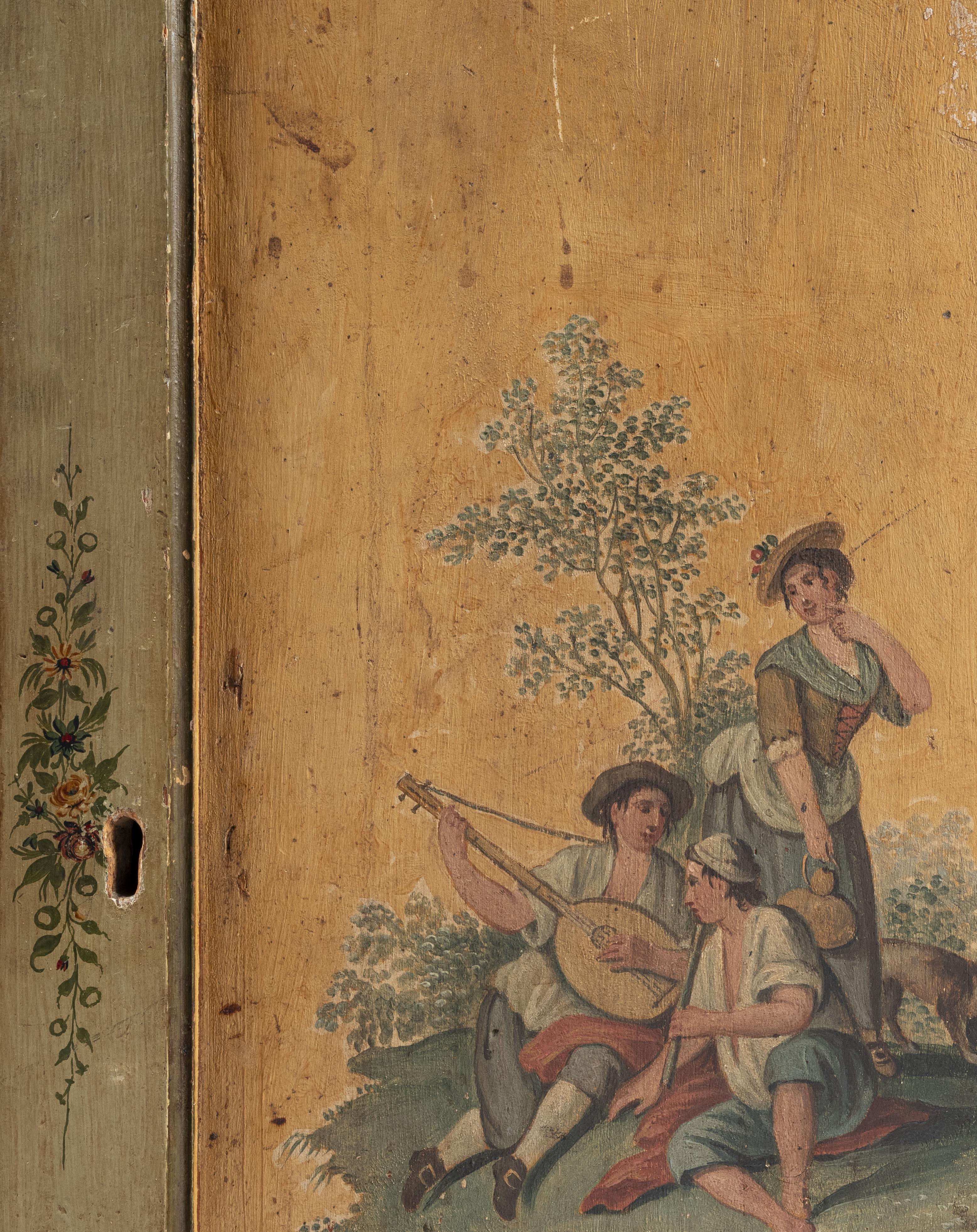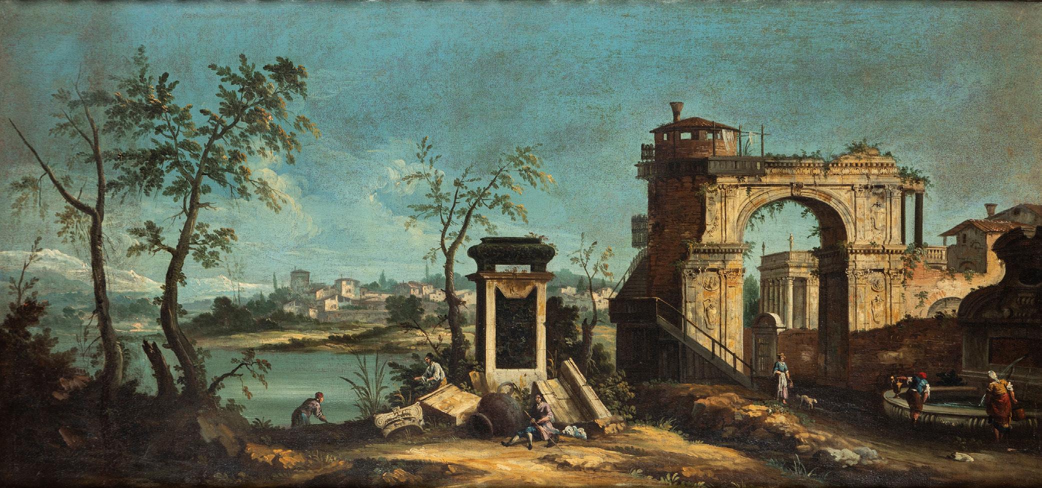 L’opera è accompagnata da expertise di Giuseppe Fiocco, datata 22 marzo 1942; lo studioso attribuisce il dipinto a Francesco Zuccarelli (Pitigliano 1702 - Firenze 1788), datandolo all’età matura del pittore, dopo il periodo inglese.