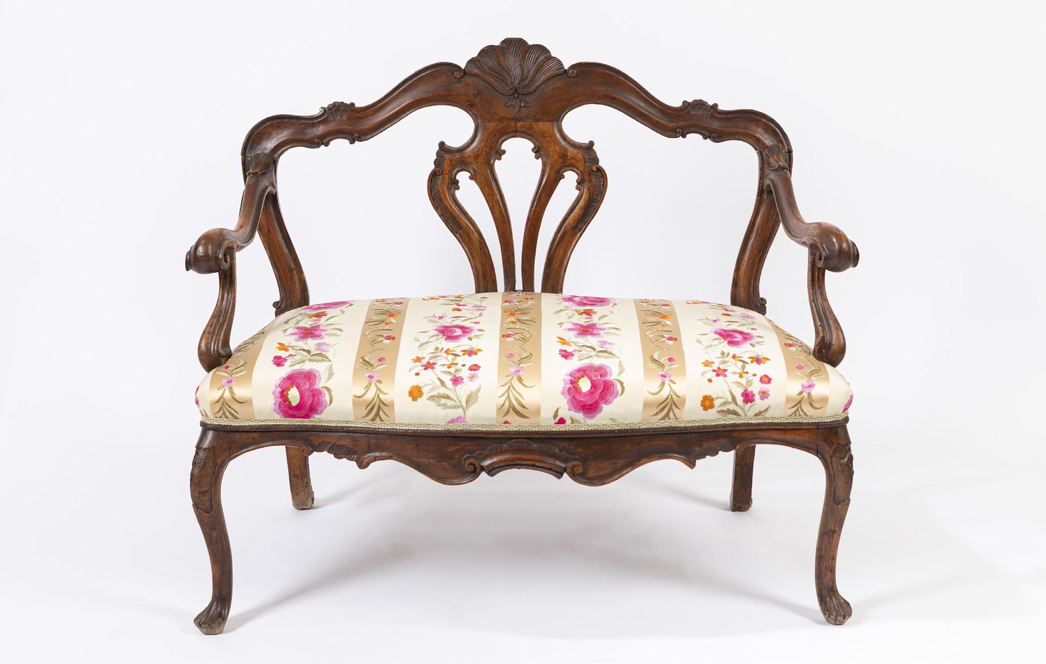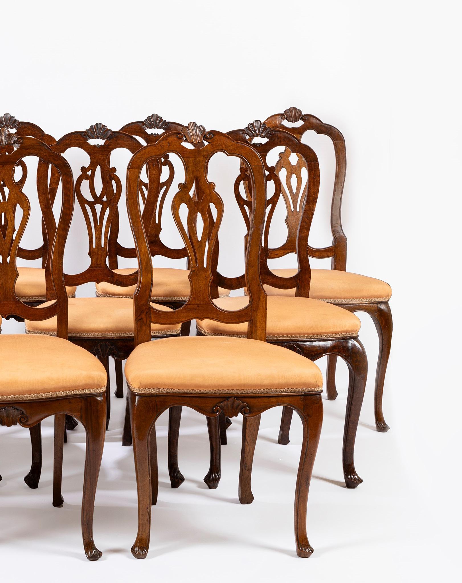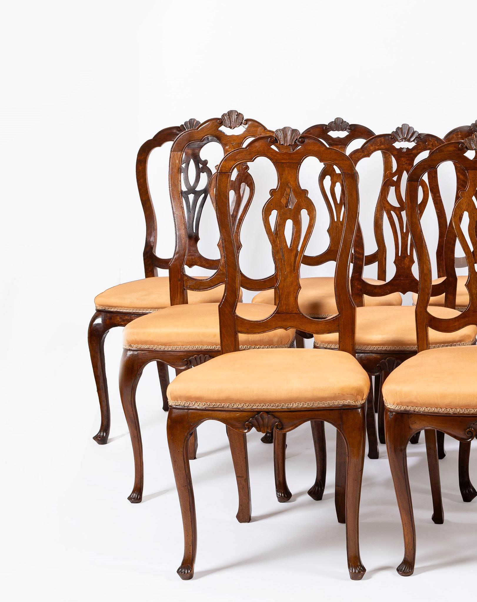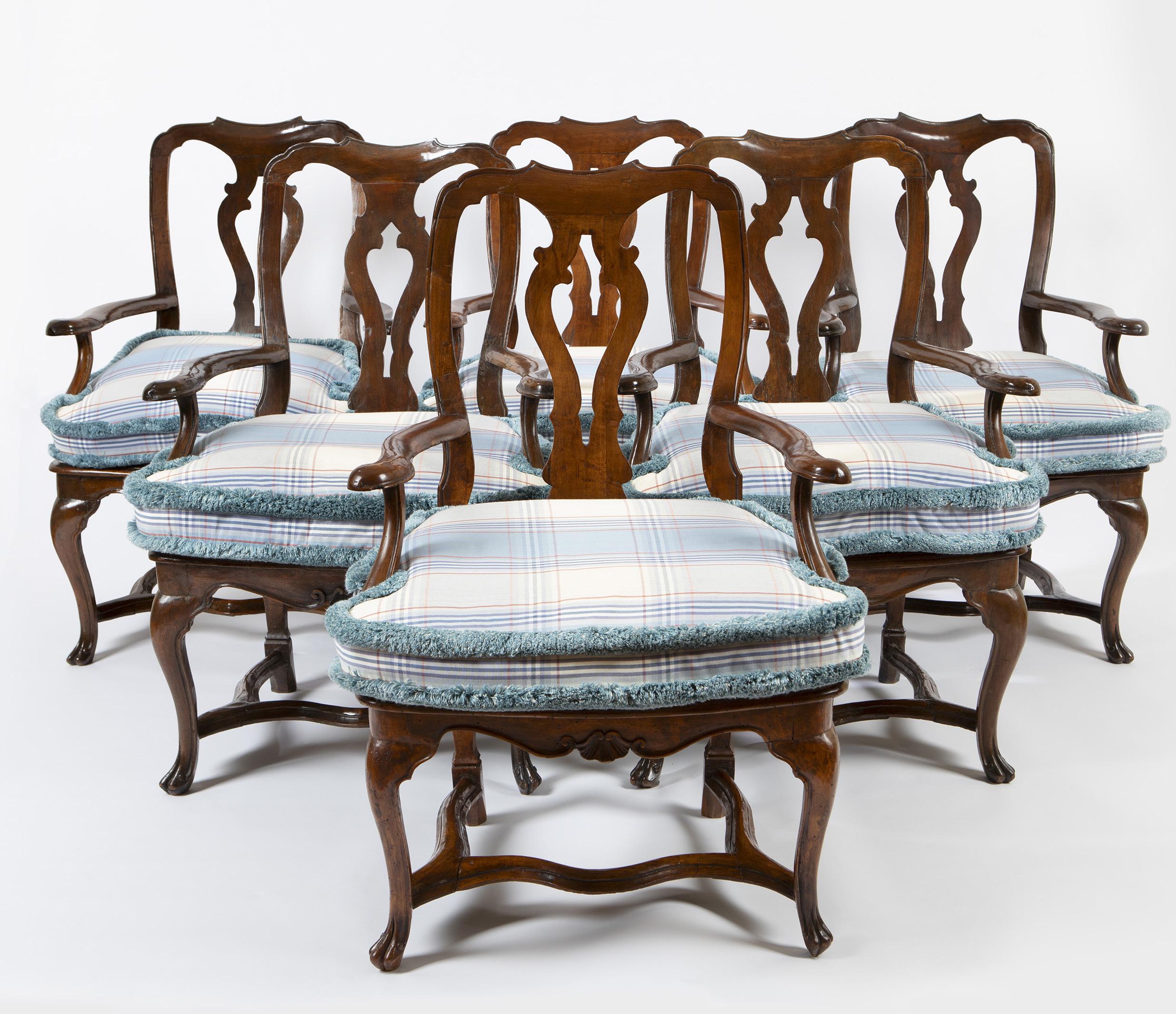 Suite di sei poltrone in noce, Venezia, circa 1760 h cm 96
