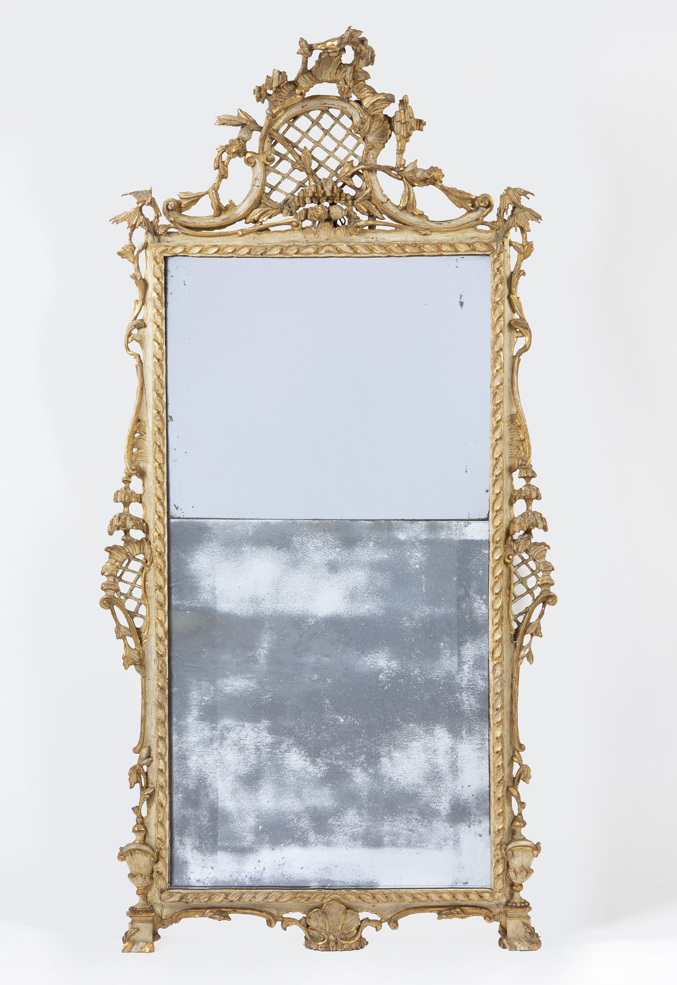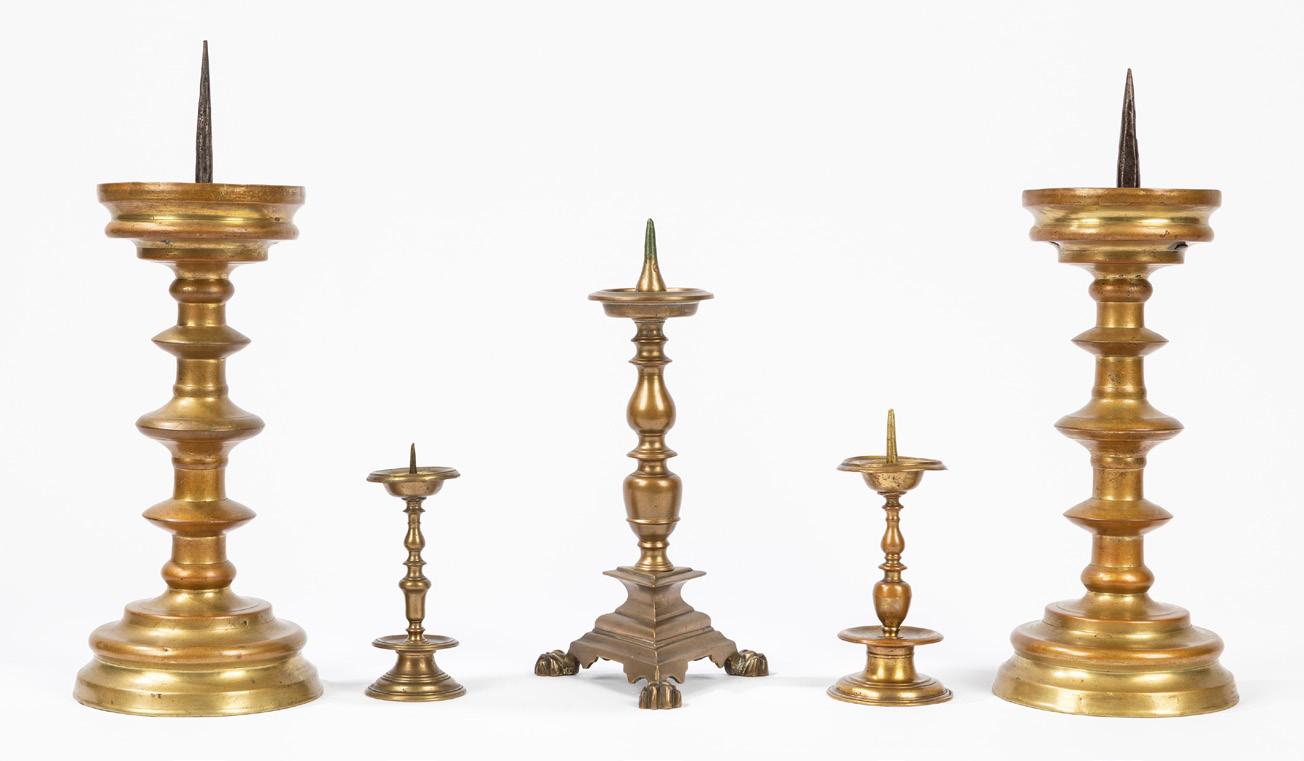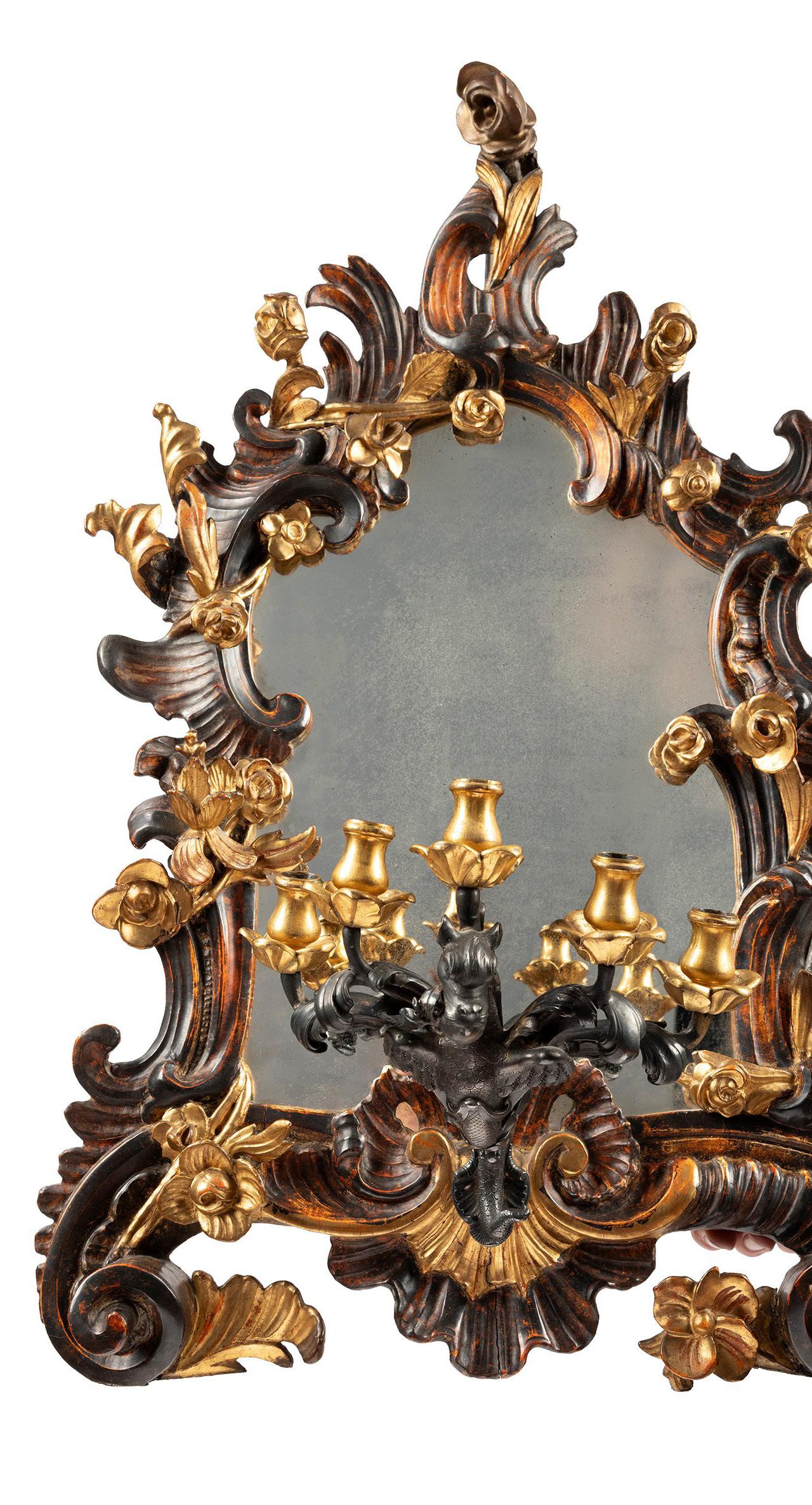 Lotto composto da una coppia di torciere da tavolo, un candeliere ed un finale in legno intagliato e dorato, secolo XVIII