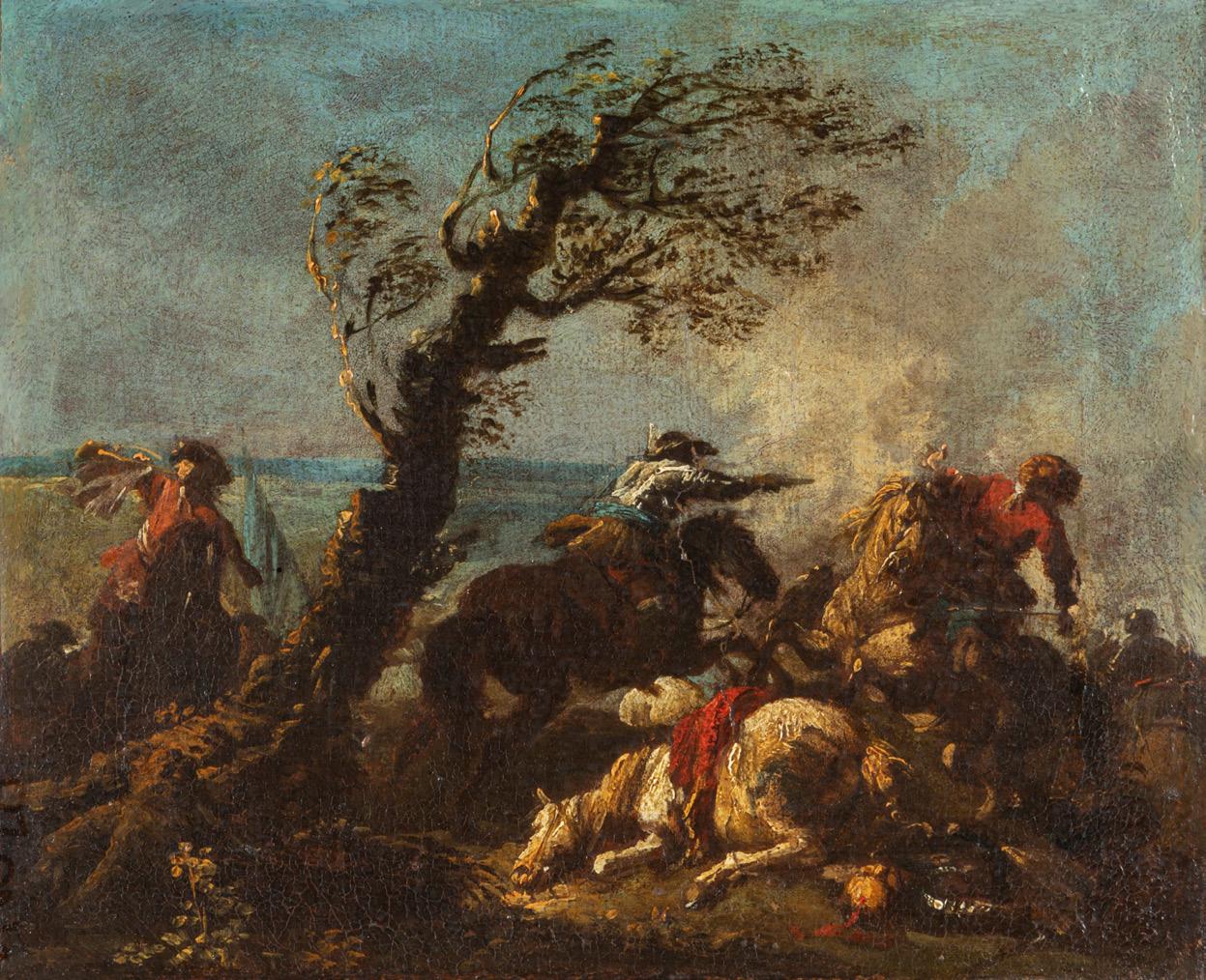L’opera è accompagnata da expertise, su fotografica in bianco e nero e non datata, di Rodolfo Pallucchini. Lo studioso considera il dipinto un raro esempio di Battaglia di Francesco Guardi.