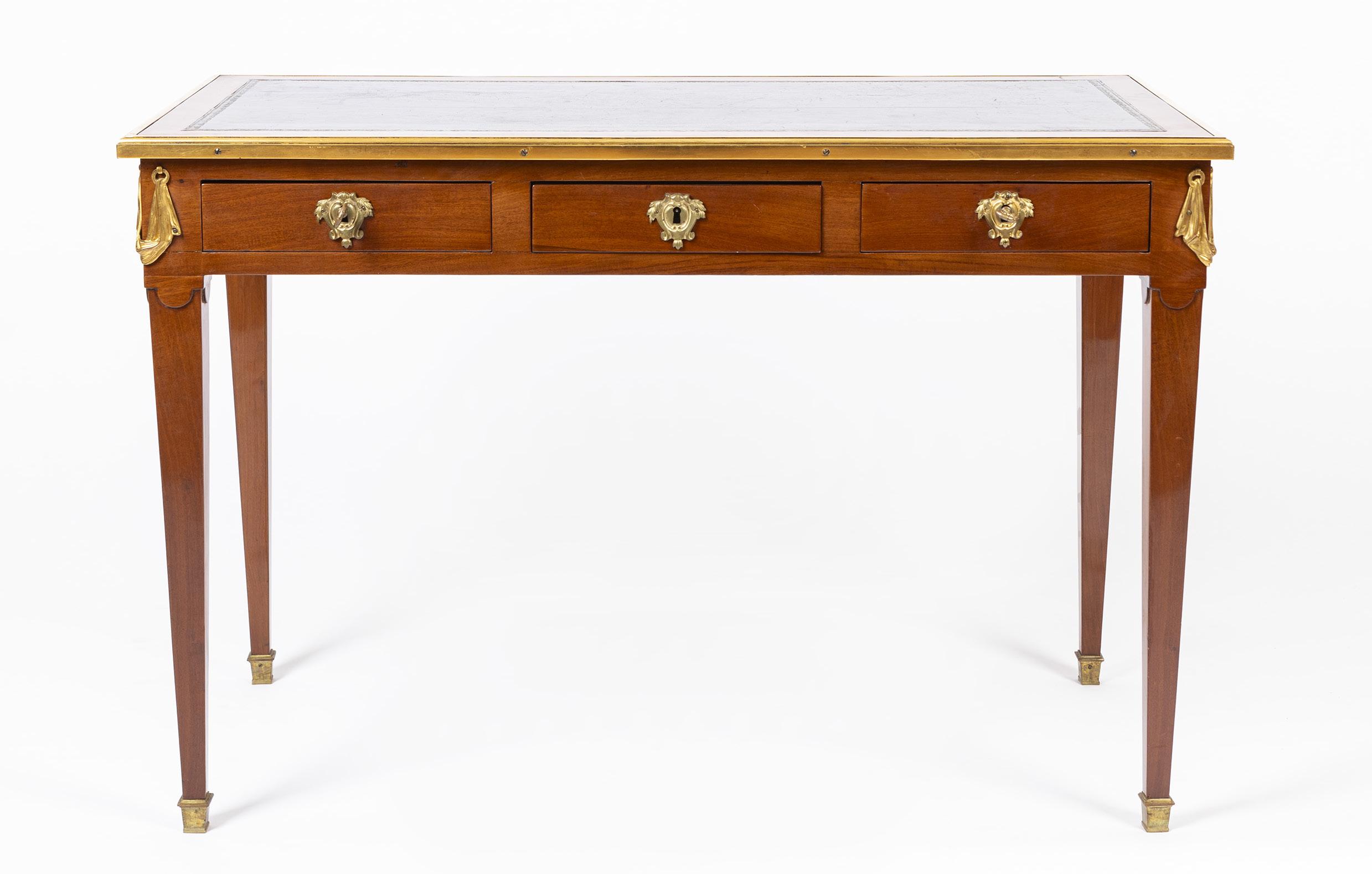 Tavolo da scrittura in mogano, stampigliato P. Garnier, Luigi XVI, Francia, circa 1780 h cm 74x82x49