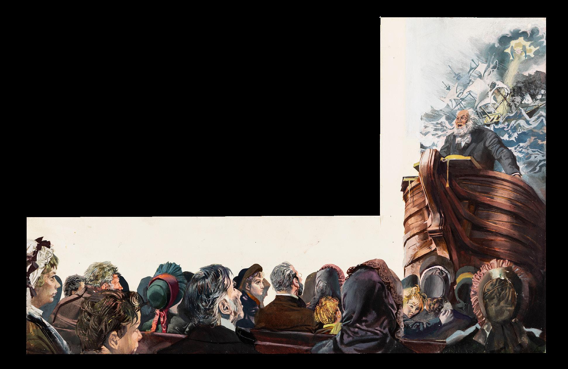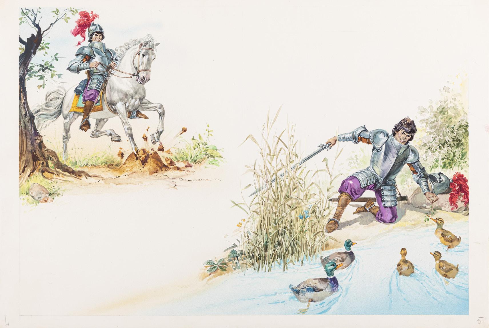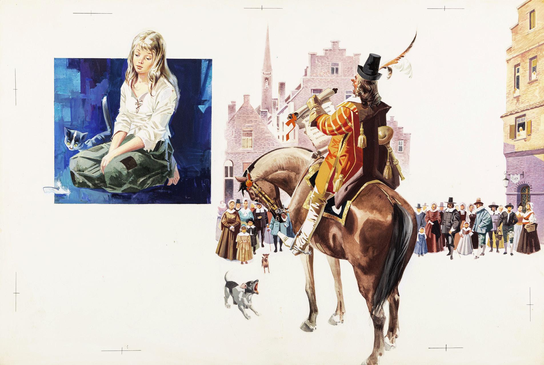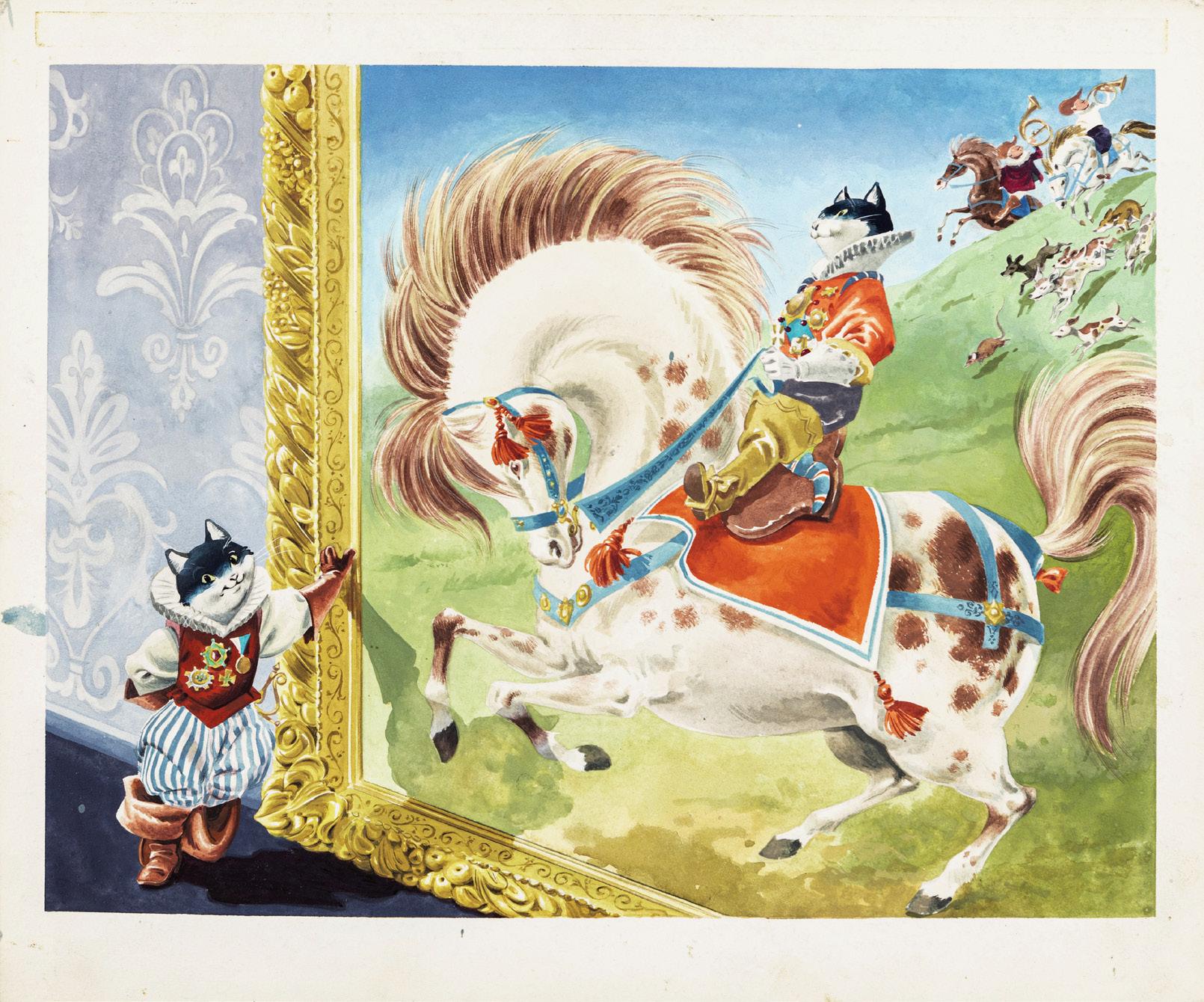 Tempera on cardboard. Original illustration done by Sergio for his famous interpretation of “The Adventures of Pinocchio” by Carlo Collodi, published between 1961 and 1965. Signed and dated.