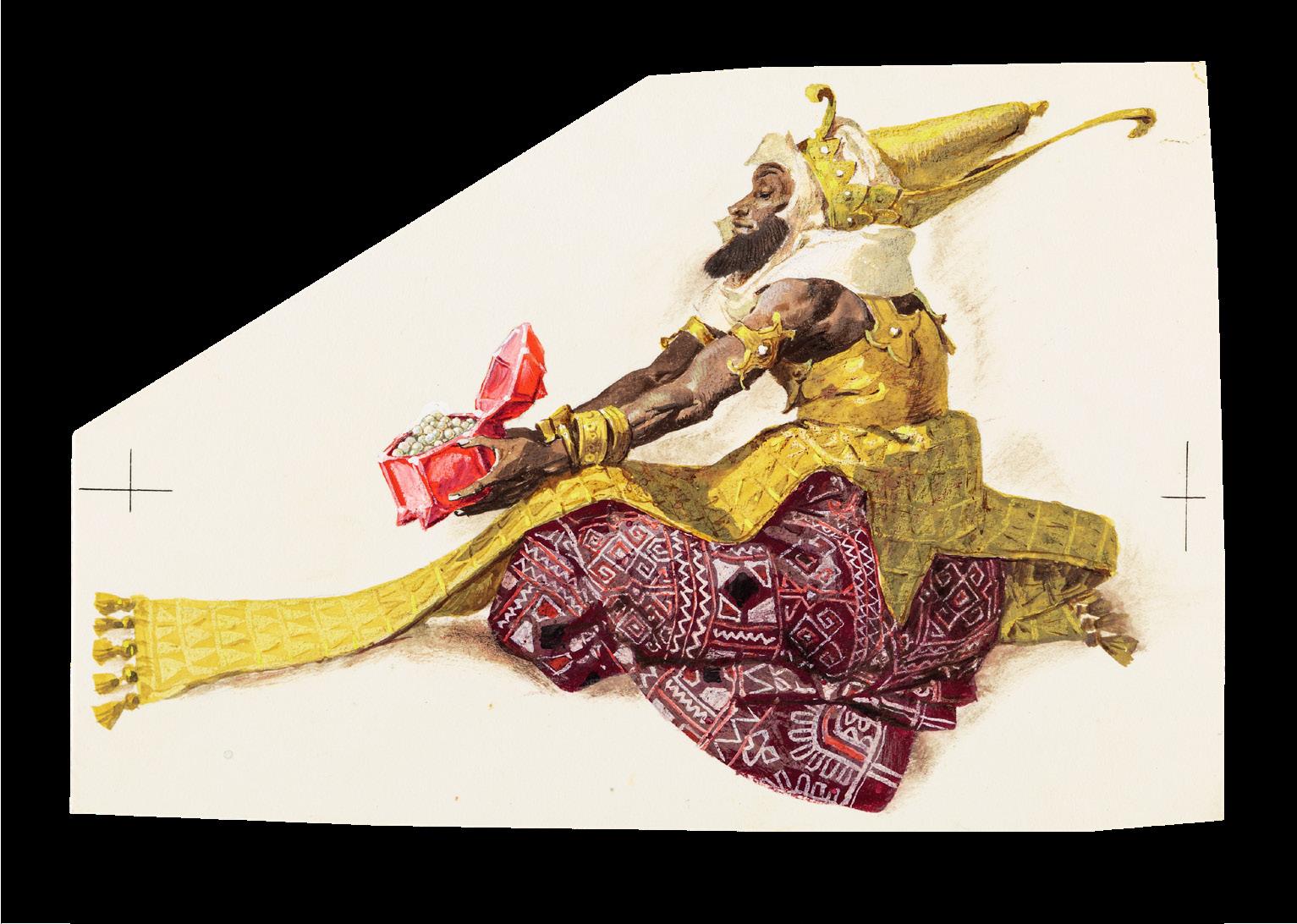 Tempera on shaped cardboard. Original illustration done by Sergio for his famous interpretation of “The Adventures of Pinocchio” by Carlo Collodi, published between 1961 and 1965.