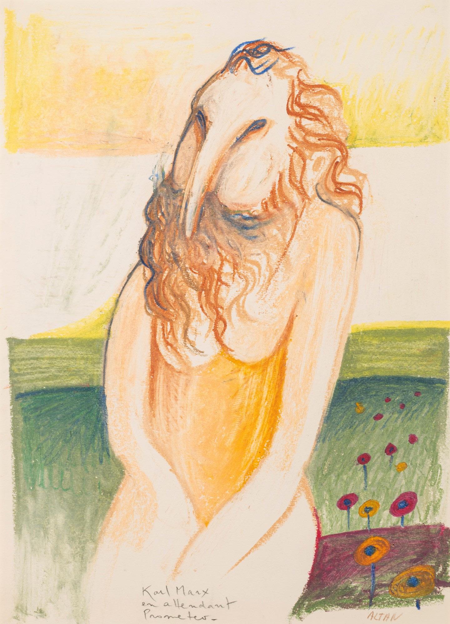 Carl Marx en attendant Prometeo Pastelli a cera su carta, 1968-1970.