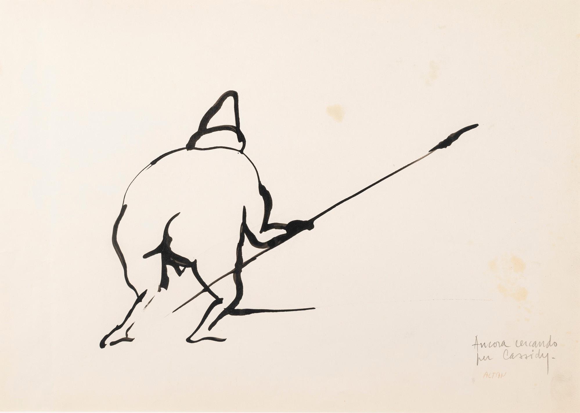 Questo gruppo di disegni risale agli anni 1968-70, periodo in cui ho vissuto a Roma nell’intervallo fra il mio primo e secondo viaggio in Brasile. All’epoca lavoravo per la rivista Playmen, pubblicando vignette e illustrazioni dei racconti, che firmavo con lo pseudonimo “Panzoust”. Per questi lavori usavo sostanzialmente chine, nere e colorate, spesso utilizzando la “penna d’oca” che era fissata al tappo delle bottigliette d’inchiostro.
