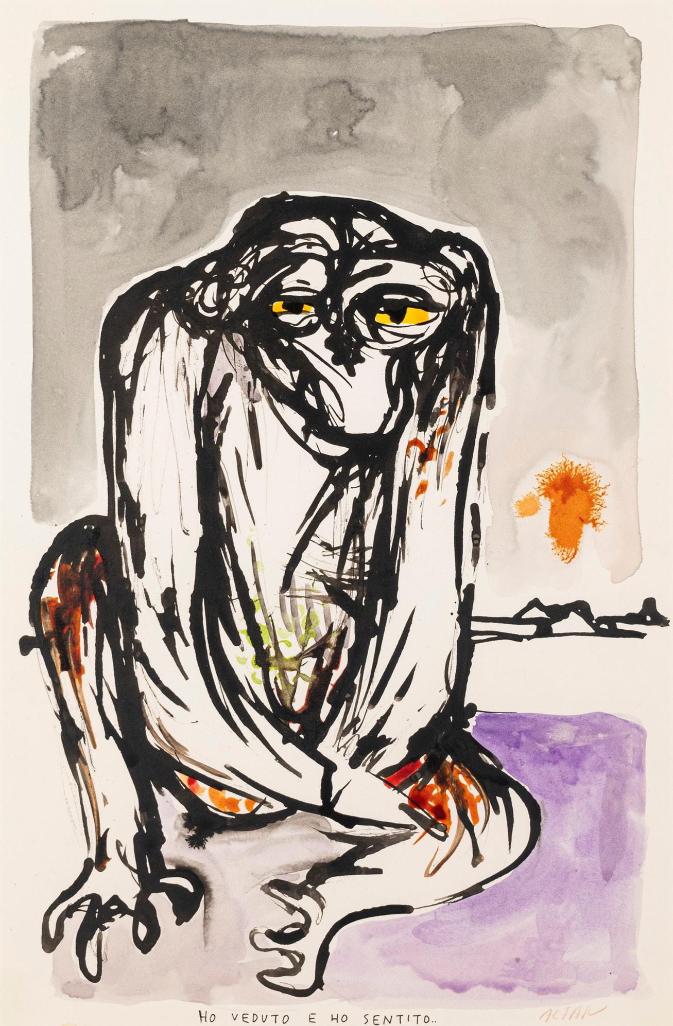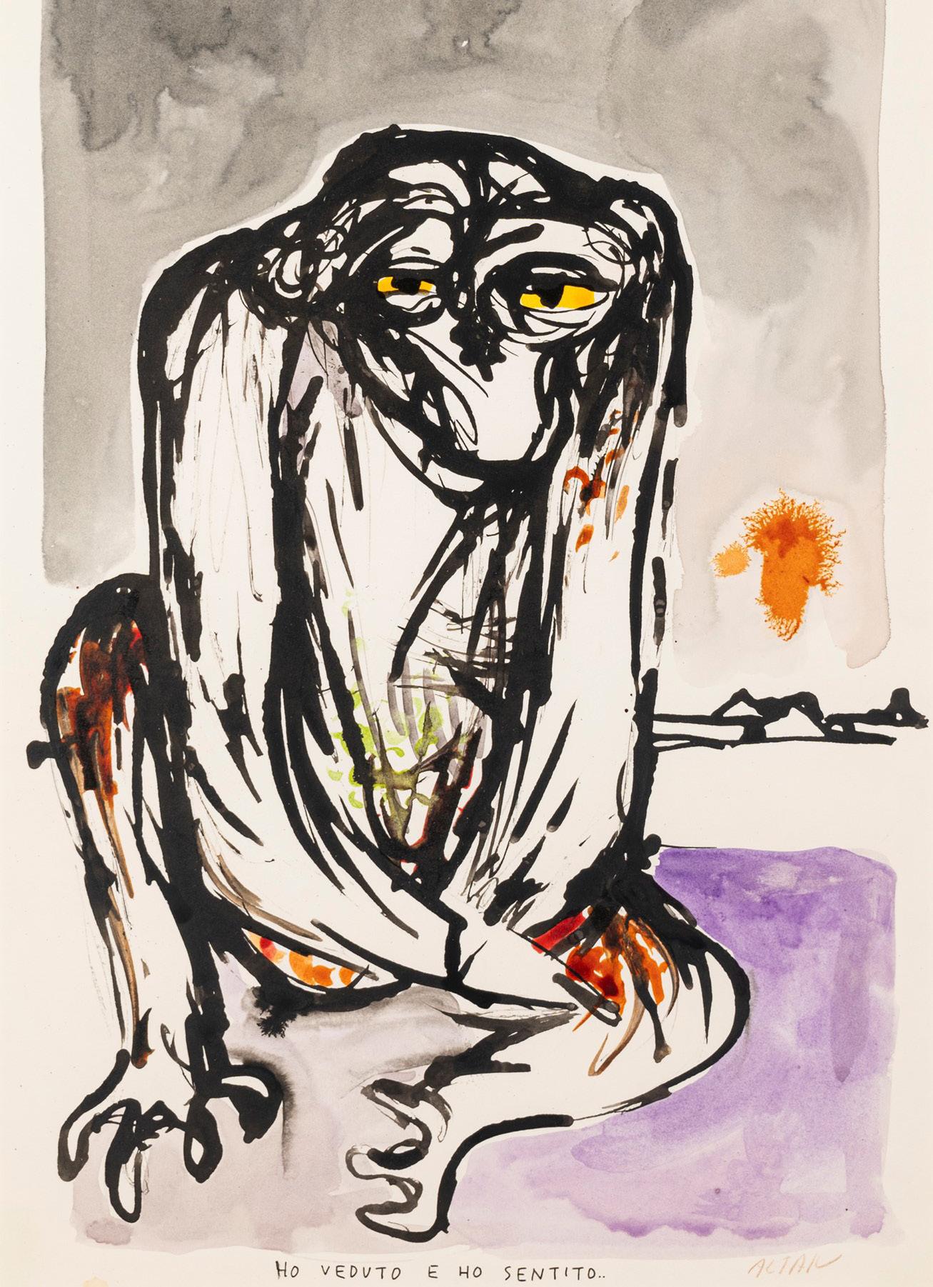 Fuga di Nasser in Egitto Rapidograph, acquerello e pastelli a cera su carta, 1968-1970.
