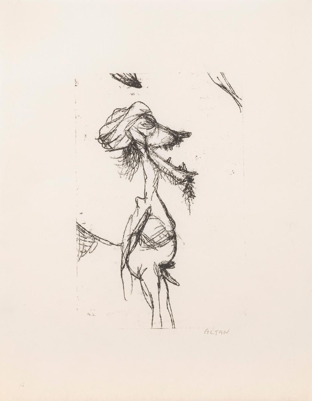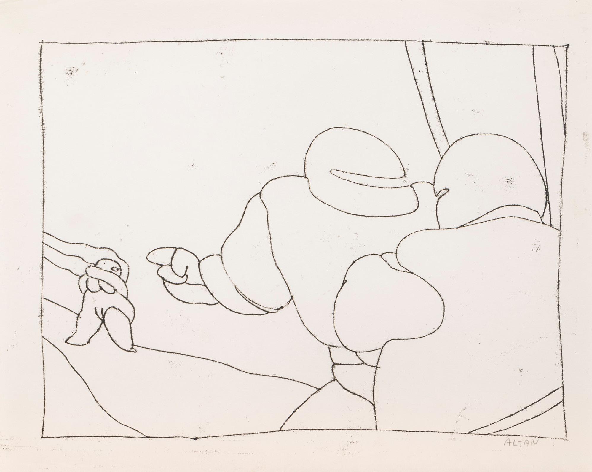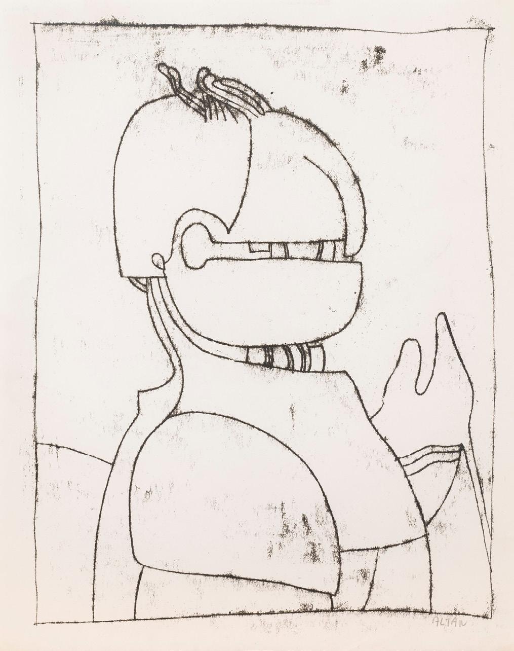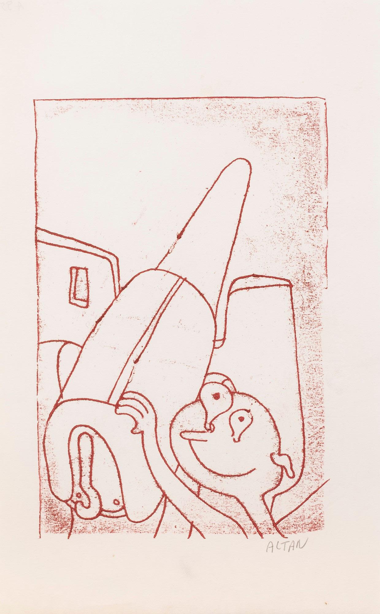 Uomo con pene e berretto rosso Rapidograph e pastello a cera su carta, 1968-1970.