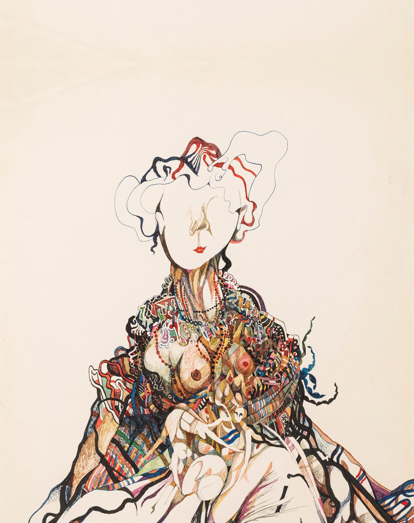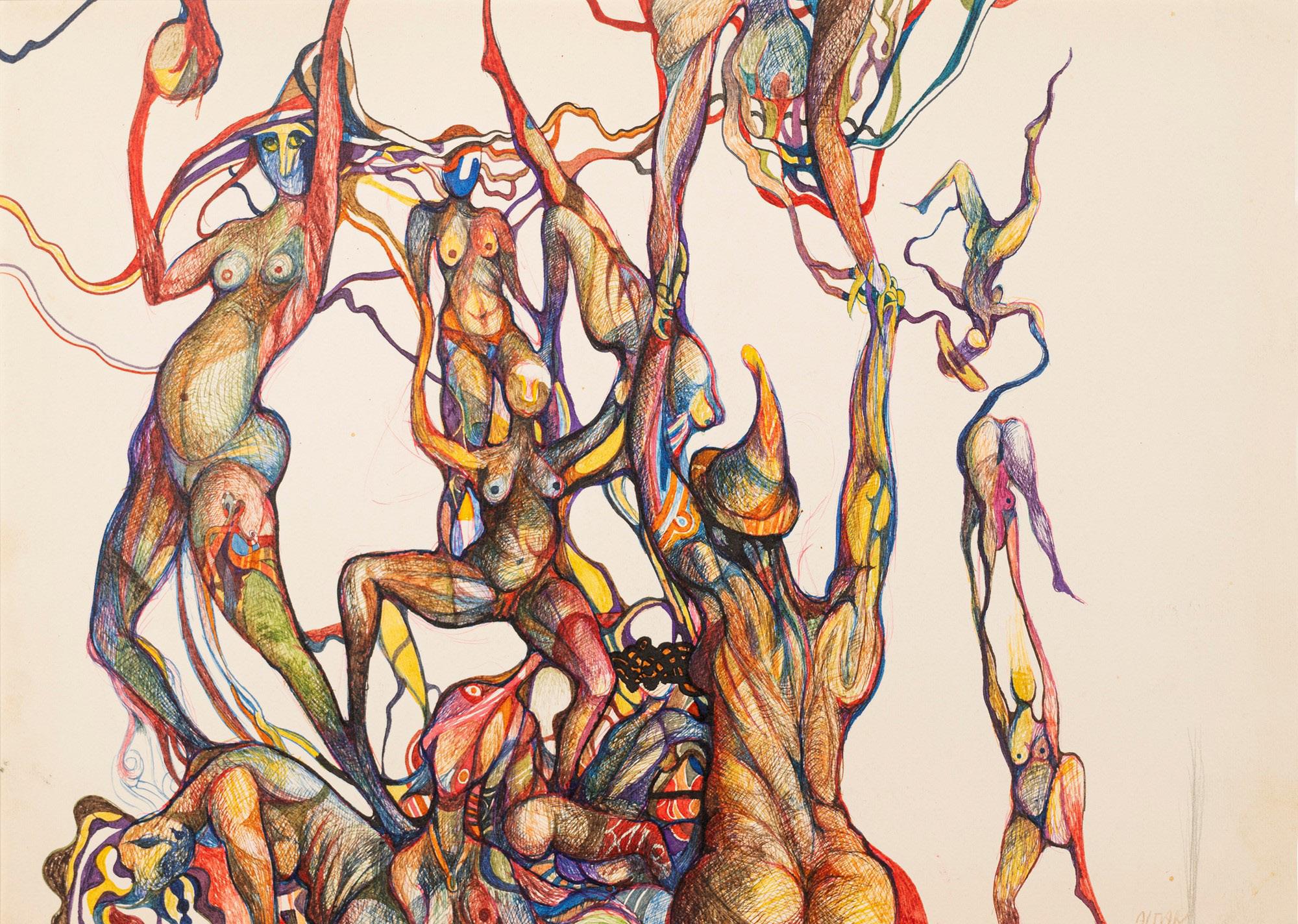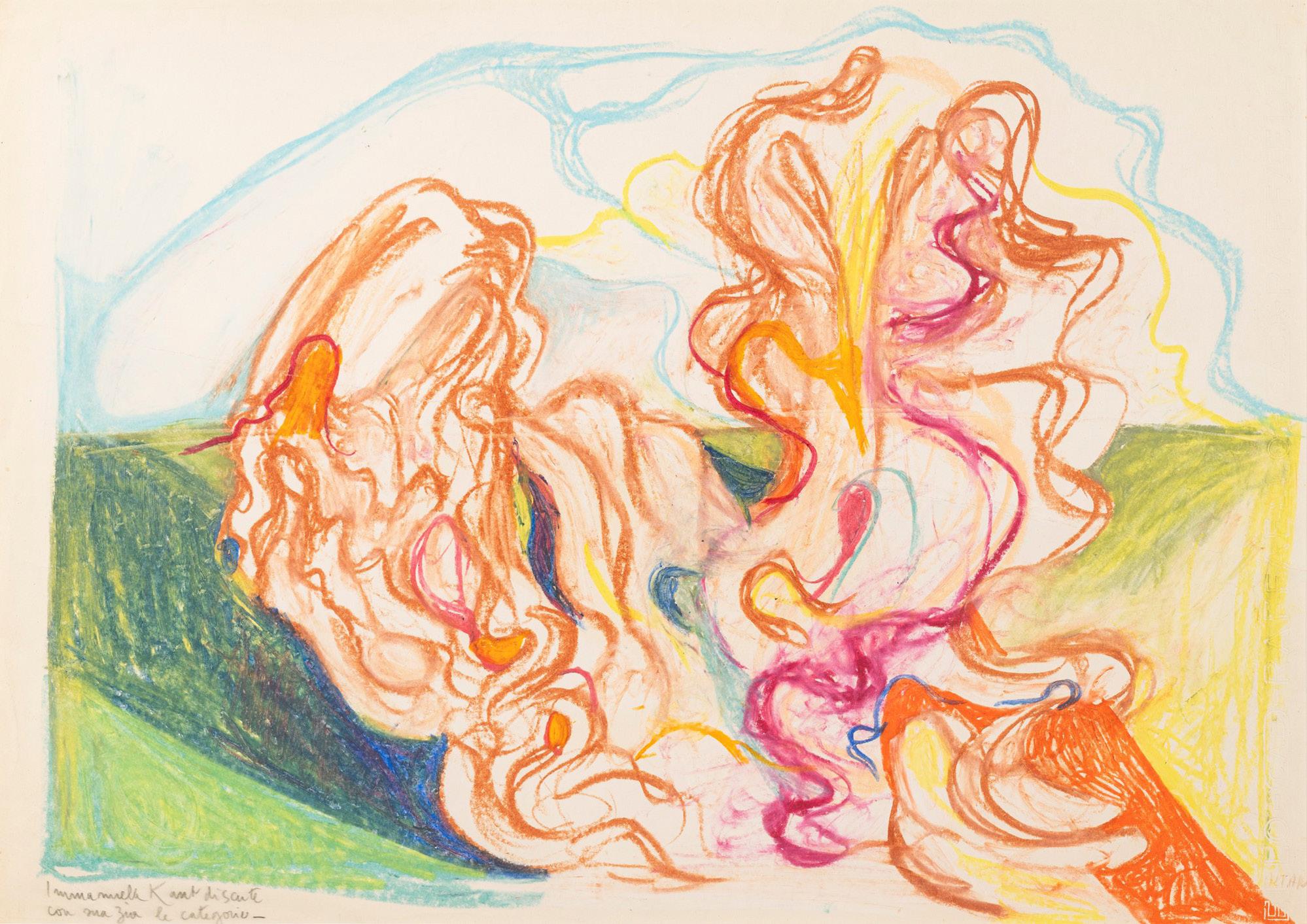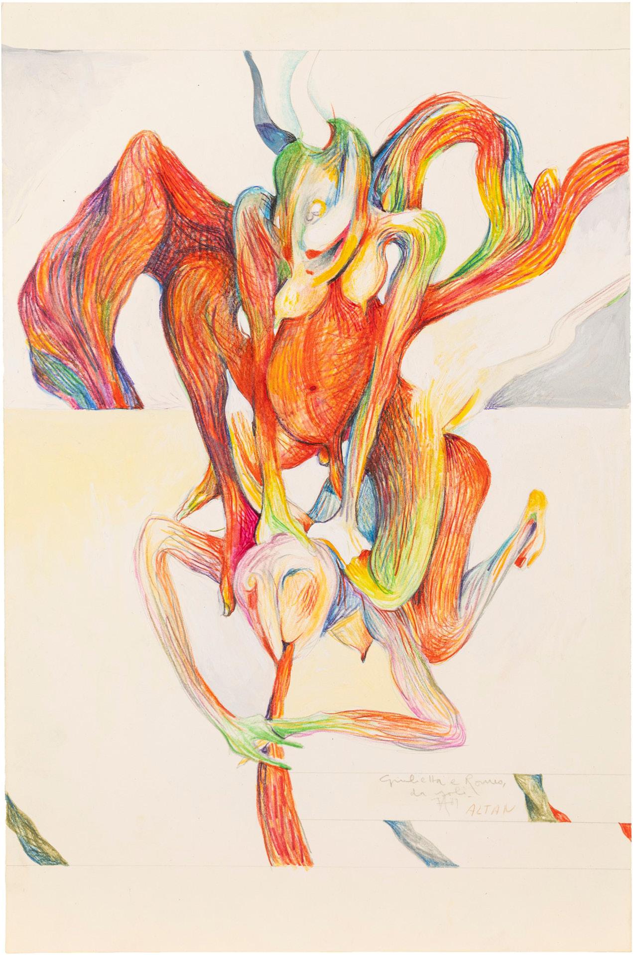 L’estasi di creativa del pollo umano Matita e pastelli a cera su carta, 1968-1970.