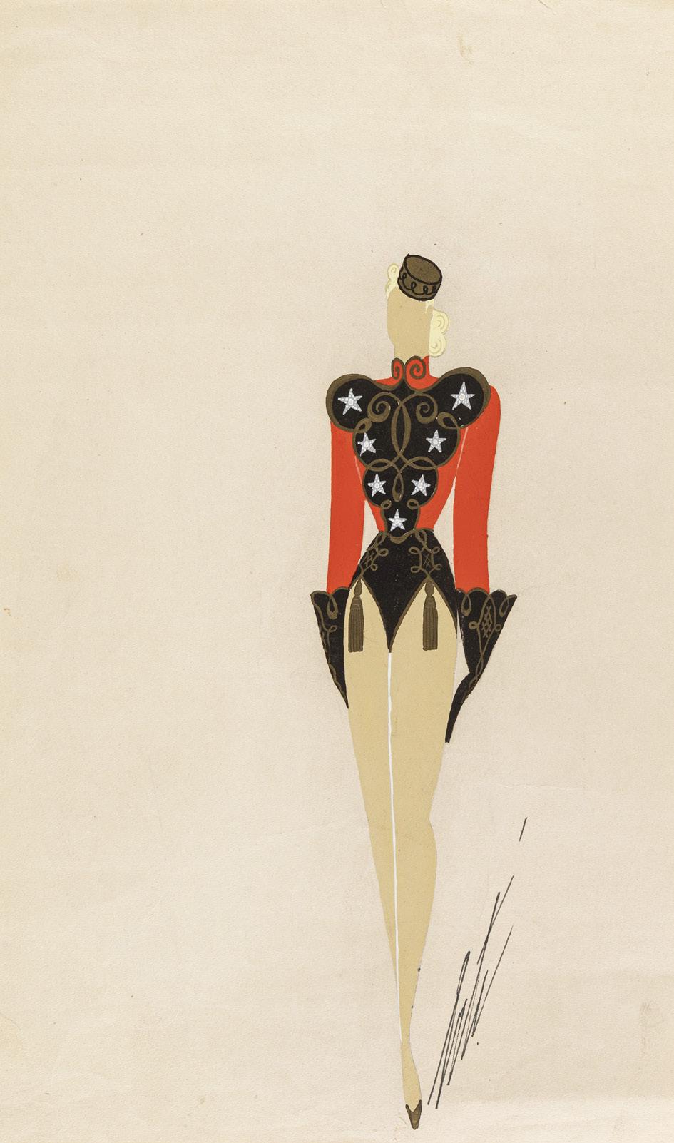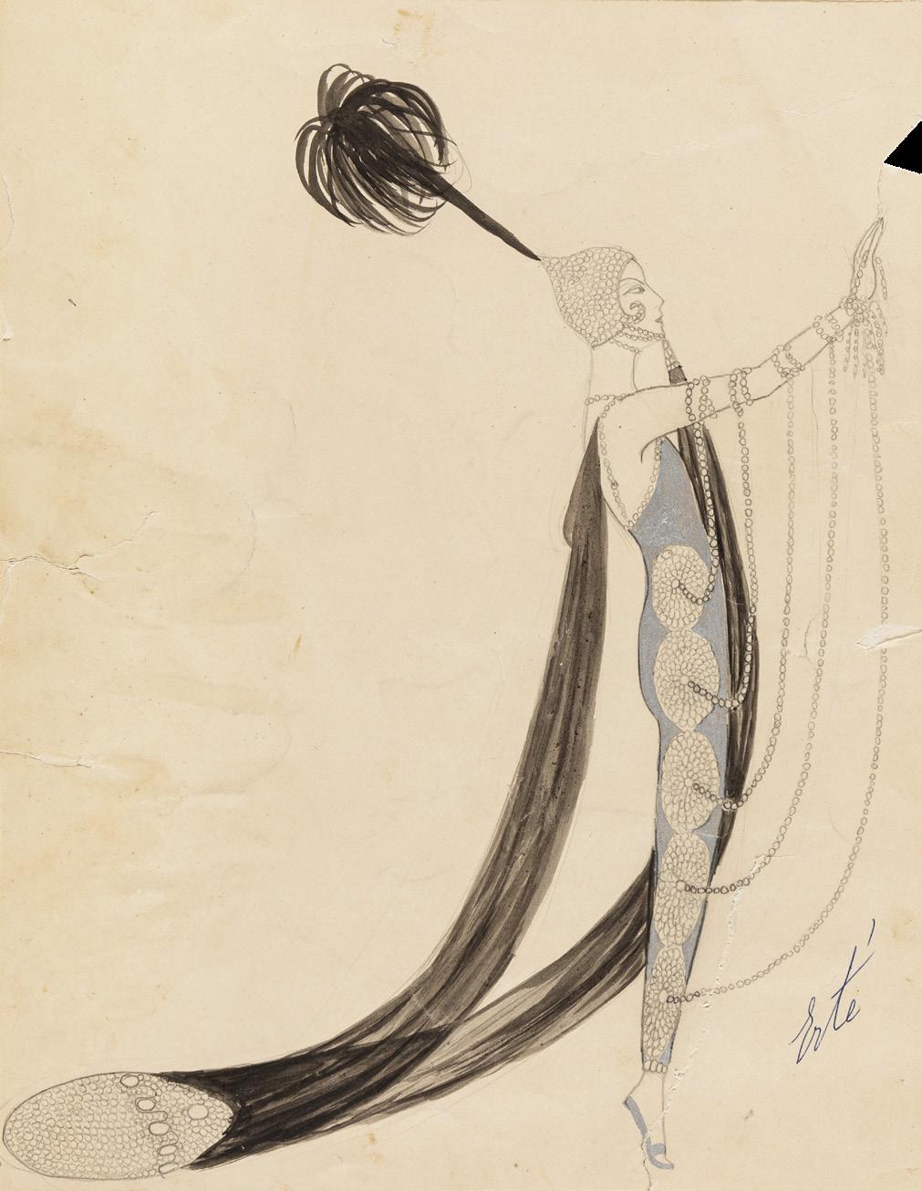 Disegno originale realizzato da Erté negli anni ‘40 per i costumi di una rappresentazione teatrale.