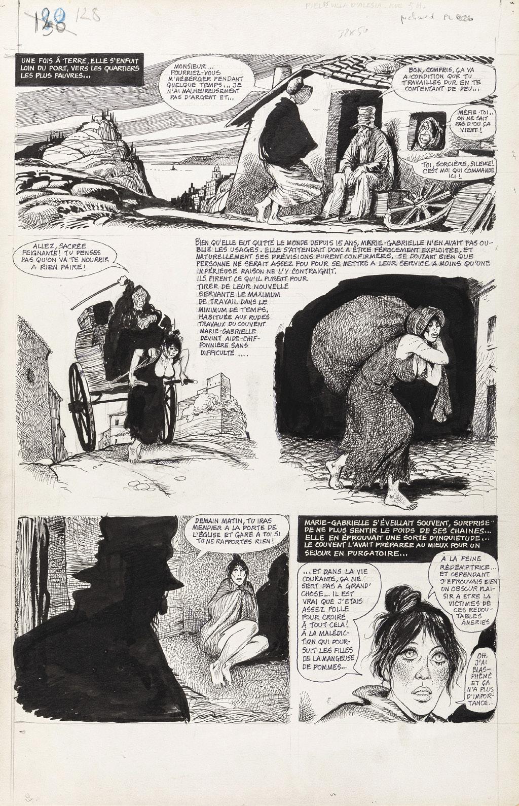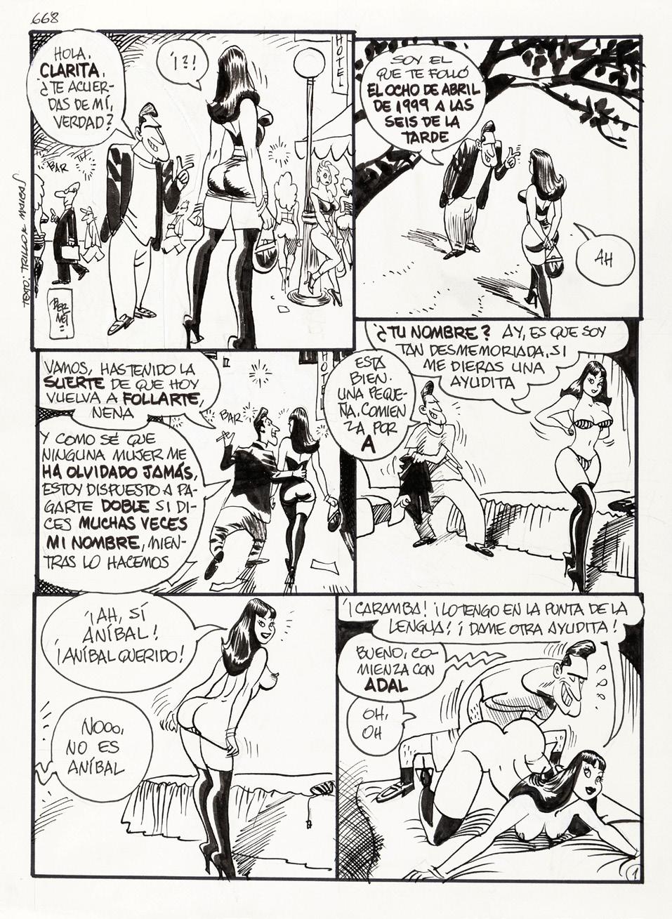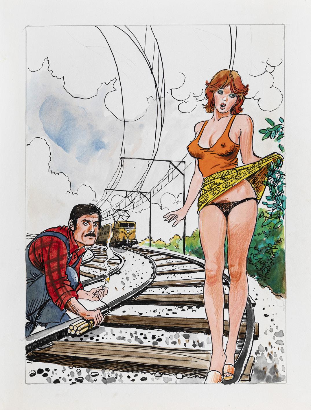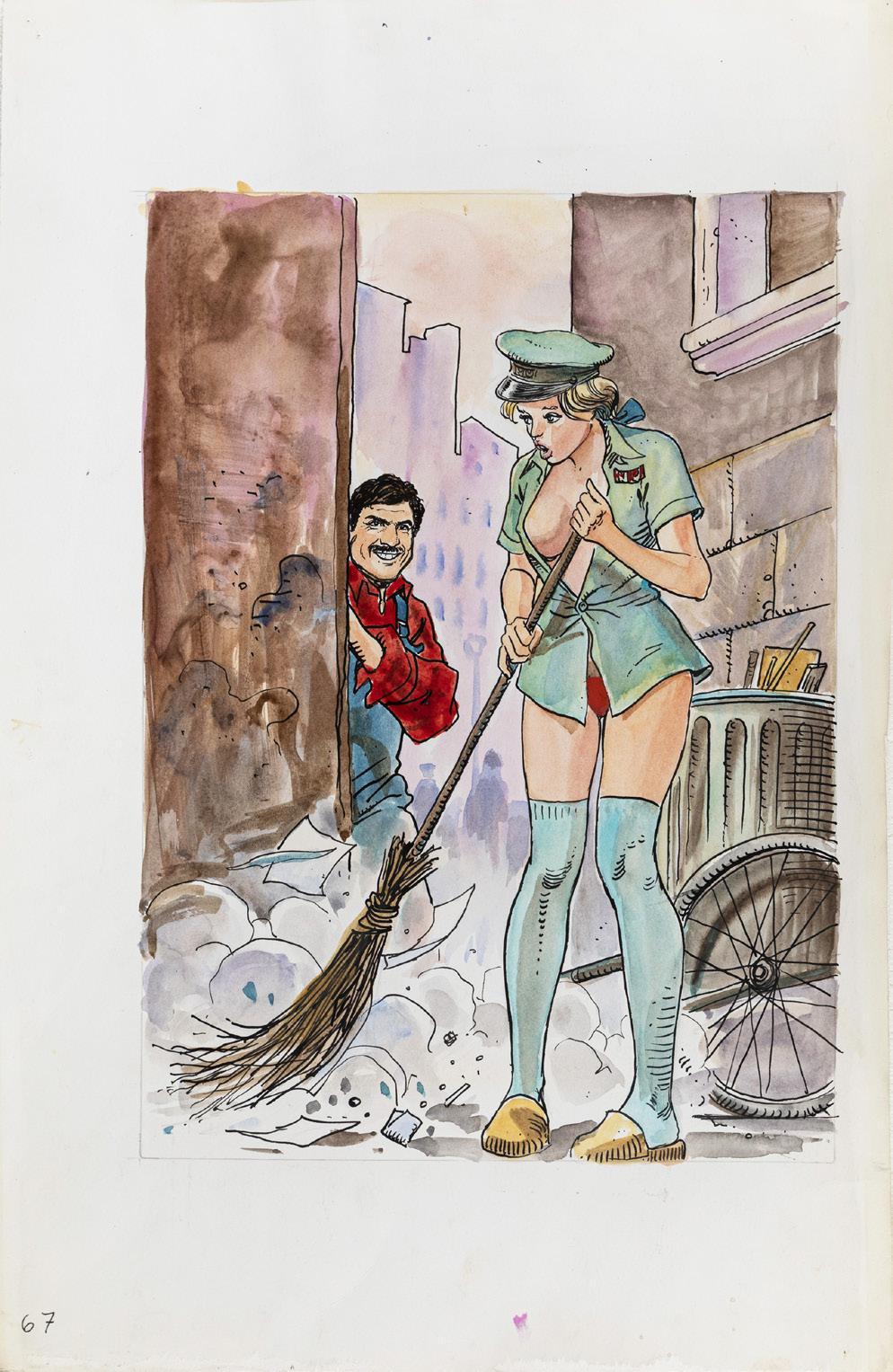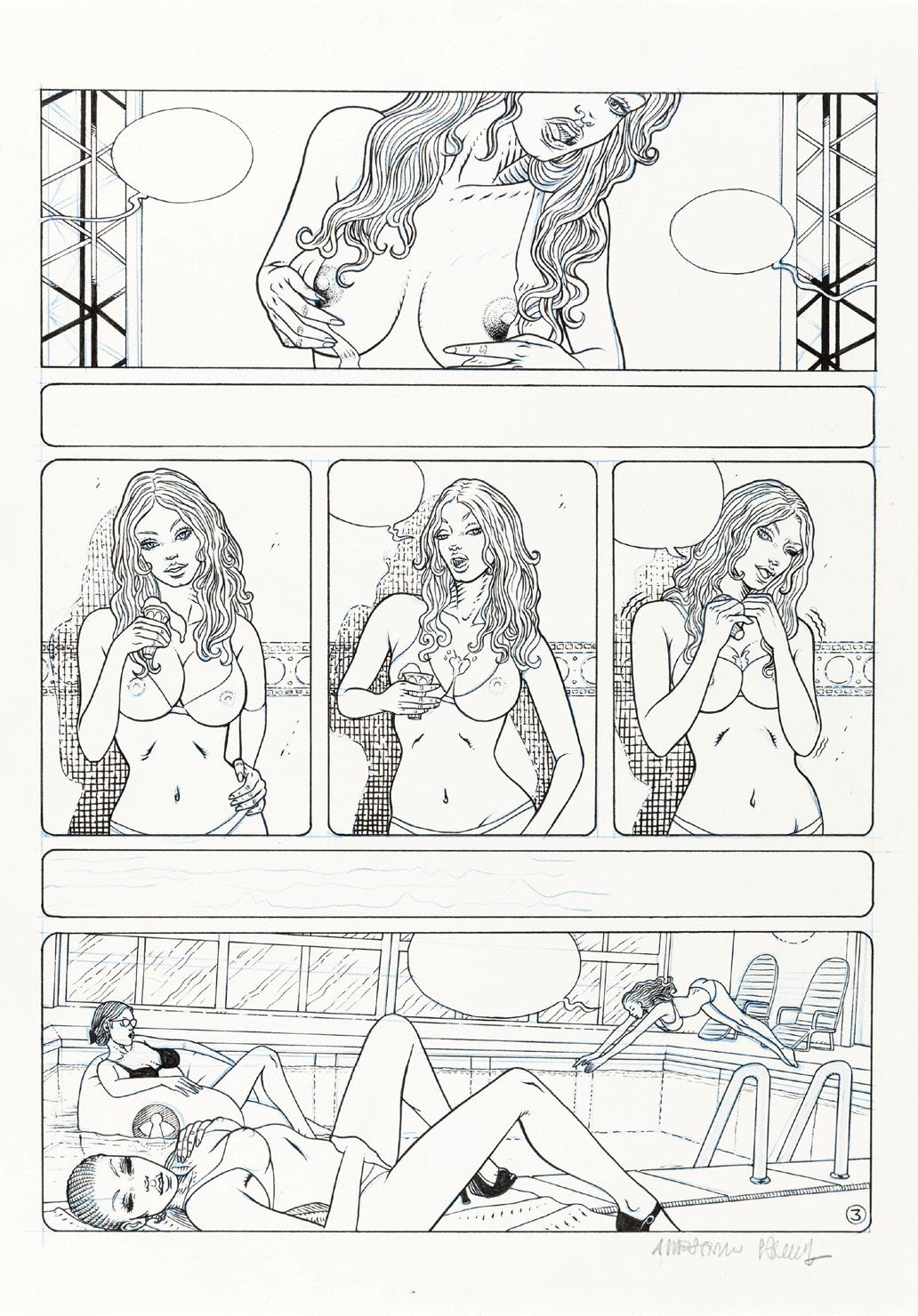 Tavola originale realizzata da Altuna per la pag. 1 della avventura erotica intitolata “En forma”, pubblicata per la prima volta sulle pagine di Playboy negli anni ‘80 e successivamente ristampata nel volume “El Mirón 2” dalle Ediciones de la Urraca nel 1996.