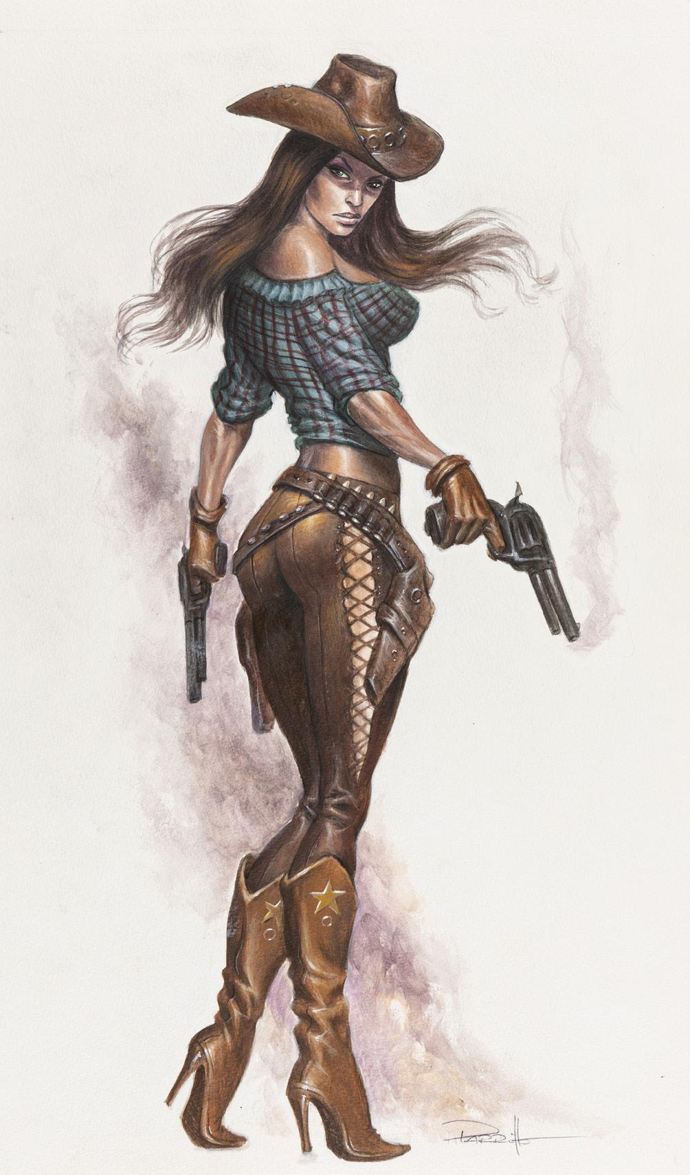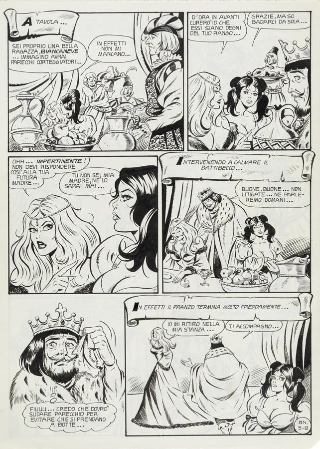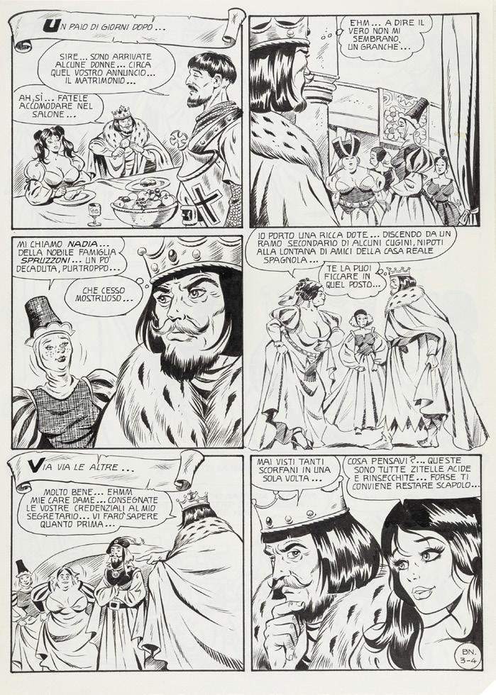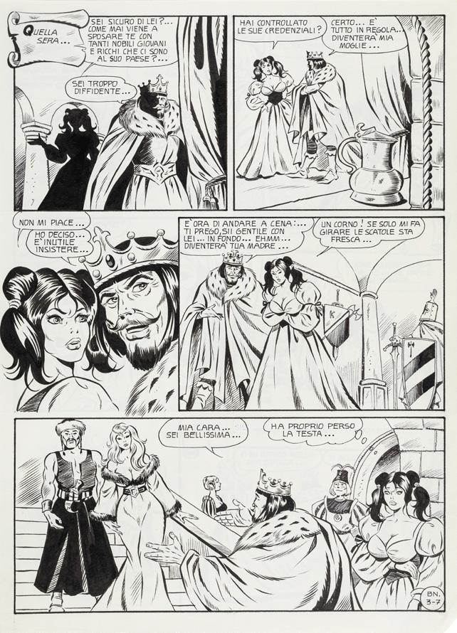 Pencil and ink on thin cardboard. Original comic art made by Baldazzini for “Domina Invaders”, page 2 of this Ginger & Rogers adventure first published in Blue magazine n. 57 in 1995. Signed.