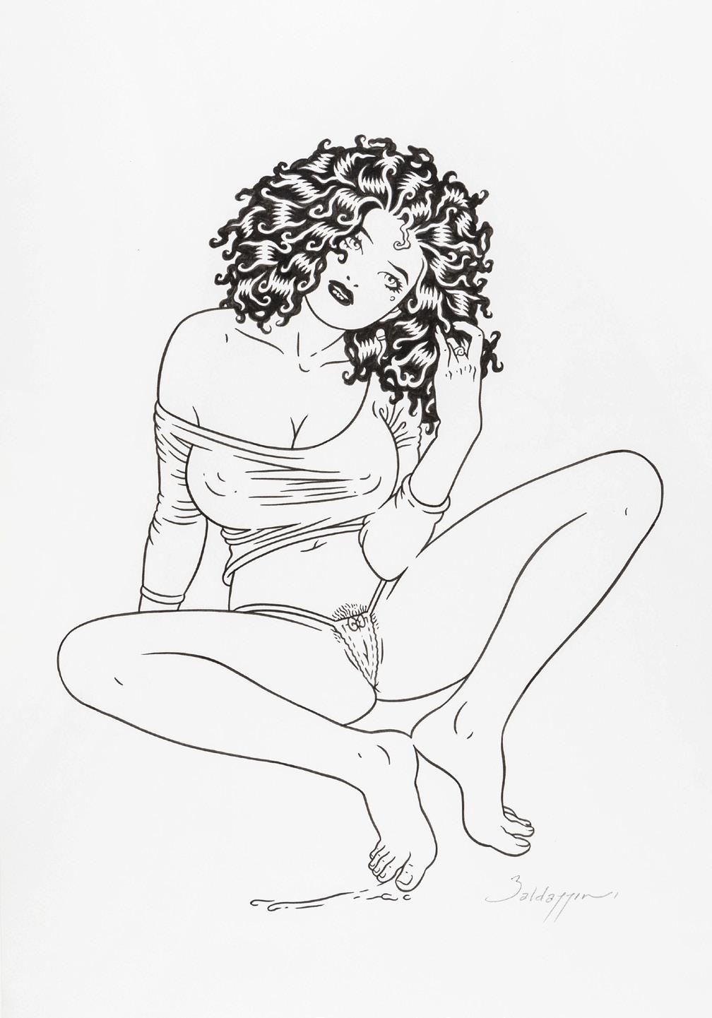 Ink on thin cardboard. Original illustration made by Baldazzini for “Portfolio XXX”, published by Libritalia in 2019. Signed.