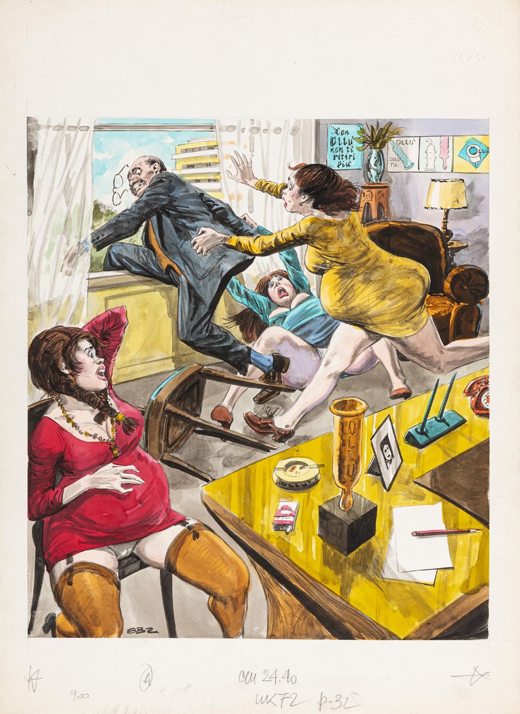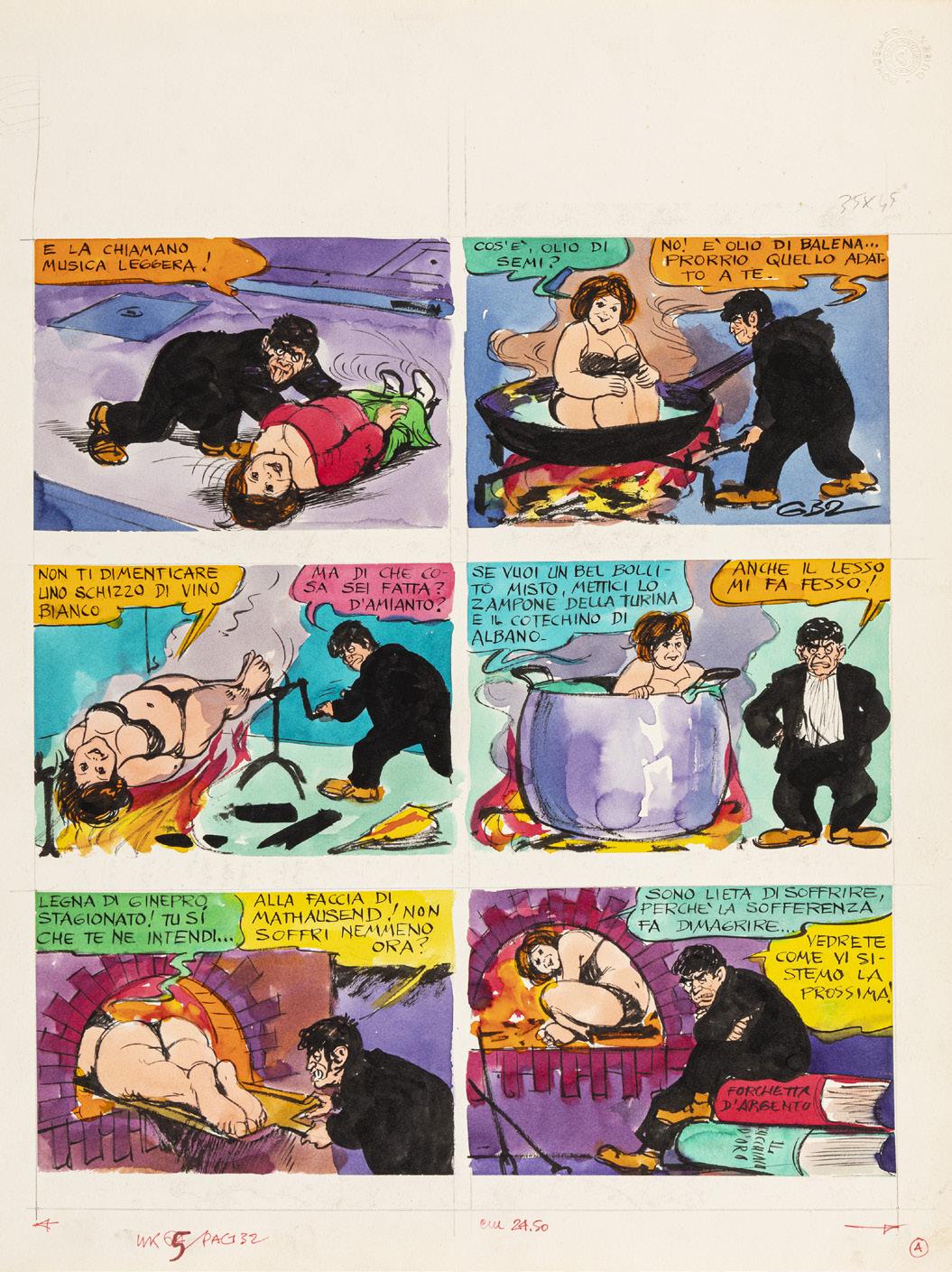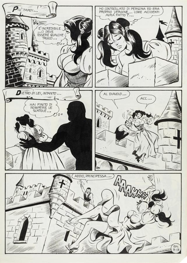 Tavola originale realizzata da Baldazzini per “Beba: Le 110 pompe”, edita a pag. 125 dalla Kappa Edizioni nel 2006. Firmata e titolata.