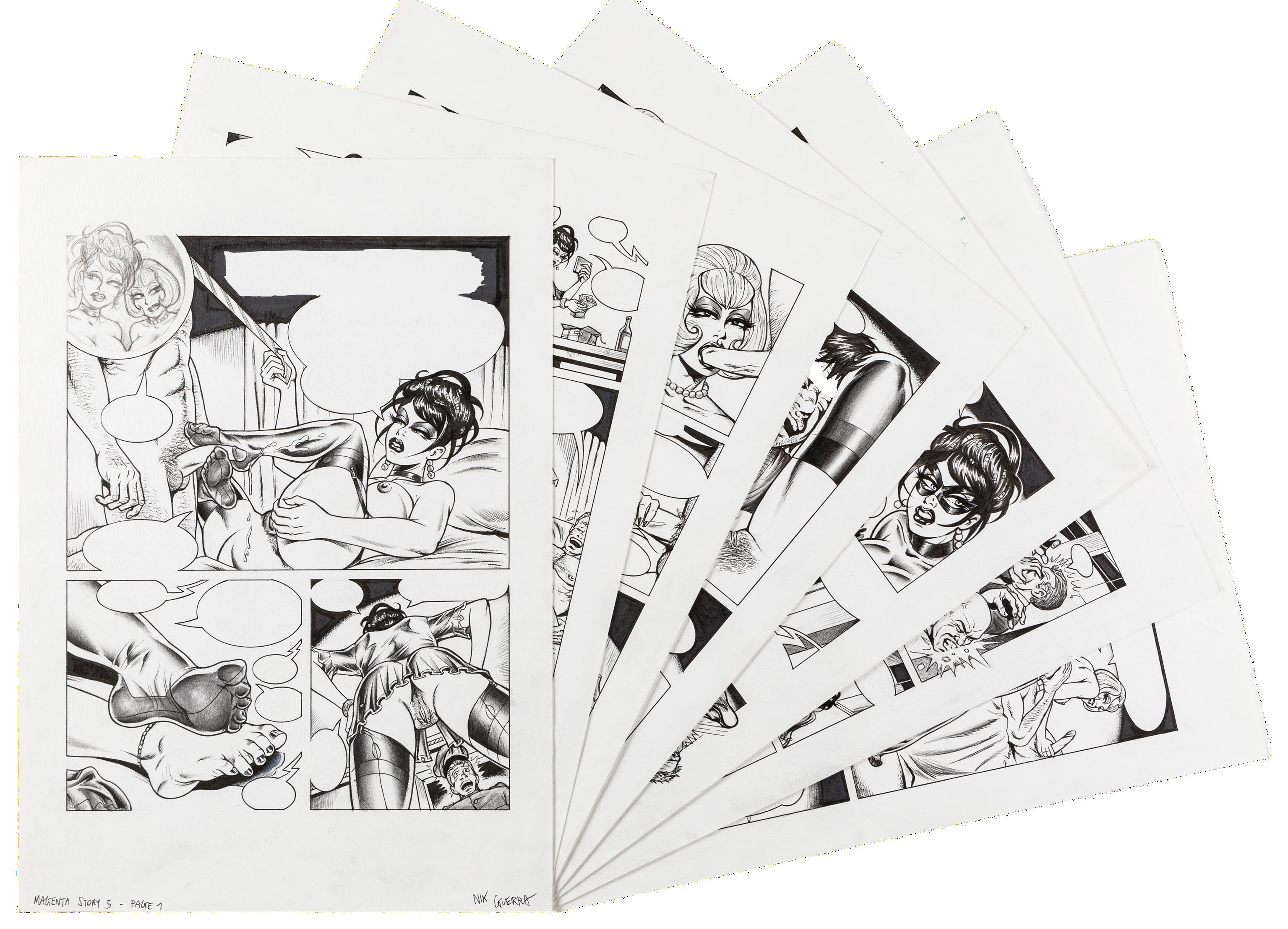 Pencil and ink on thin cardboard. Original comic art made by
