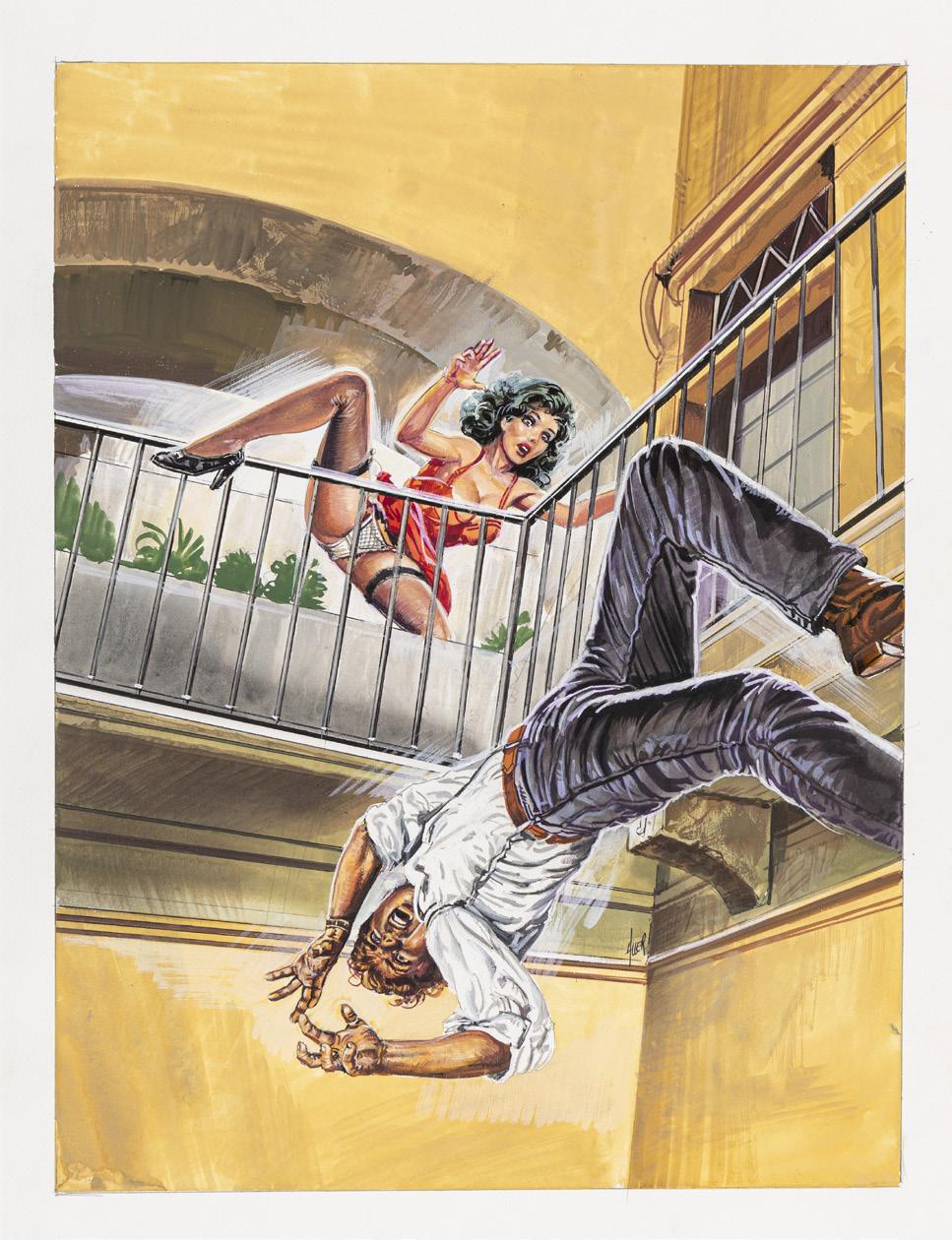 Tempera on cardboard. Original cover made by Aller for “Dongiovanni di provincia”, published in A Porte Chiuse n. 11 by Ediperiodici in 1993. Signed.