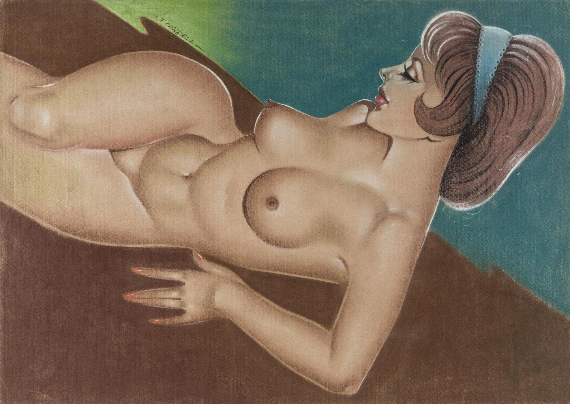 Nudo, anni 80 tempera e pastelli su cartoncino, 34,5 x 50 cm
