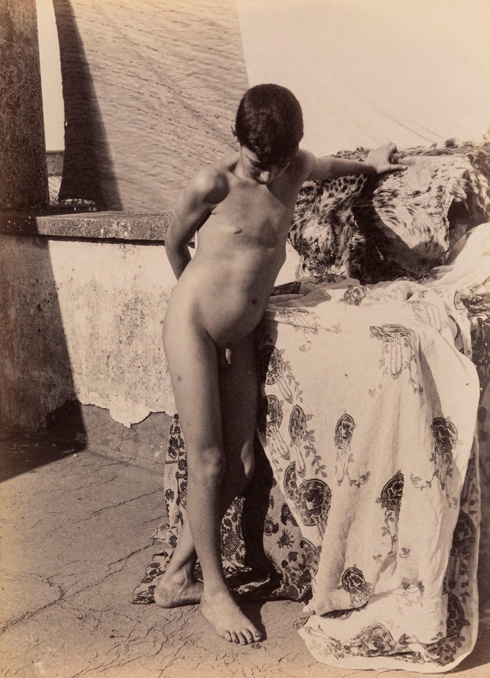 The nude photography, from its very inception, dating back to the daguerreotype era, inevitably draws on the parameters of classical painting. The pursuit of plasticity can thus be found in artists whose works reflect the profound influence of a culture that looks directly to Greco-Roman statuary. Photographers such as Wilhelm von Plüschow and Wilhelm von Gloeden stand out in the panorama of their time for the quality of their images and their ability to place them within meticulously reconstructed outdoor settings, while most other photographers, for understandable reasons, worked primarily in the studio. In this context, a specific subgenre, that of erotic photography, can be analysed not only from an aesthetic standpoint but also, and perhaps above all, from an anthropological one.