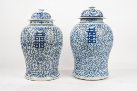 Duevasiinporcellanabiancaeblu,CinasecoloXIX-XX lievidifetti