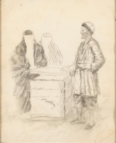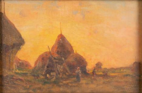 Contadini in sosta presso un casolare oliosutela cm63,5x66