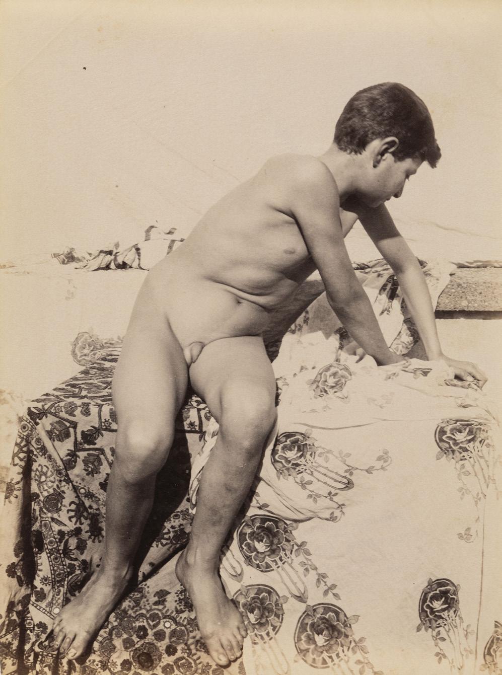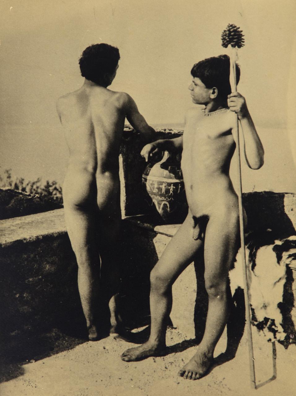 Tutto cambia e non poco quando agli autori delle immagini precedenti – rimasti anonimi per scelta o perché avevano scattato come occasionali documentaristi non professionali – si sostituiscono fotografi dotati di un pregevole intreccio fra sapienza tecnica e cultura raffinata. È il caso di Giovanni Crupi (lotto 7), Gaetano D’Agata (lotto 12) e dei nobili tedeschi Wilhelm von Gloeden (lotti 8-11) e Wilhelm von Pluchow (lotti 14-17), come del suo assistente il napoletano Vincenzo Galdi (lotto 13), che nei loro studi di Taormina dove si erano stabiliti, realizzavano ritratti e figure degli abitanti locali da loro trasformati in sensuali modelli capaci di incarnare l’antica maestosità della Magna Grecia. Non era reale, piuttosto evocava quella dell’immaginario romantico ma poco in fin dei conti contava per chi apprezzava le loro capacità compositive funzionali a esaltare la bellezza dei corpi maschili.