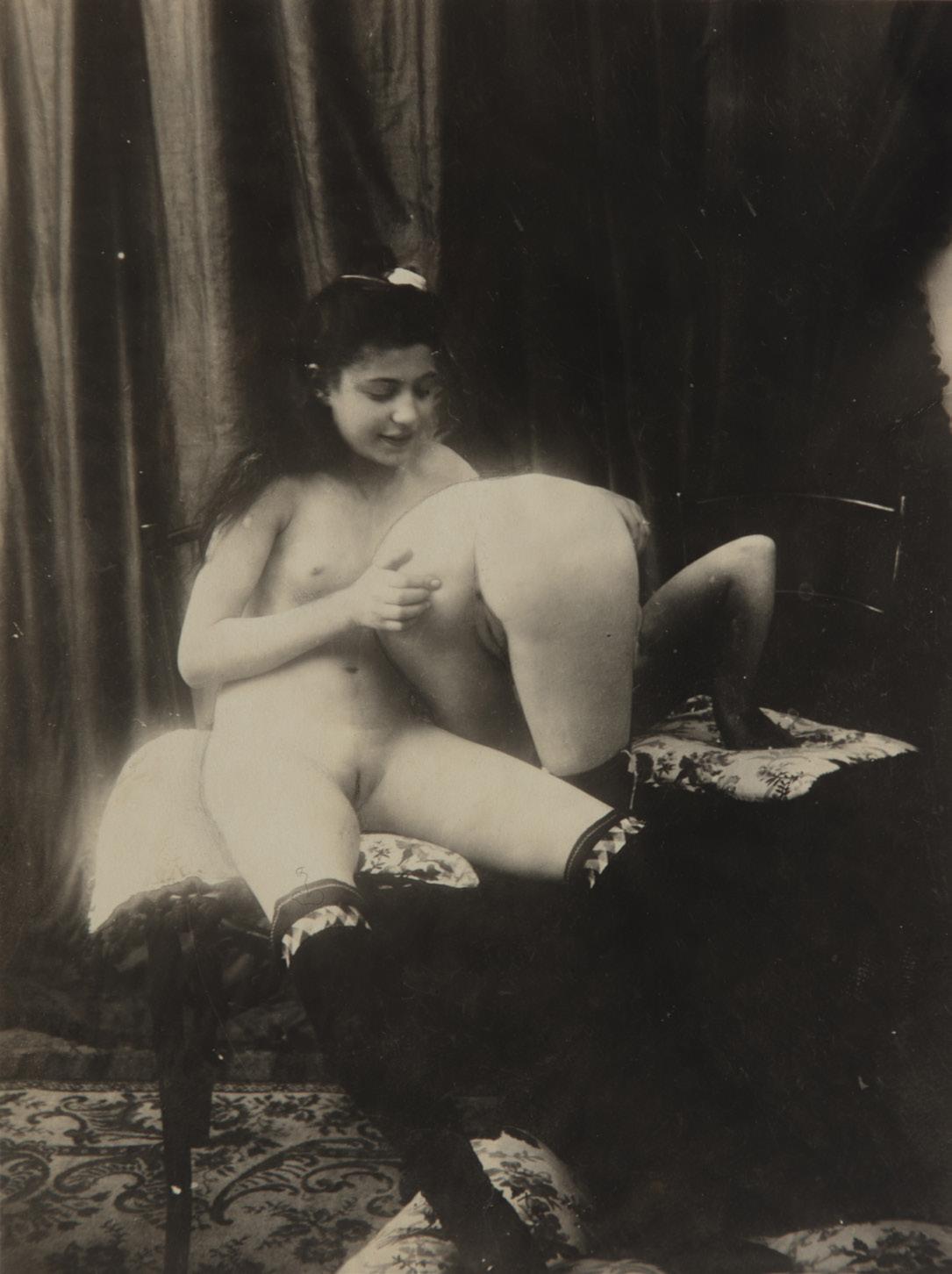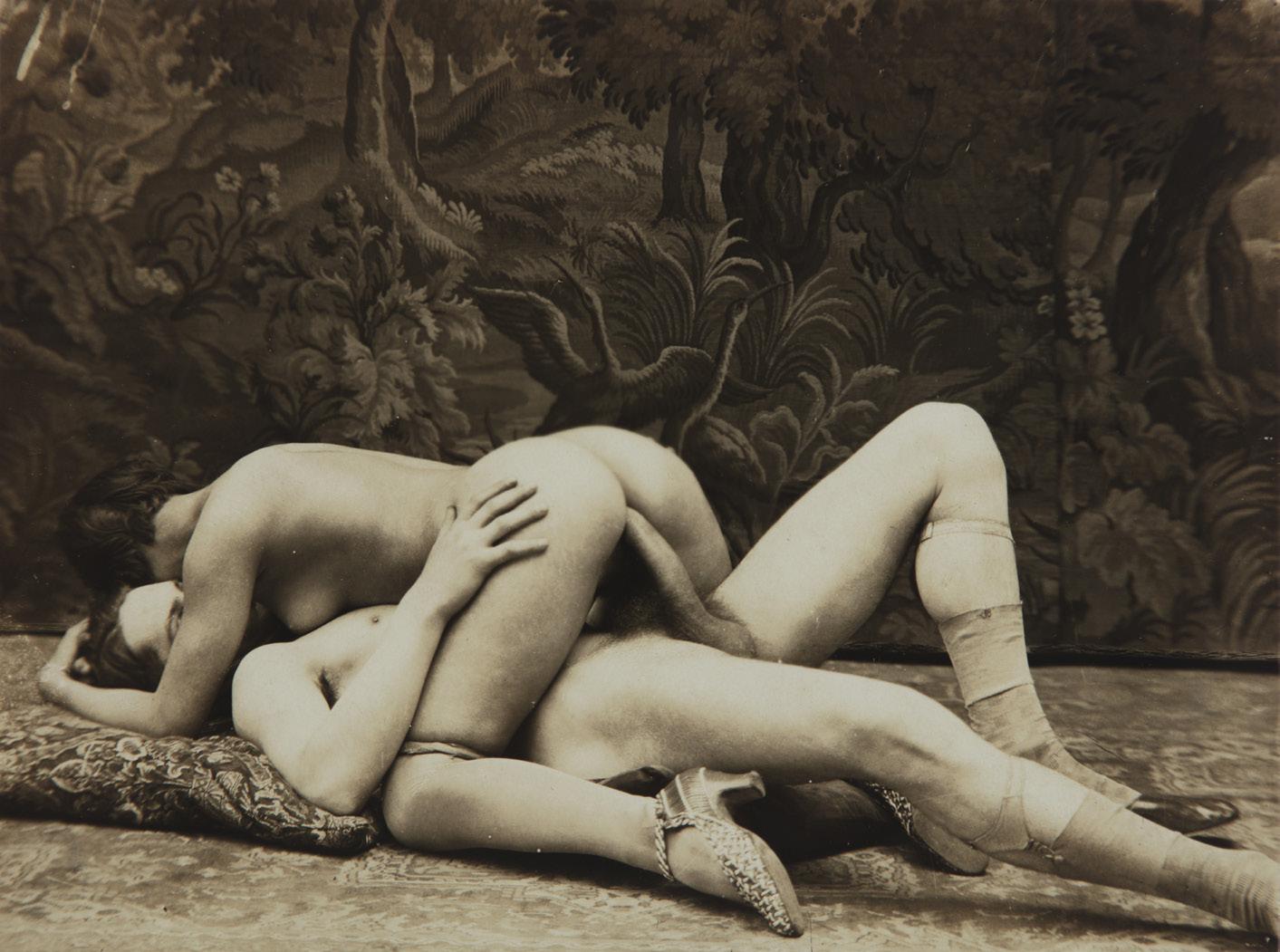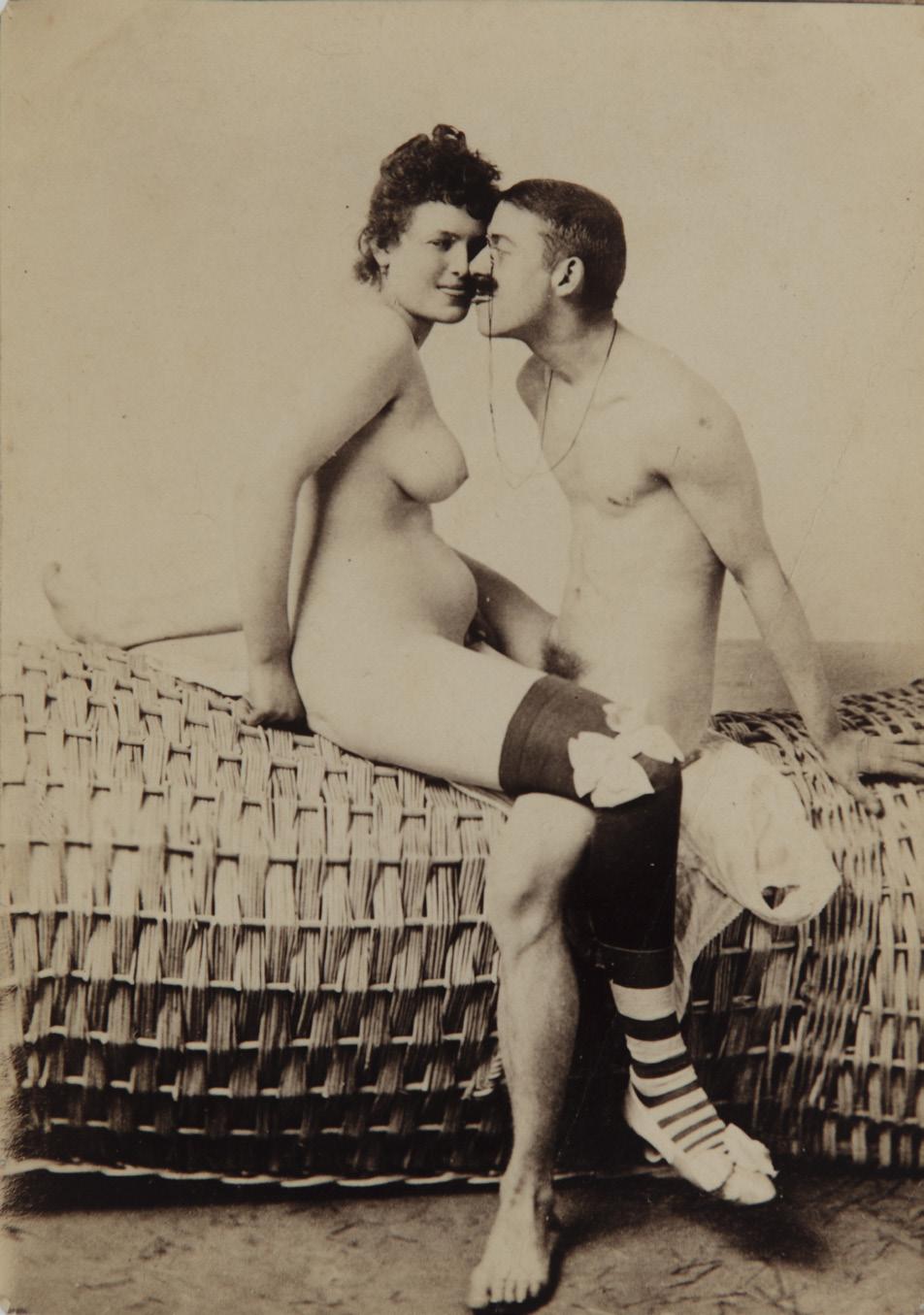 Quando è nata, la fotografia, si è sentita profondamente ancorata esteticamente alla pittura che pure la osservava con malcelato sussiego. Inevitabilmente, accanto ai temi del ritratto, del paesaggio, dell’architettura, quello del nudo è entrato a pieno titolo fra i soggetti prediletti anche dai fotografi. Da subito è emerso però un nuovo aspetto: in virtù del preciso realismo che la caratterizzava la fotografia poteva certamente vantare di poter realizzare immagini artistiche – qualsiasi cosa questo significasse e in genere indicava aderire al gusto plastico della classicità di statue e dipinti antichi –come anche spingersi con disinvoltura nel mondo dell’intimità. È con l’avvento di macchine più maneggevoli e di materiali sensibili migliorati che la fotografia entra a pieno diritto nelle alcove per ritagliarsi un piccolo ma importante posto in una società che del perbenismo si faceva scudo ma nel privato si concedeva non poche divagazioni. Così ad inizio Novecento siamo fronte a un panorama inaspettatamente variegato con fotografie definite di volta in volta come esplicite, erotiche o pornografiche. Si va dal nudo disponibile ma esposto con malcelato pudore (lotto 1), di spalle e nascondendo il volto della ragazza, al focoso accoppiamento di un lui e una lei che, chissà se per eccesso di slancio o per scelta studiata, ancora indossano calze e scarpe. Non si nascondono molto le protagoniste di quelle che potremmo definire variazioni sul tema: amore lesbico (lotto 4), accoppiamenti multipli e un gioco a tre che nella sua staticità lascia il dubbio che il protagonista maschile sia un falso, come il paesaggio che fa da sfondo, per alludere a un appartarsi in campagna in realtà ricostruito in studio (lotto 6). Merita, infine, una qualche attenzione l’immagine di una coppia che si fronteggia seduta su un divano di vimini: lei indossa solo lunghe calze elaborate e scarpette vezzose, lui è completamente nudo ma non rinuncia al monocolo. Siamo di fronte a un raro e divertente caso di ironia applicata a un campo dove, invece della gioia del sesso, emerge una severa seriosità. D’altra parte, nella maggior parte dei casi le donne coinvolte erano professioniste e si sa che, quando si lavora non si scherza...