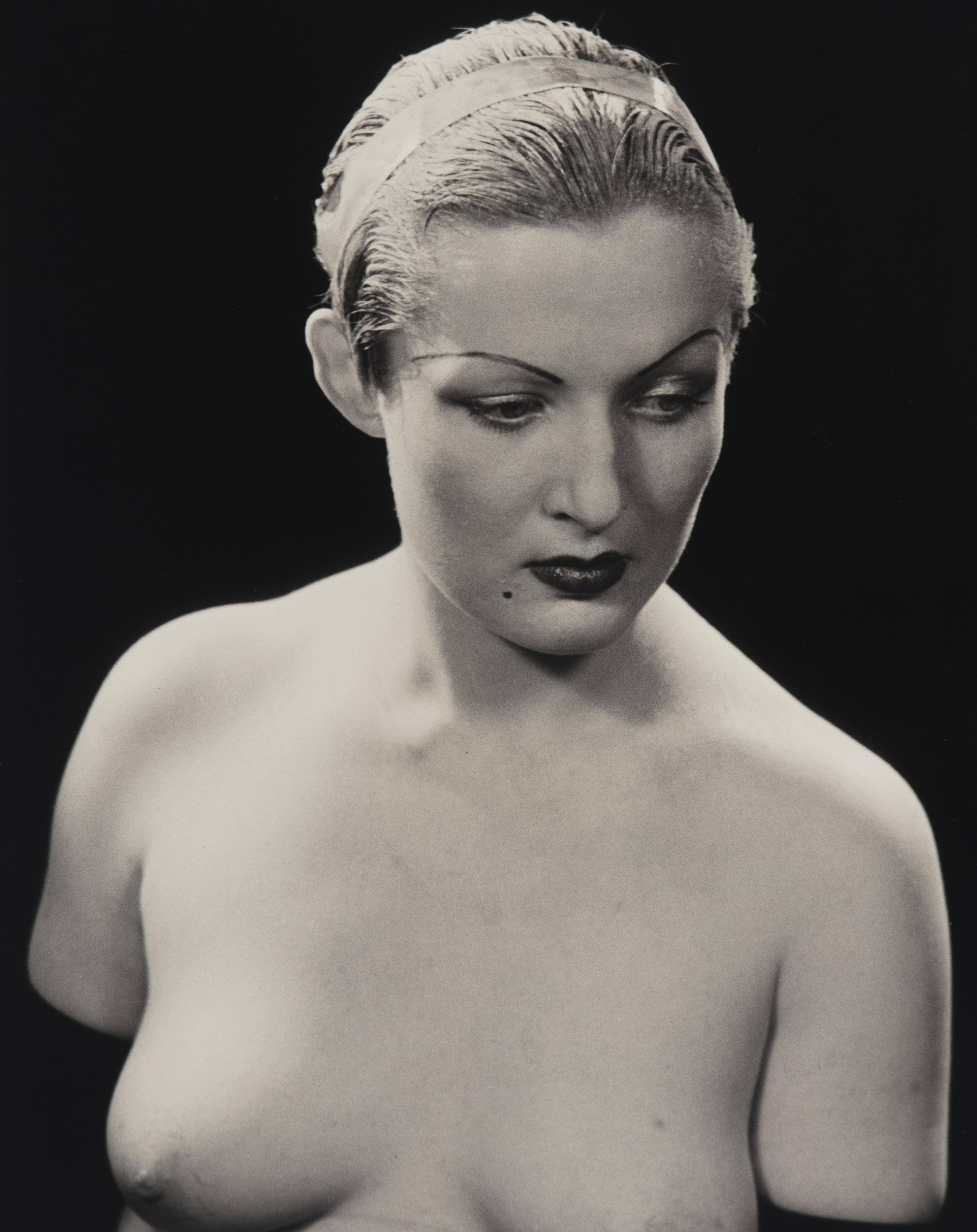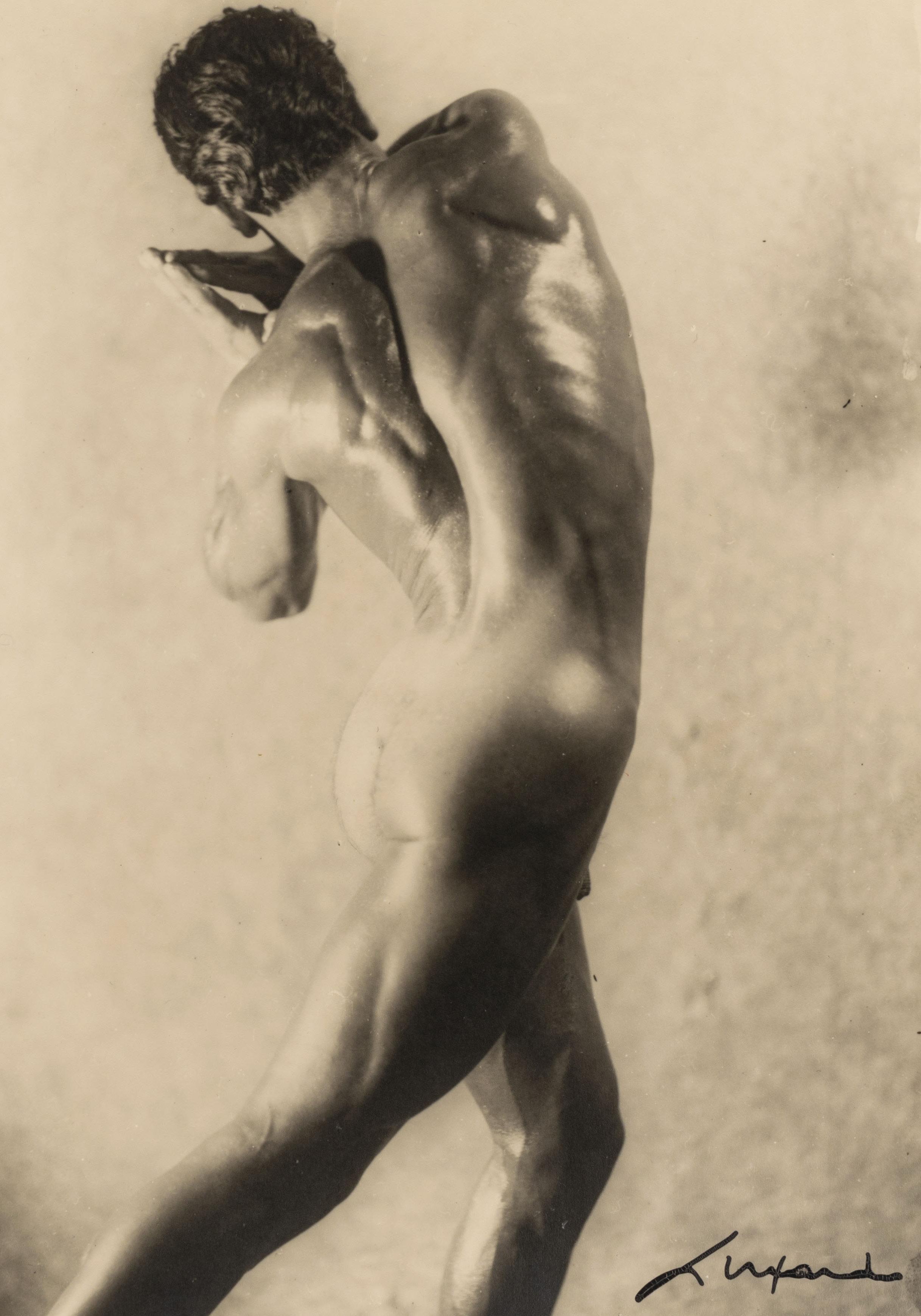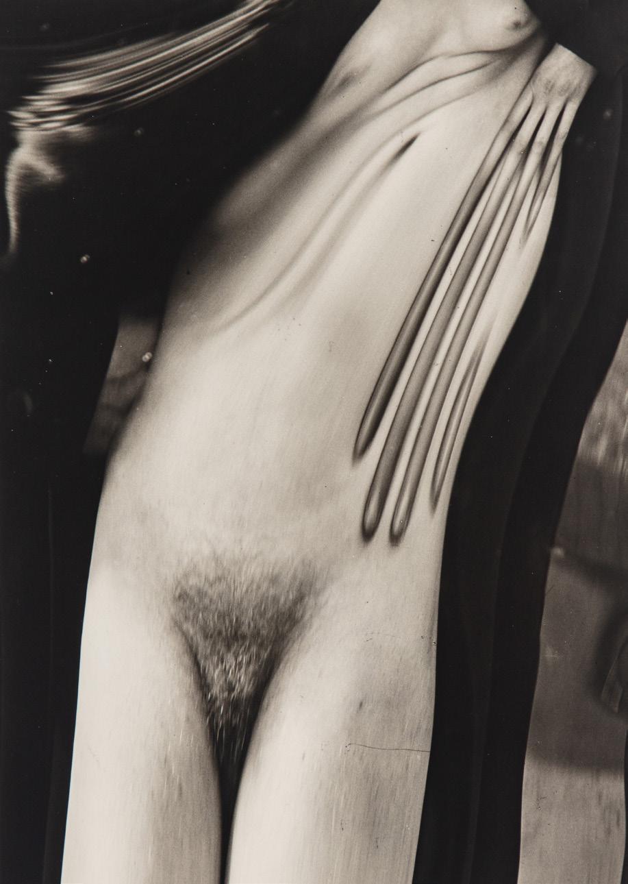 The 1920s and 1930s in Italy and beyond were characterized by the aesthetics of Pictorialism, of which we have a fine example here in the portrait Nicolò Pitschen took of his wife, Yvette Gaillard (lot 22). Another Pictorialist was the Turin-based Italo Bertoglio, a prominent figure and president of the Società Fotografica Subalpina before becoming, after World War II, the first president of the Federazione Italiana delle Associazioni Fotografiche. In the 1930s, he adhered to the Futurist movement, as evidenced by the consciously studied use of shadows in the photograph presented here (lot 23). Also active during the 1930s was Elio Luxardo, a highly successful portraitist, a complex figure perhaps not sufficiently recognized for his groundbreaking exploration of the male and female nude—both daring and profoundly anti-rhetorical (lots 17-21).