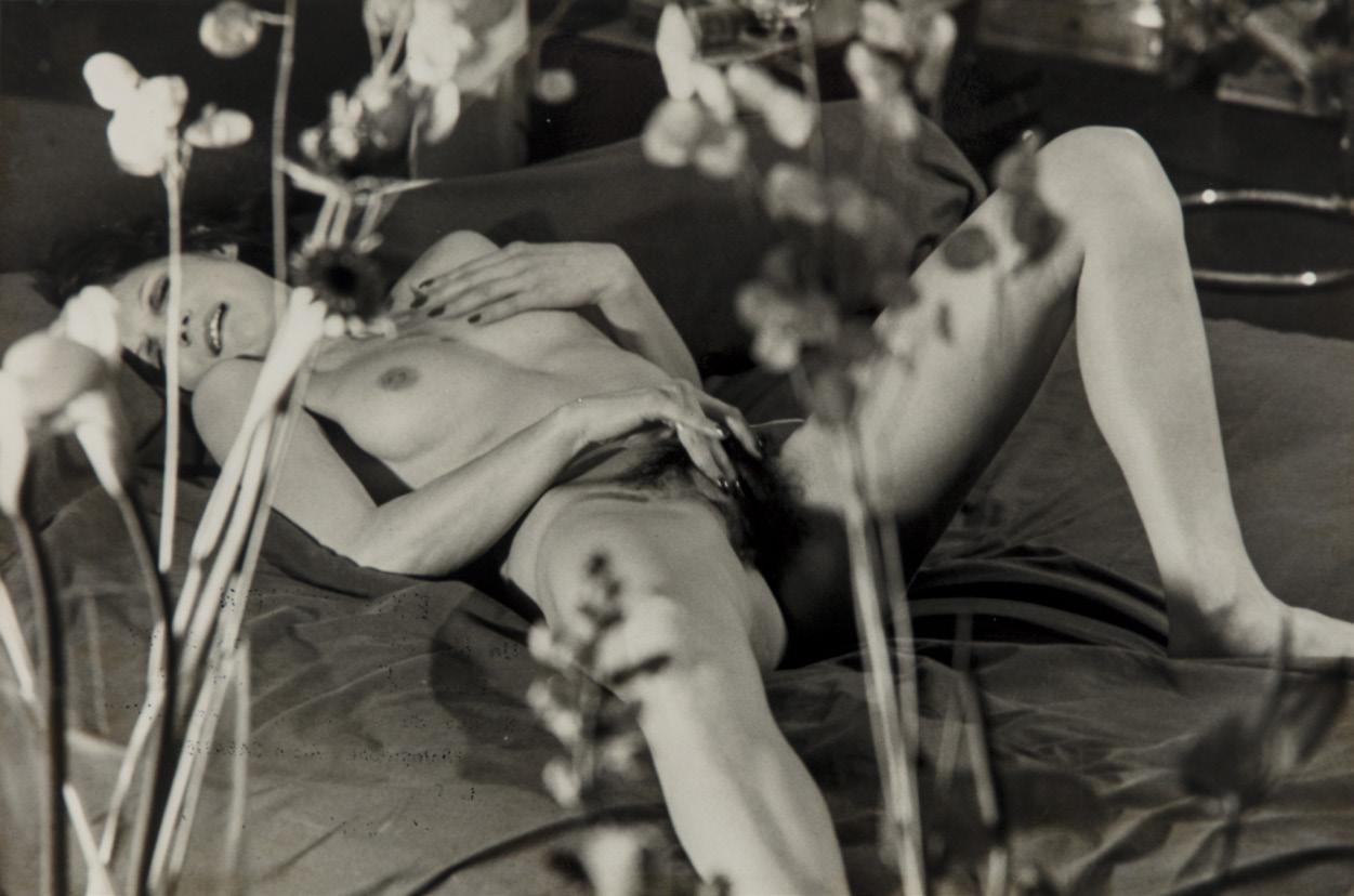 When photography was born, it felt deeply anchored aesthetically to painting, which, in turn, observed it with barely concealed condescension. Inevitably, alongside the themes of portraiture, landscapes, and architecture, the nude became a fully legitimate subject for photographers as well. However, a new aspect immediately emerged: due to its precise realism, photography could certainly claim the ability to create artistic images— which generally implied adhering to the plastic aesthetic of classical statues and ancient paintings—while also effortlessly venturing into the realm of intimacy. With the advent of more manageable cameras and improved sensitive materials, photography fully entered the boudoir, carving out a small yet significant role in a society that used morality as a shield but indulged in numerous private diversions. Thus, at the beginning of the twentieth century, we are faced with an unexpectedly diverse panorama of photographs labeled at times as explicit, erotic, or pornographic. These range from the available yet modestly exposed nude (lot 1), with the model turned away and her face hidden, to the passionate coupling of a man and woman who, whether out of excessive fervor or deliberate choice, still wear stockings and shoes. The protagonists of what could be called variations on the theme— lesbian love (lot 4), multiple couplings, and a ménage à trois—do not hide much. The latter, in its stillness, leaves one wondering whether the male figure is real or merely a prop, much like the background landscape, which was likely recreated in a studio (lot 6). Lastly, attention is drawn to an image of a couple seated opposite each other on a wicker sofa: she wears only elaborate stockings and dainty shoes, while he is completely nude but does not forgo his monocle. Here, we witness a rare and amusing instance of irony applied to a domain where, instead of the joy of sex, a severe solemnity often prevails. After all, in most cases, the women involved were professionals, and, as we know, work is no laughing matter (lot 2).