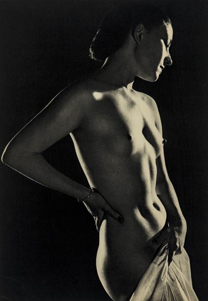 Gli anni Venti e Trenta in Italia e non solo furono caratterizzati dall’estetica del Pittorialismo di cui qui, nella ripresa che Nicolò Pitschen fece alla moglie Yvette Gaillard, abbiamo un bell’esempio (lotto 22). Anche il torinese Italo Bertoglio, che da dilettante fu figura di spicco e presidente della Società Fotografica Subalpina prima di diventare nel dopoguerra il primo presidente della Federazione Italiana delle Associazioni Fotografiche, proveniva dal Pittorialismo. Aderì al movimento futurista proprio negli anni Trenta a cui si riferisce la fotografia che presentiamo, come dimostra l’uso consapevolmente studiato delle ombre (lotto 23). Sempre negli anni Trenta si muove con grande successo come ritrattista Elio Luxardo, figura complessa e forse non abbastanza valorizzata nella sua ricerca modernissima del nudo femminile e maschile, insieme audace e profondamente antiretorica (lotti 17-21).