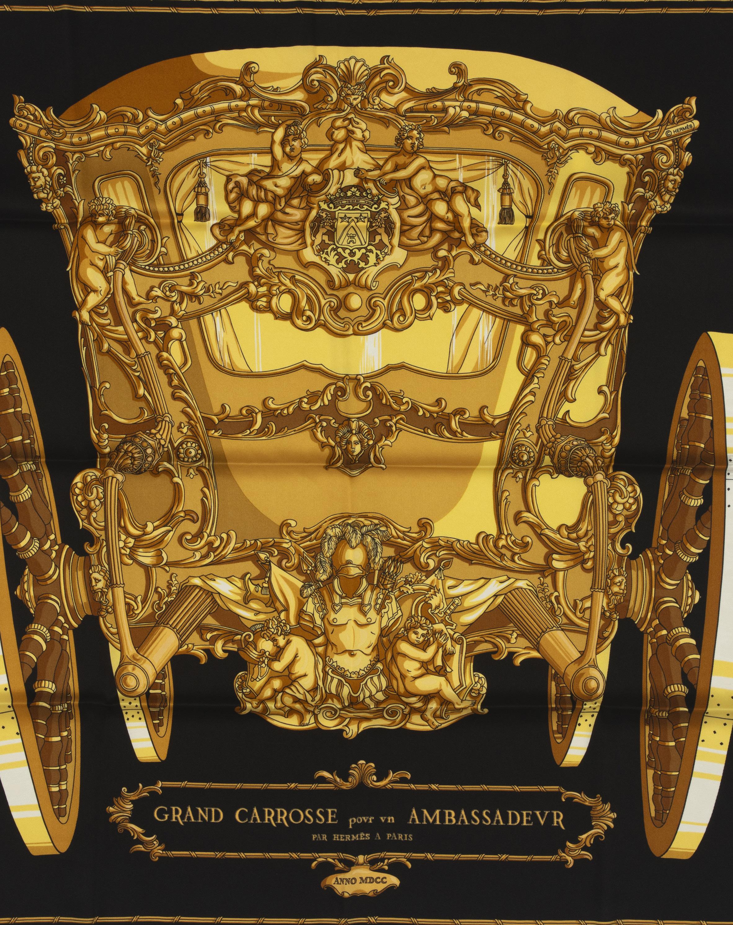 PETIT GAVROCHE BIBLIOTHÈQUE in seta su fondo color marrone, Hugo Grygkar, con scatola, 2010