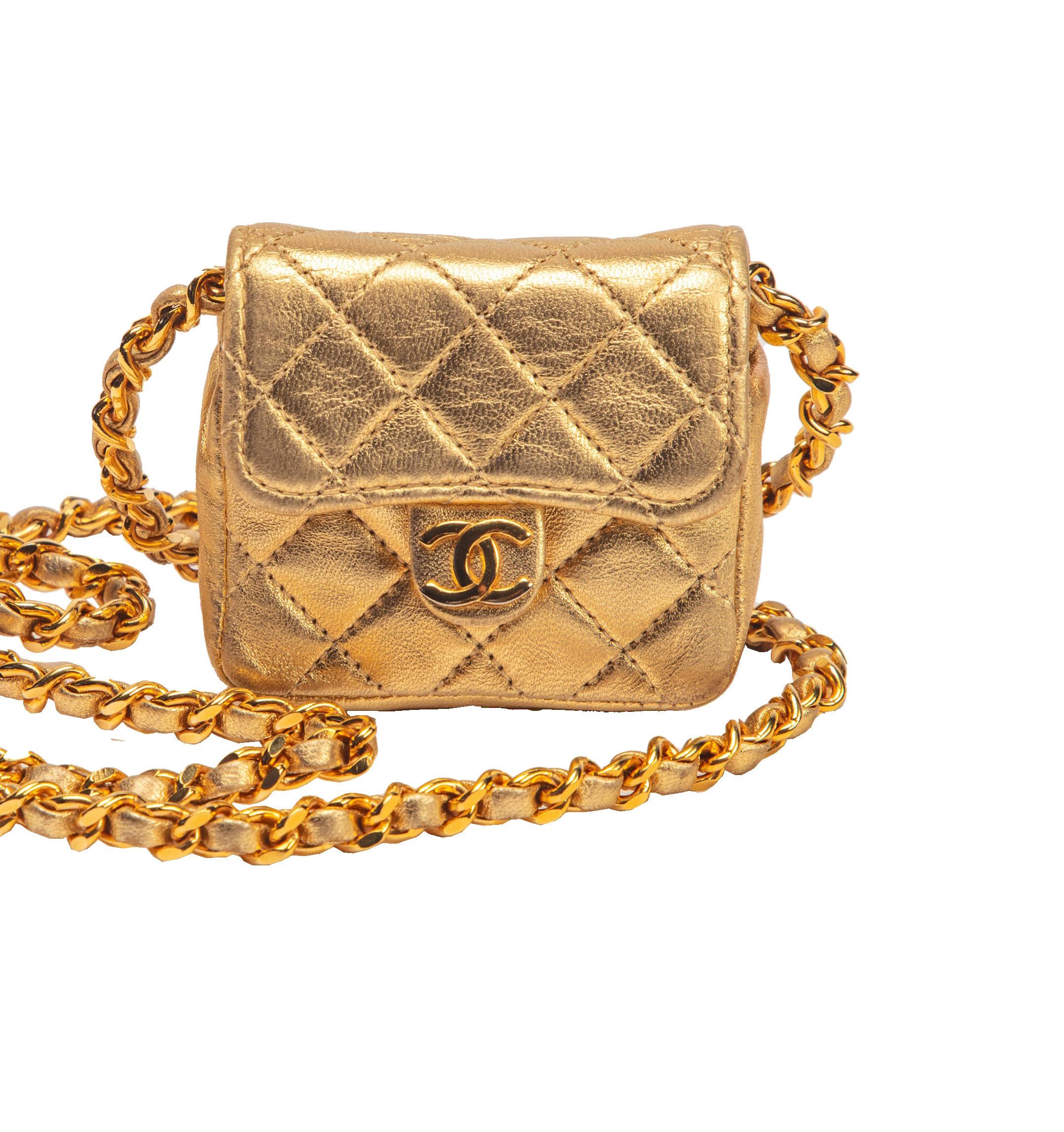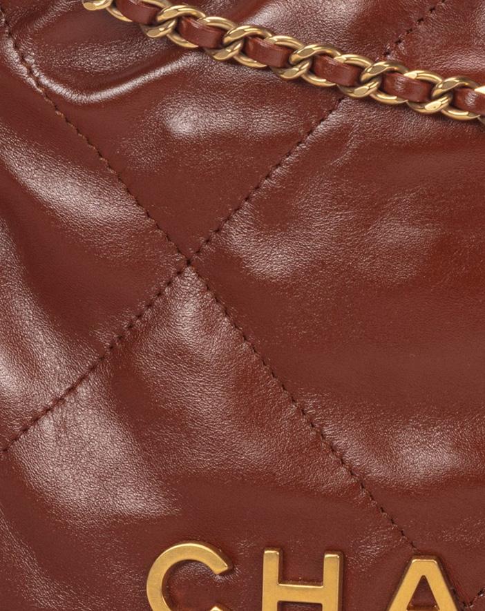 Hazelnut matelassé leather 22 mini bag , chain shoulder strap, satin gold metal details, cm 17, with dustbag, 2024