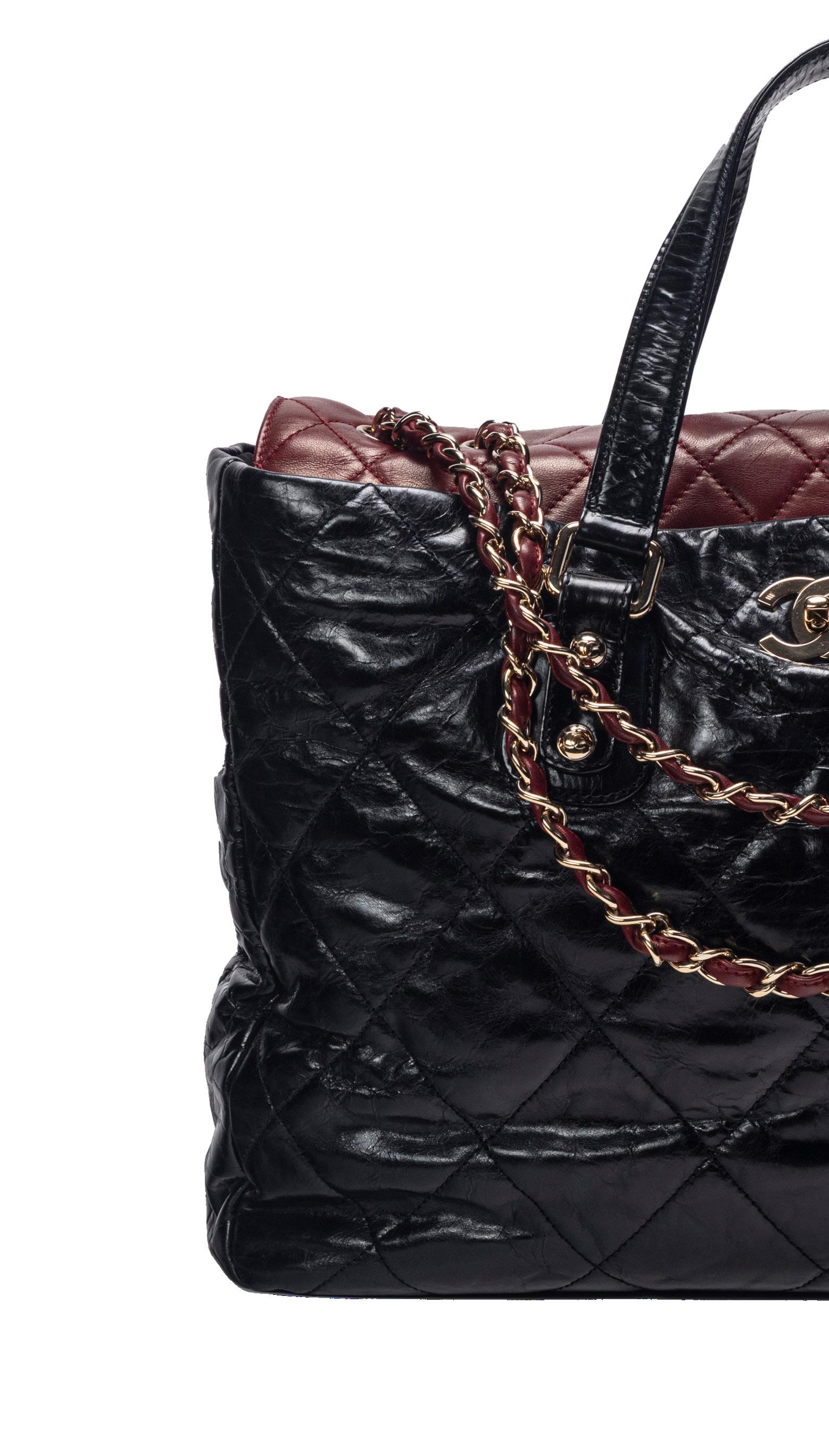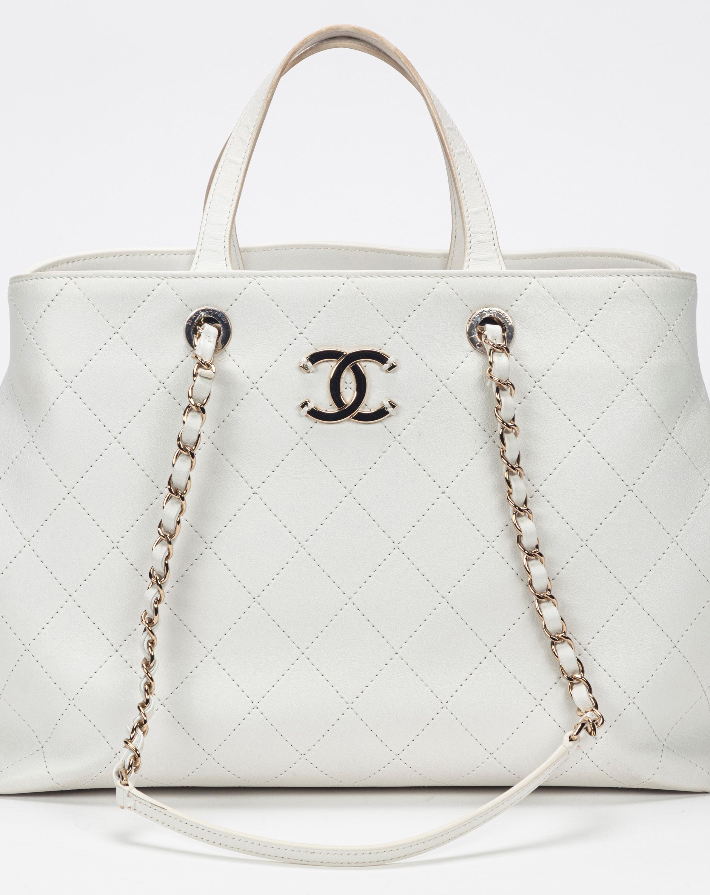 BORSA IN-THE-MIX in pelle matelassé color beige e nero, doppia tracolla a catena staccabile, dettagli in metallo dorato, cm 36 (lievissimi segni d’uso), 2012
