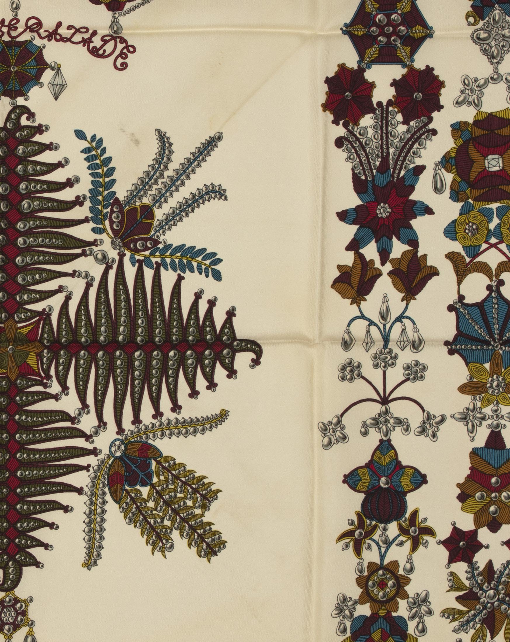 Silk twill scarf designed by Annie Faivre (signs of use), 1983
