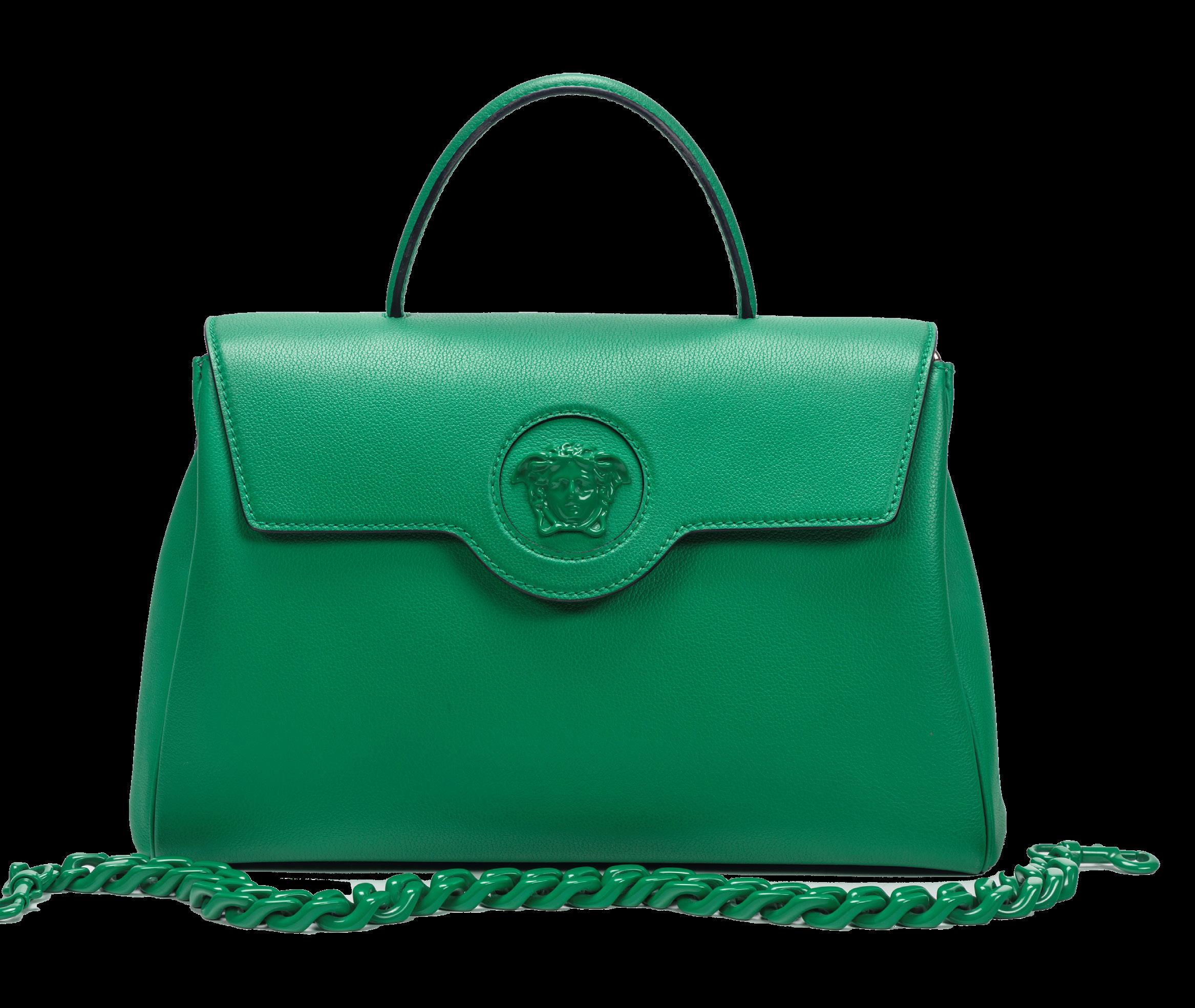 BORSA in pelle caviar matelassé color verde salvia, tracolla a catena, dettagli in metallo dorato e smalto, cm 24, con sacchetto, 2024