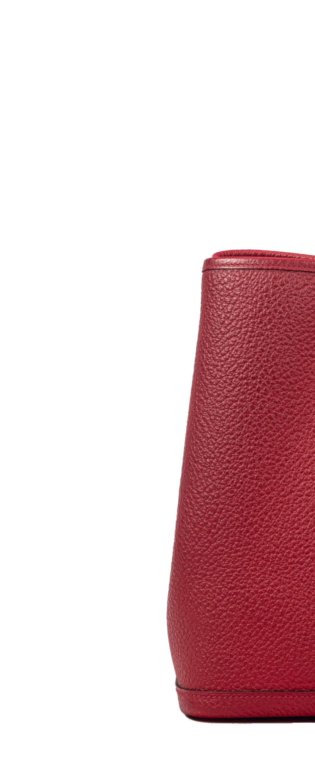 Red leather Bowling bag, double chain shoulder, metal details, cm 33, with dustbag
