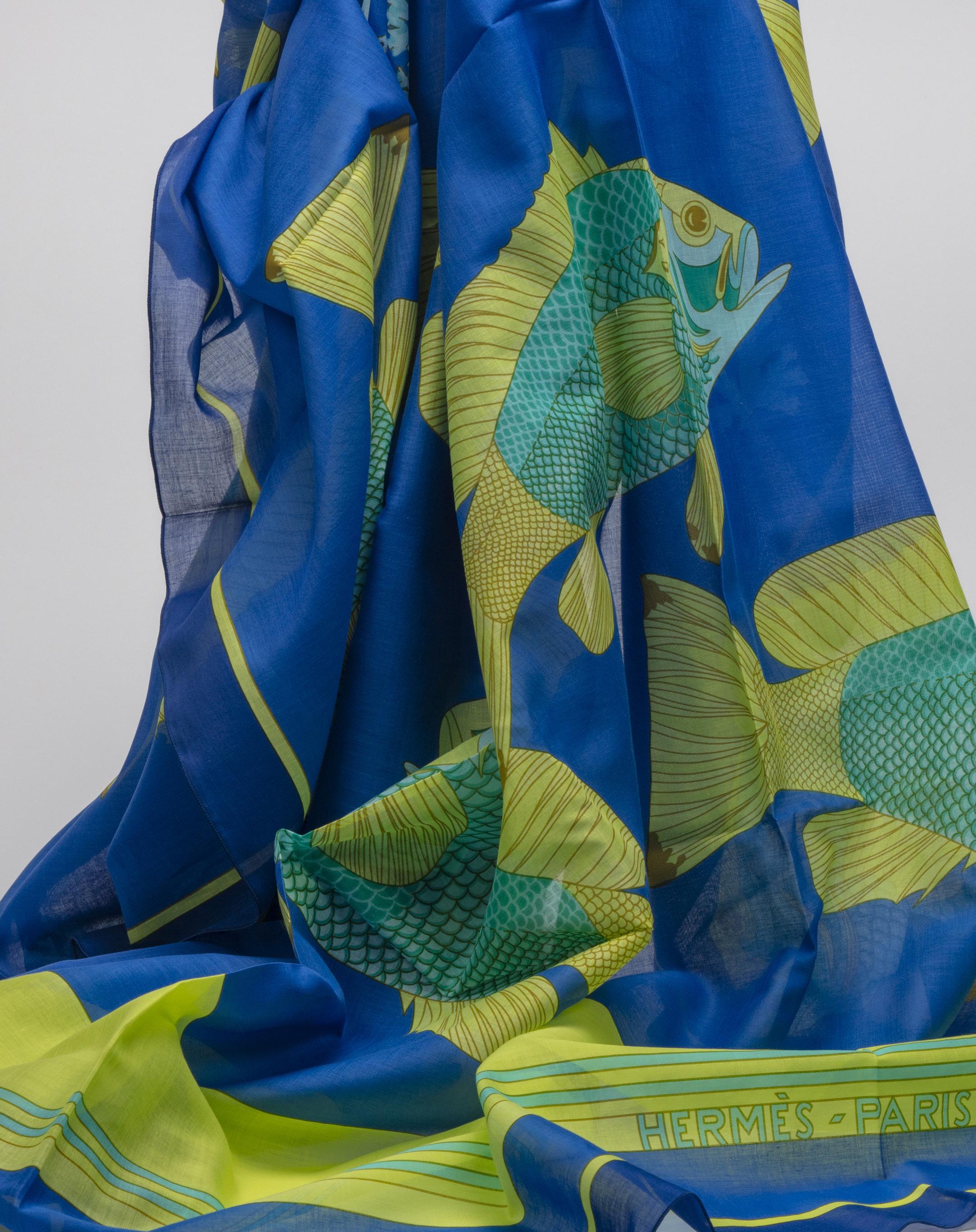 Silk twill scarf designed by Robert Dallet, with box, 2000