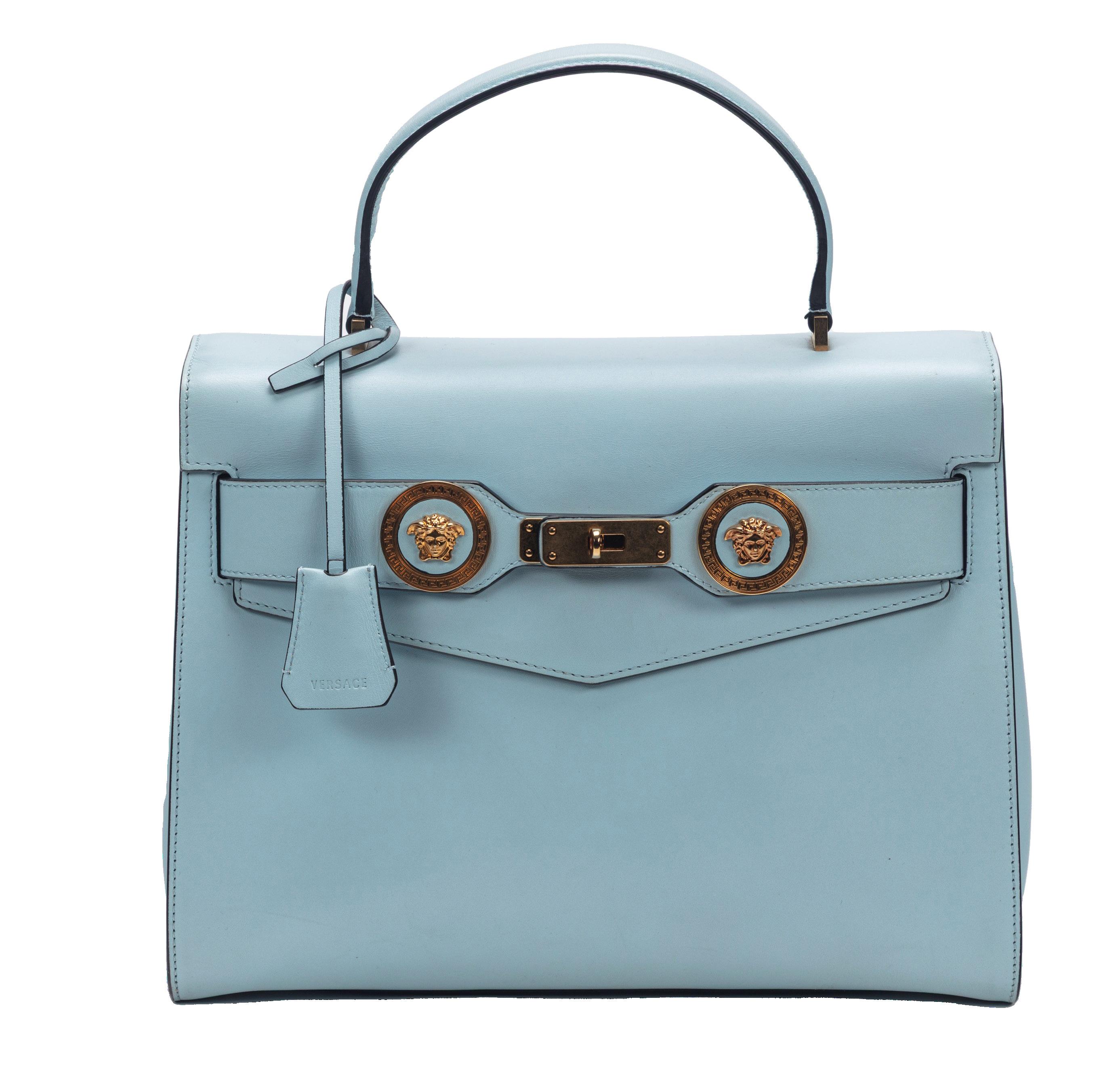 Bleu celeste and bleu Mykonos epsom leather Kelly Retourne Candy bag, palladium hardware, detachable shoulder strap, cm 35, with dustbag (very slight signs of use), 2011