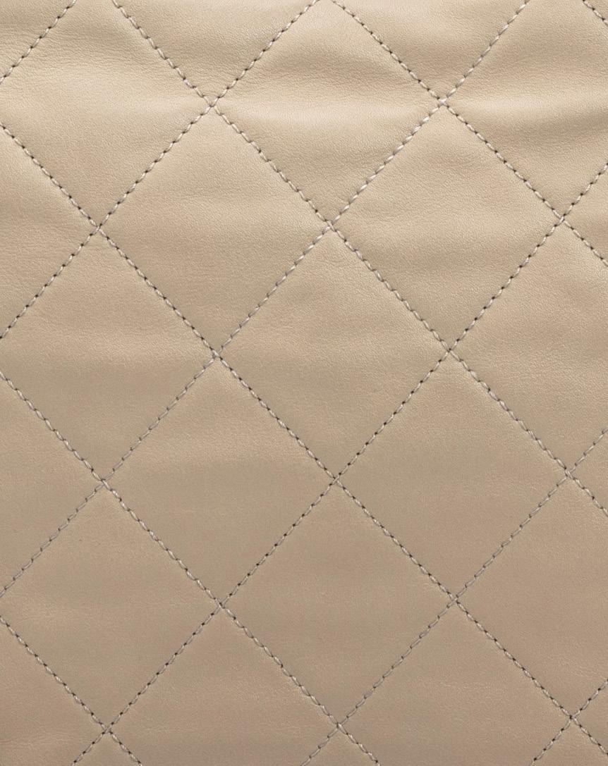 BORSA in pelle matelassé color caffelatte, doppia tracolla a catena, dettagli in metallo, cm 38, con sacchetto, 2009