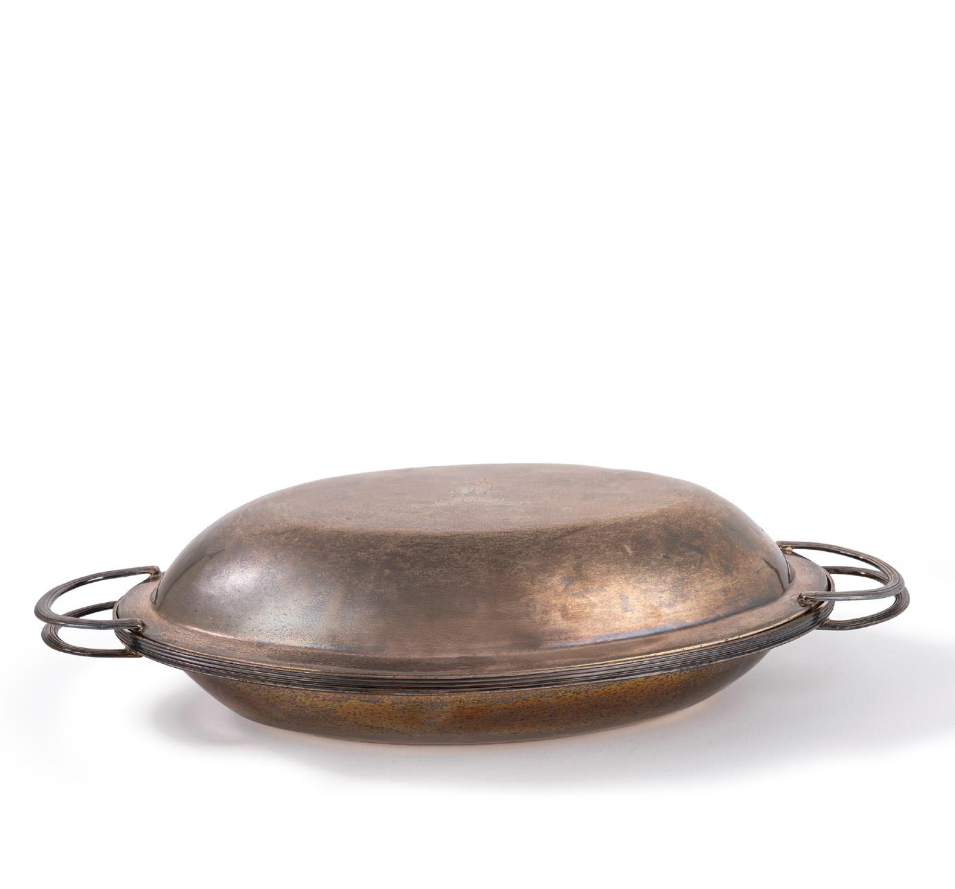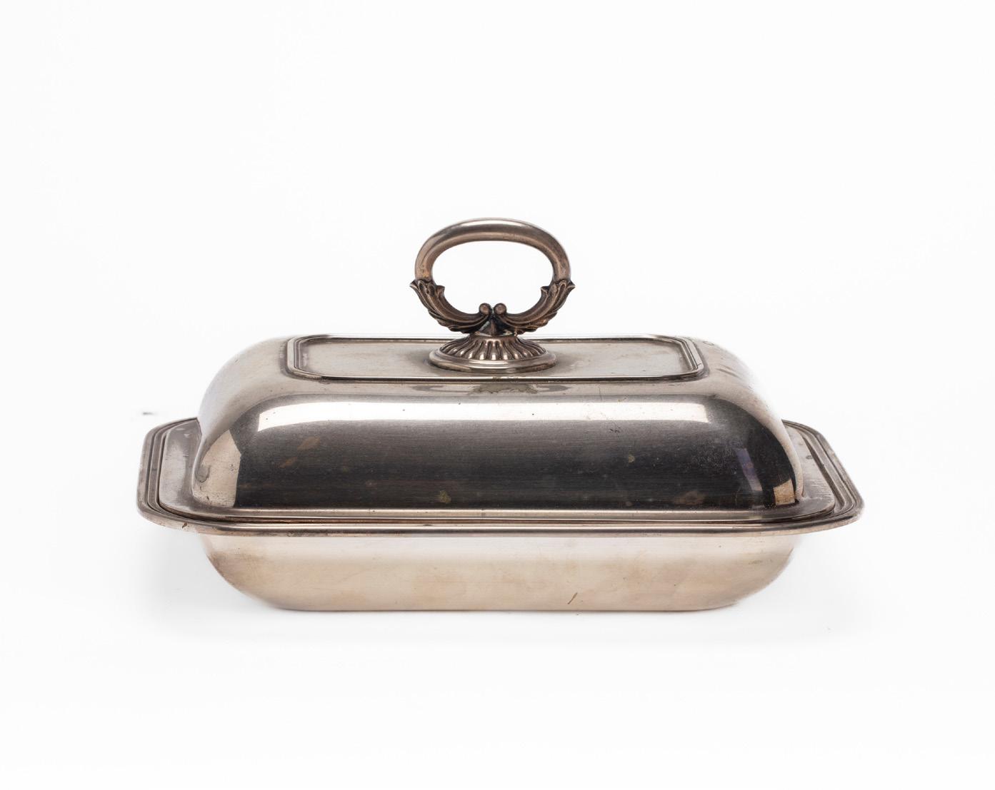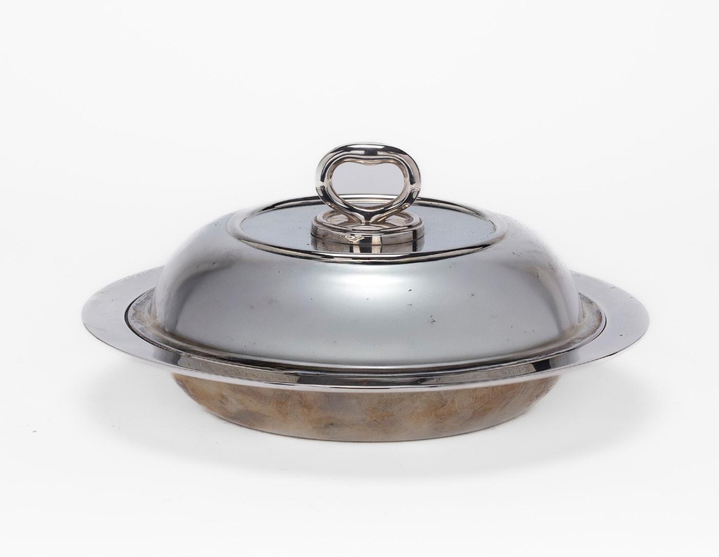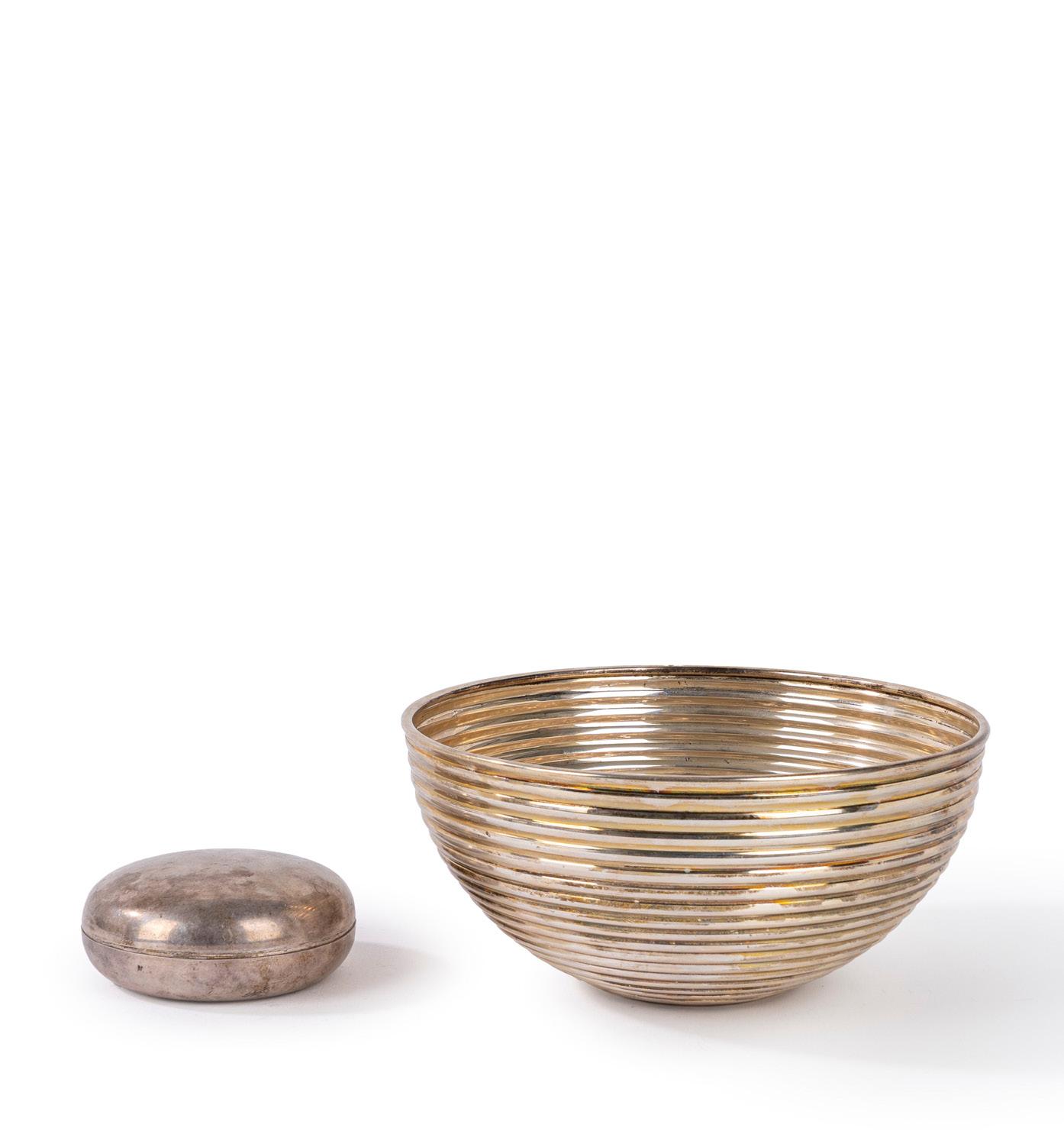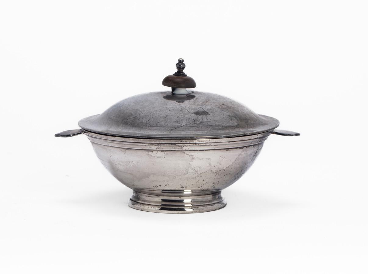 METÀ SECOLO XX, in argento, di forma tonda a corpo liscio, con coperchio con presa sagomata.