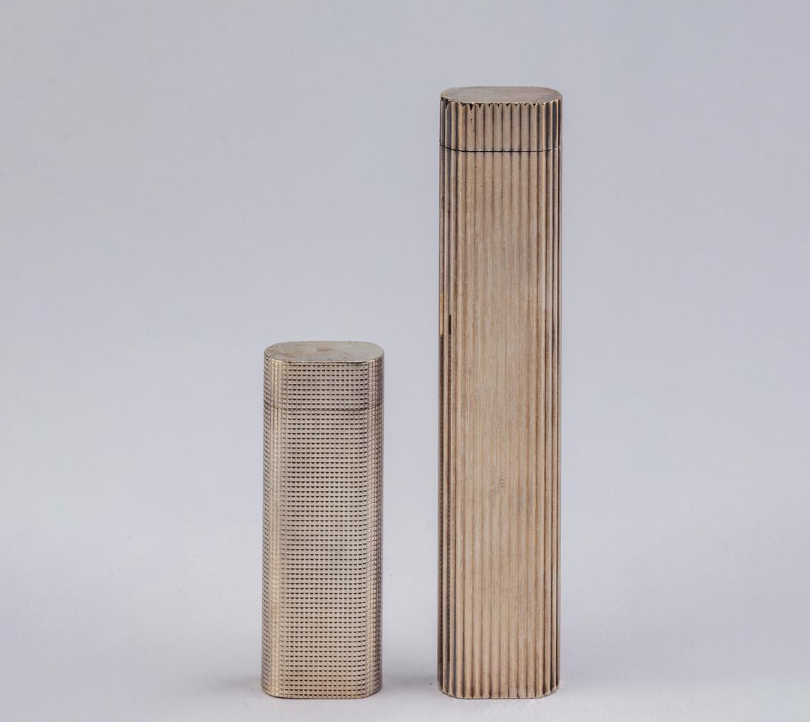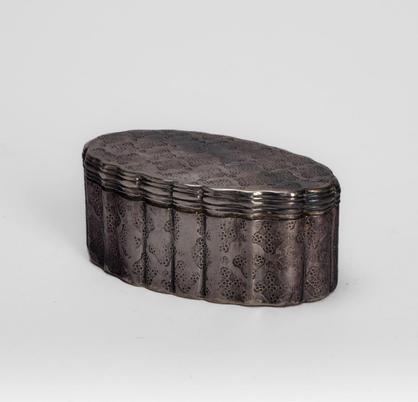 LOTTO DI DUE OGGETTI, SECONDA METÀ SECOLO XX, in argento, composto da una scatola porta pillole a corpo liscio e contenitore decorato con incisioni. Peso tot g 110,00 (misure diverse)