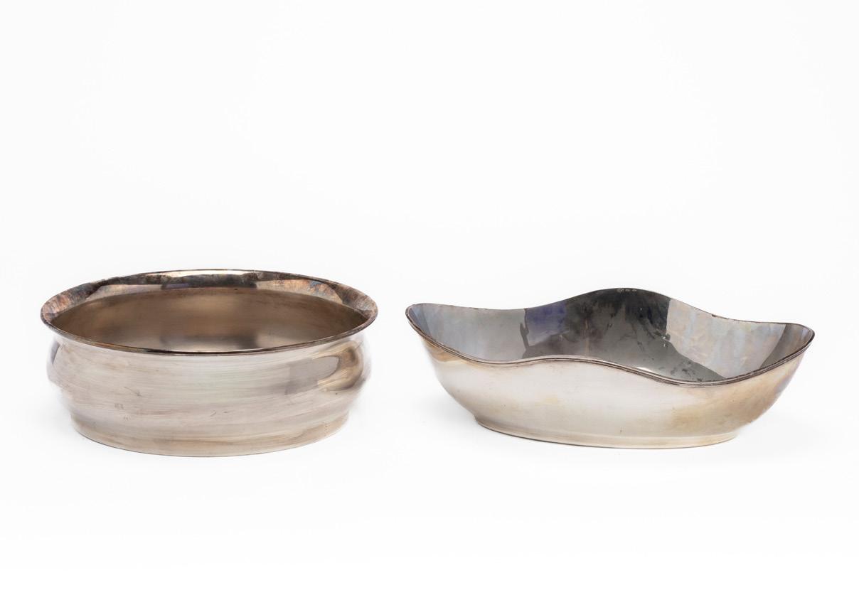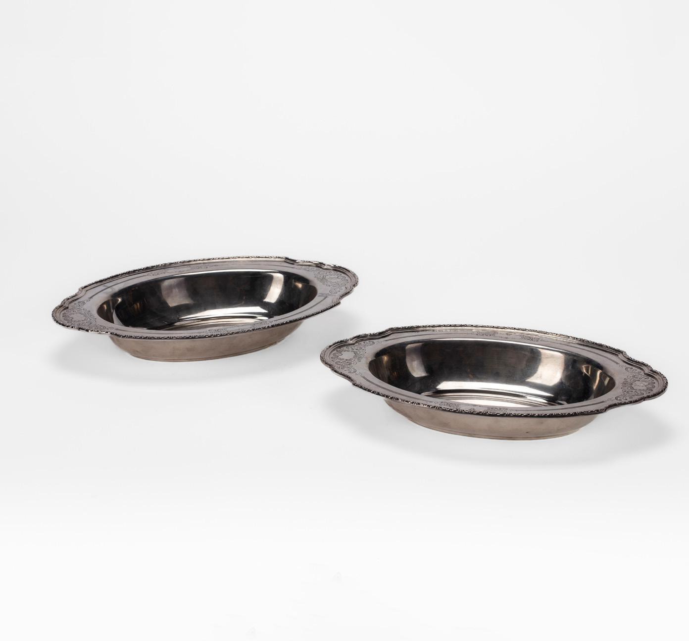 PAIR OF SMALL BOWLS, FIRST HALF OF THE 20TH CENTURY, in silver, shaped form with repoussédecorated well.
