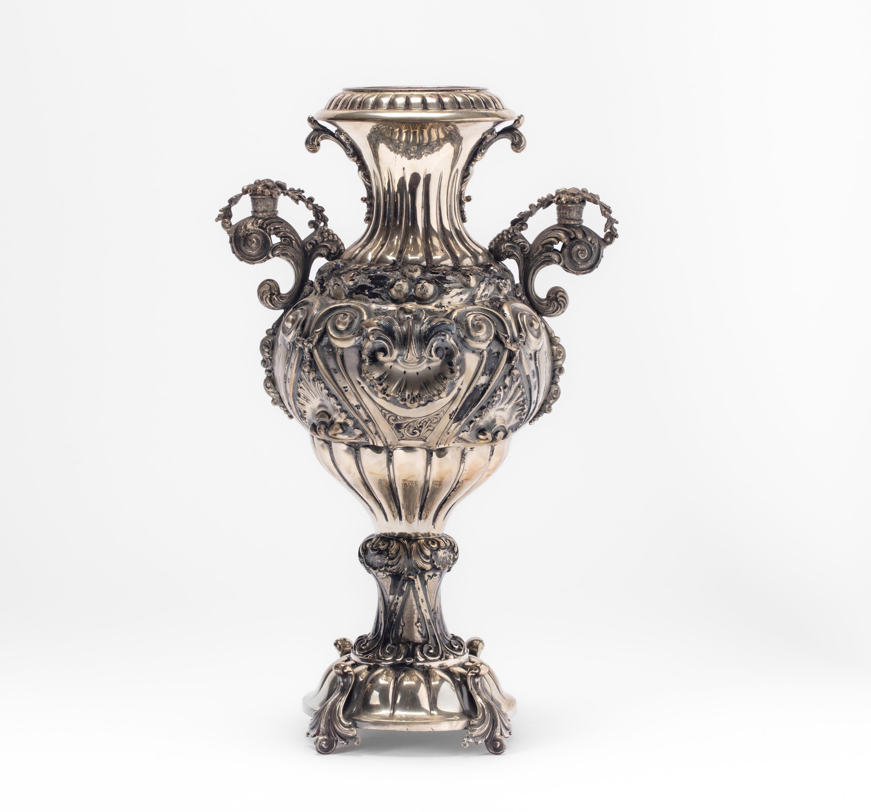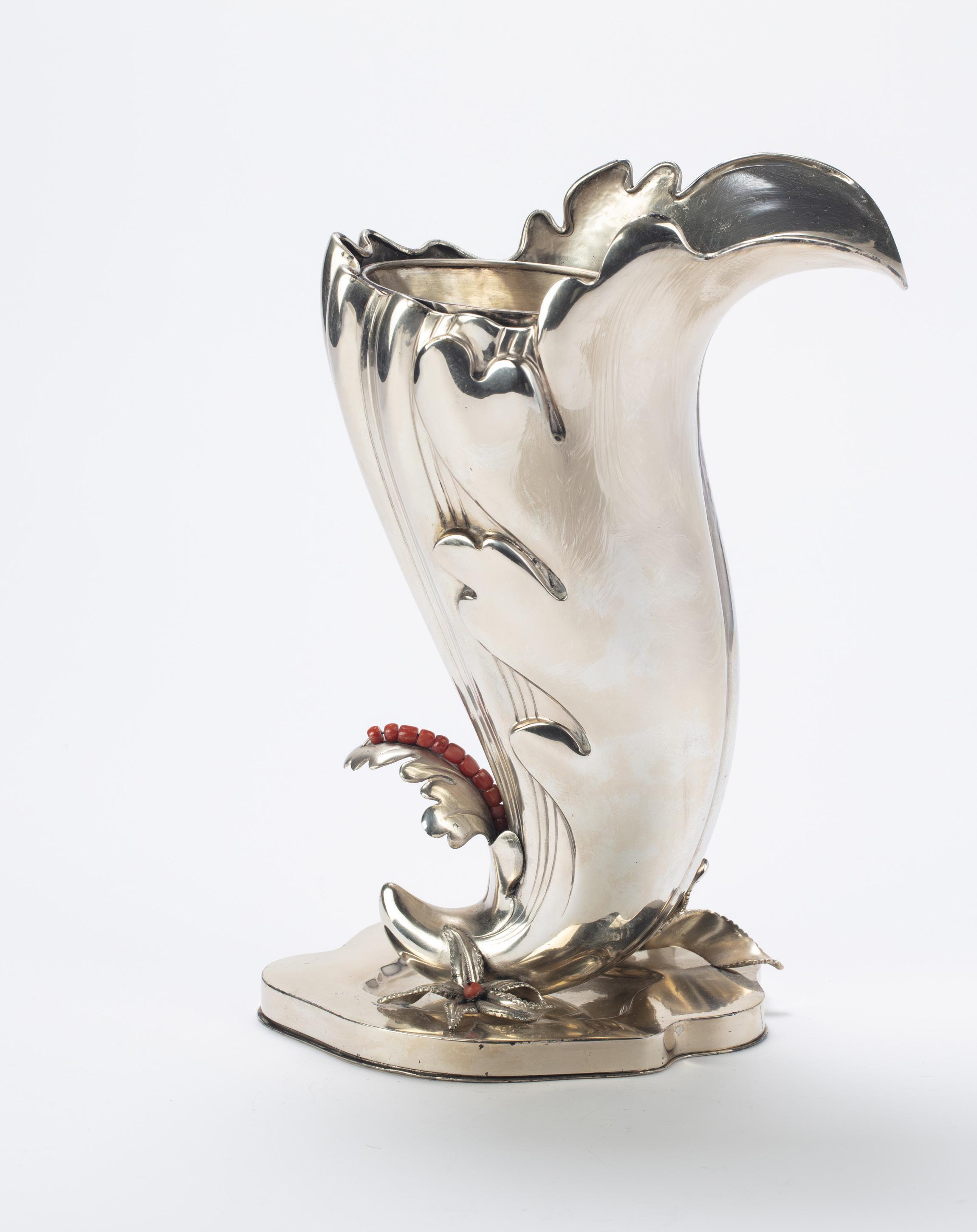 CENTERPIECE, ITALY, SECOND HALF OF THE 20TH CENTURY, in silver, with embossed and shaped body.