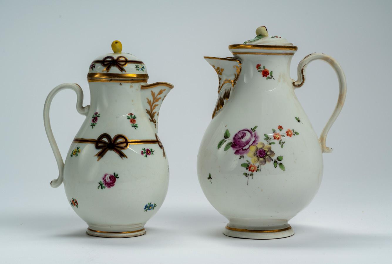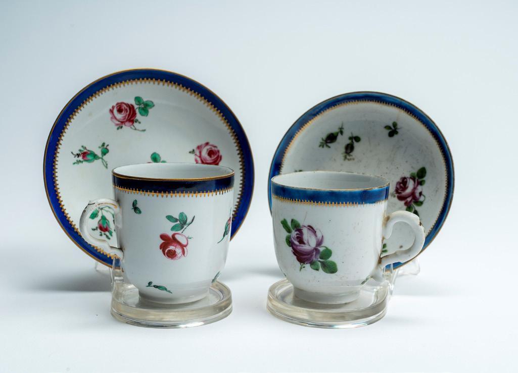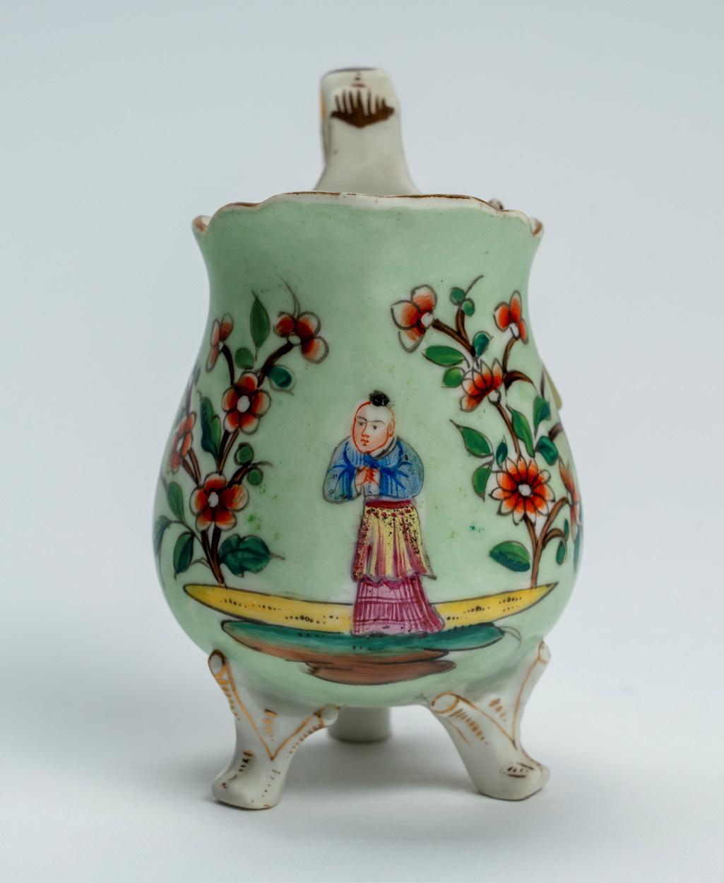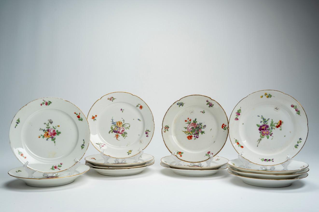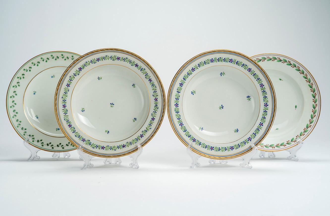 Poggianti su base a rocaille. L’orchestra, da un modello creato da Johann Joachim Kaendler nel 1753 e rivisto nel 1765 con Peter Reinicke, è composta da ventuno figure di musicanti e un leggio. L’ensemble comprende: clavicembalista, liutista, suonatore di cornamusa scozzese, chitarrista, percussionista al triangolo, direttore d’orchestra, violoncellista, batterista, assistente, arpista, tamburino (tamburo laterale a spalla), soprano, violinista, oboista, trombettista, due coriste con spartito, cornista (con corno francese), flautista, flautista traverso e cantante. Alcuni esemplari con tracce di etichetta cartacea di provenienza “L. Beltrami, Torino”. Marchio di fabbrica, numeri impressi e dipinti in oro e/o rosso sotto le basi.
